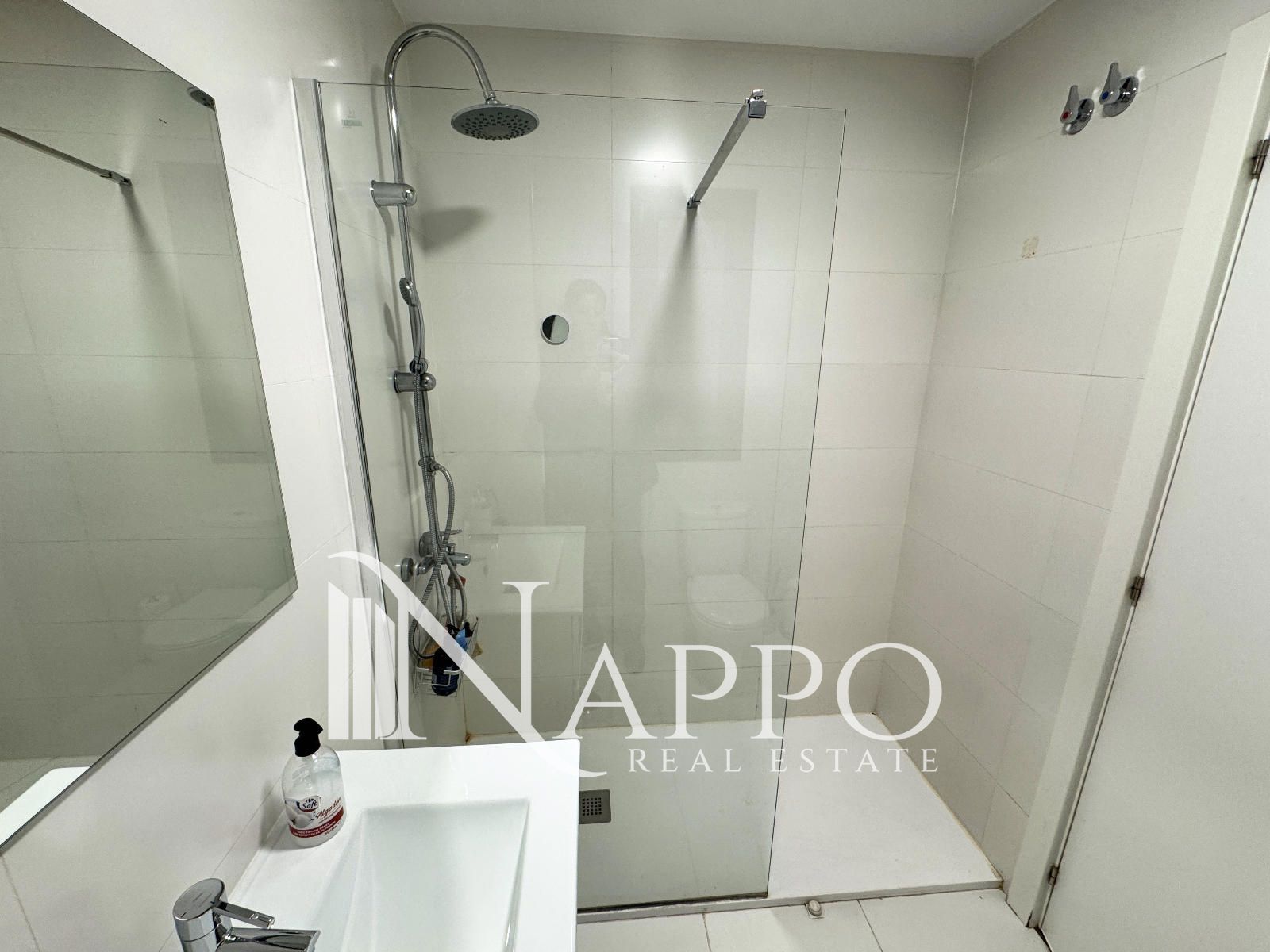 Am Eingang führt uns ein Eckflur zu einem kompletten Badezimmer mit Dusche und Fenster. Danach öffnet sich der geräumige und vielseitige Hauptraum mit integrierter Küche, die komplett mit hochwertigen Elektrogeräten ausgestattet ist. Es gibt Platz für ein Sofa, einen Fernseher, ein Bett und einen Esstisch. Darüber hinaus verfügt es über mehrere Einbauschränke und einen Schuhschrank, die viel Stauraum bieten.