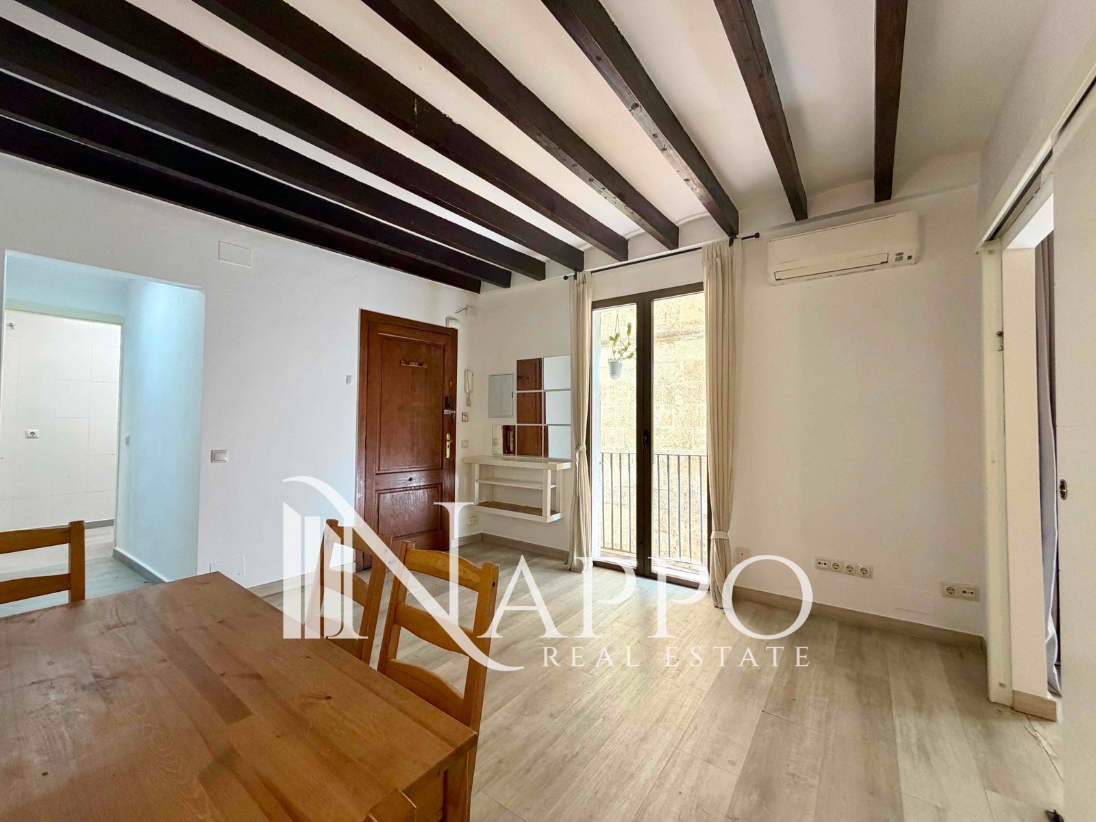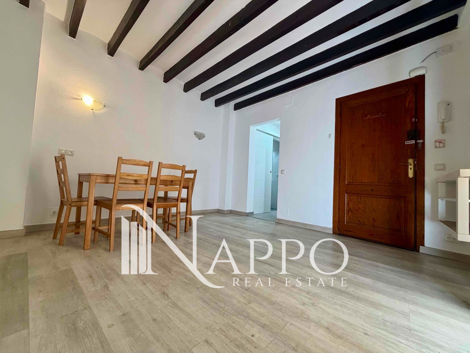 Nappo Real Estate freut sich, Ihnen diese exklusive Wohnung im ersten Stock mit viel Charakter und zwei Balkonen zur Straße vorzustellen. Sie befindet sich in einem historischen Gebäude aus dem Jahr 1850 ohne Aufzug, im Herzen der Altstadt von Palma. Die Lage besticht durch ihren historischen Charme, ruhige Atmosphäre und eine hervorragende fußläufige Anbindung, umgeben von lokalen Geschäften, Restaurants, Kunstgalerien und wichtigen Dienstleistungen.