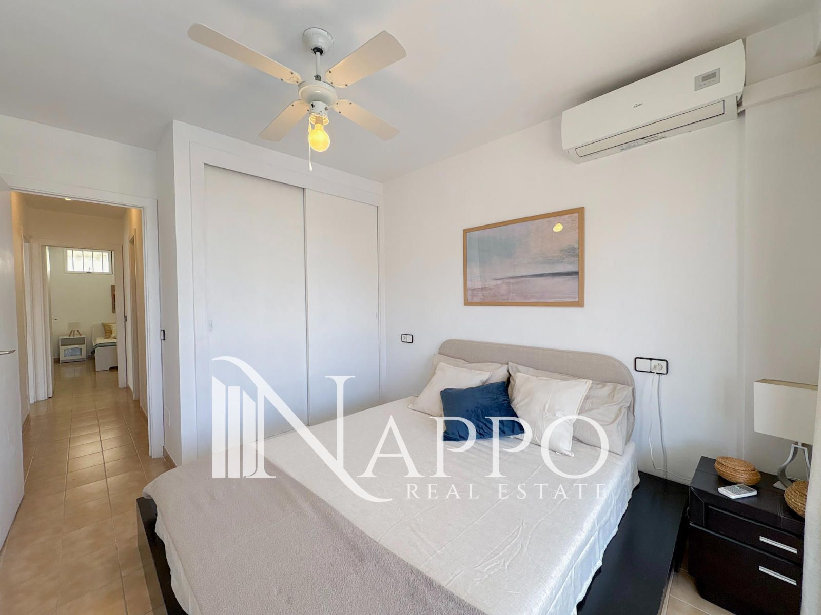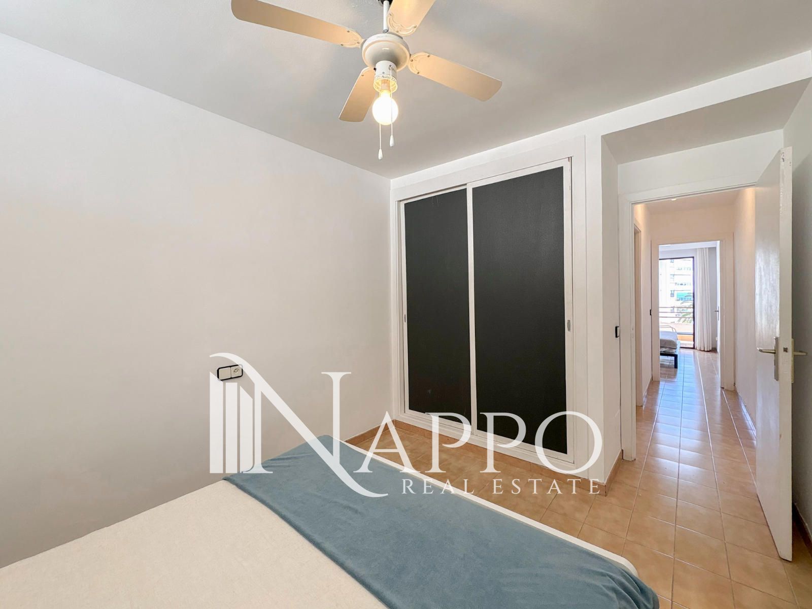Die Immobilie verfügt über ein helles und großzügiges Wohnzimmer mit Meerblick, eine geräumige separate Küche, zwei Doppelschlafzimmer mit Einbauschränken sowie ein komplettes Badezimmer. Die Raumaufteilung ist funktional und bietet großes Potenzial zur Modernisierung und individuellen Gestaltung.