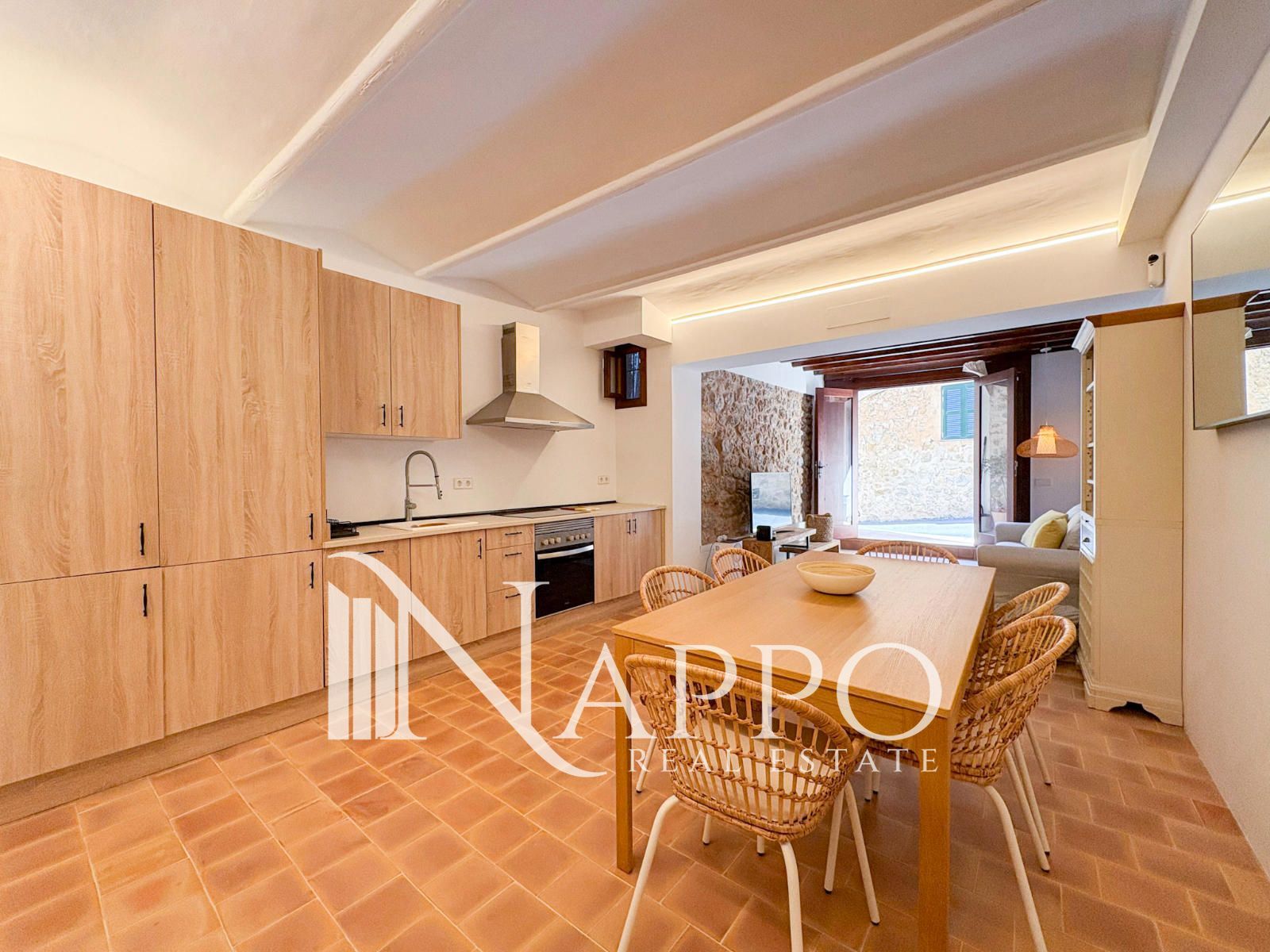 Nappo Real Estate freut sich, Ihnen diese charmante, vollständig renovierte Erdgeschossimmobilie präsentieren zu dürfen, die durch ihre authentische mallorquinische Essenz in Fassade und Innenwänden besticht. Gelegen im Erdgeschoss im emblematischen Dorf Deià, einem der exklusivsten und malerischsten Orte der Insel, umgeben von Natur, charmanten Restaurants, kleinen Geschäften und guten Verbindungen in die gesamte Serra de Tramuntana.