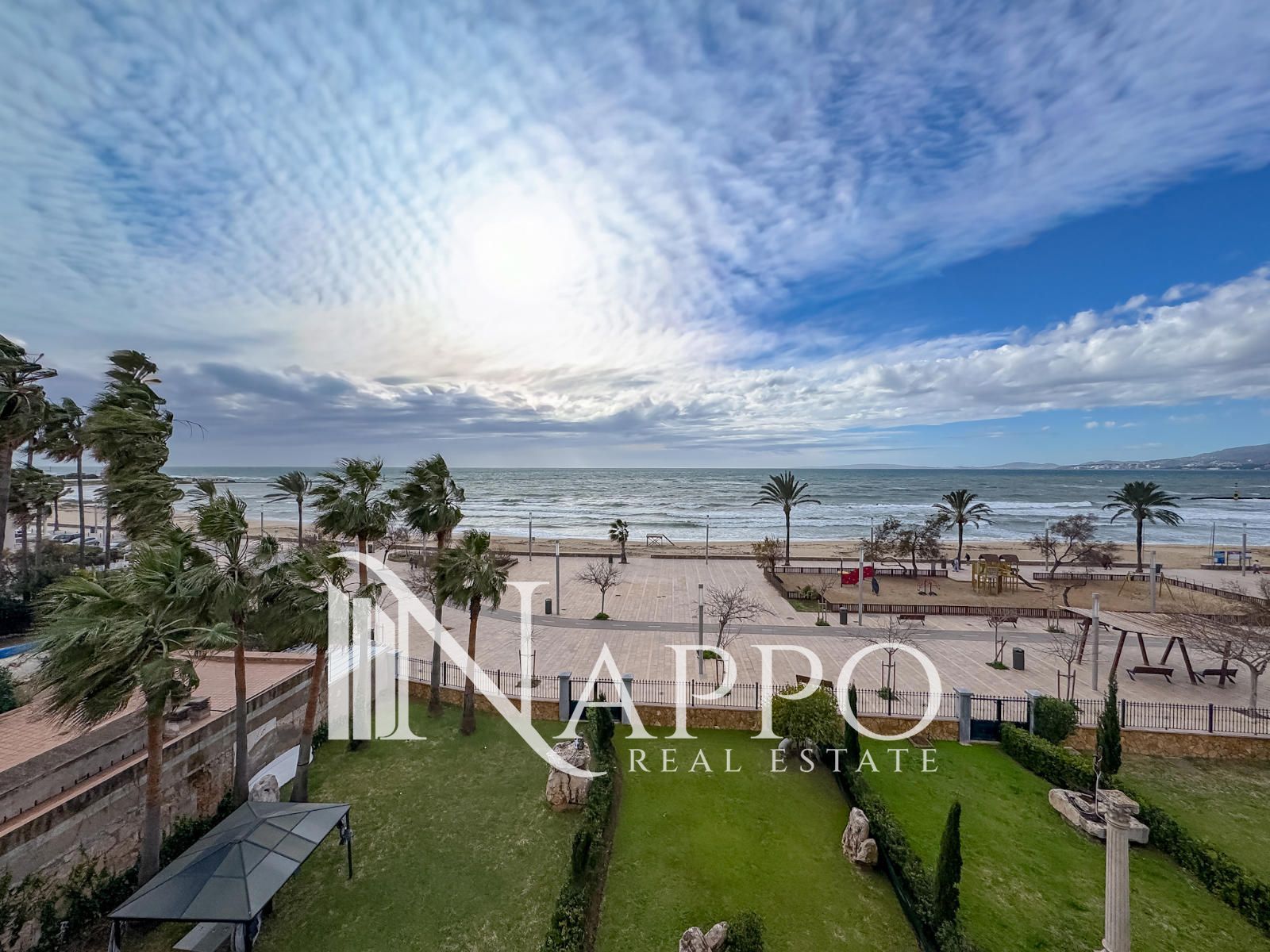 Spectacular penthouse with sun terrace and 360º sea views in Ciudad Jardín, Palma de Mallorca. Just 50 meters from the beach, this property stands out for its impressive panoramic views of the entire bay of Palma, the mountains, and its excellent orientation. Located on the third floor, it offers a truly unique feeling of spaciousness, light, and privacy.