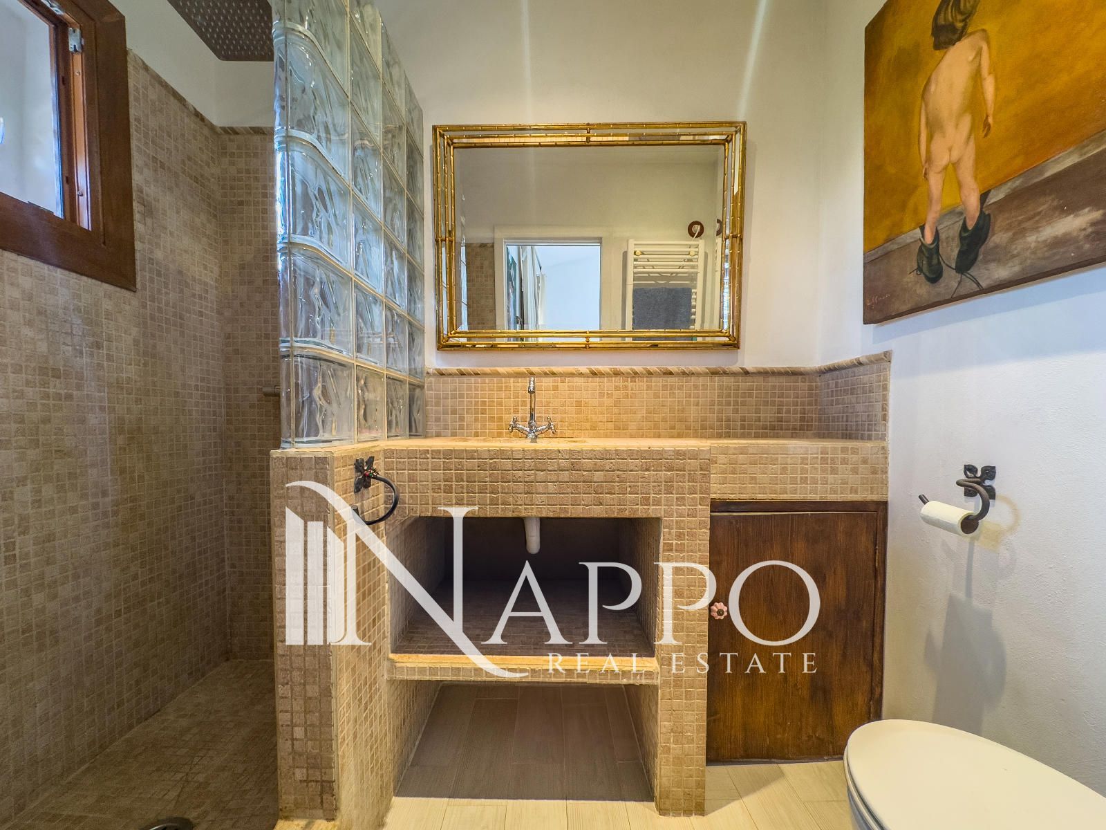 The main floor houses most of the living space and consists of three doubles bedrooms, a spacious living room, a comfortable dining area with a fully equipped open-plan kitchen, and two bathrooms, one of them en suite. This floor provides access to two private terraces, perfect for outdoor relaxation, as well as the private garden, which offers an oasis of tranquility surrounded by nature.