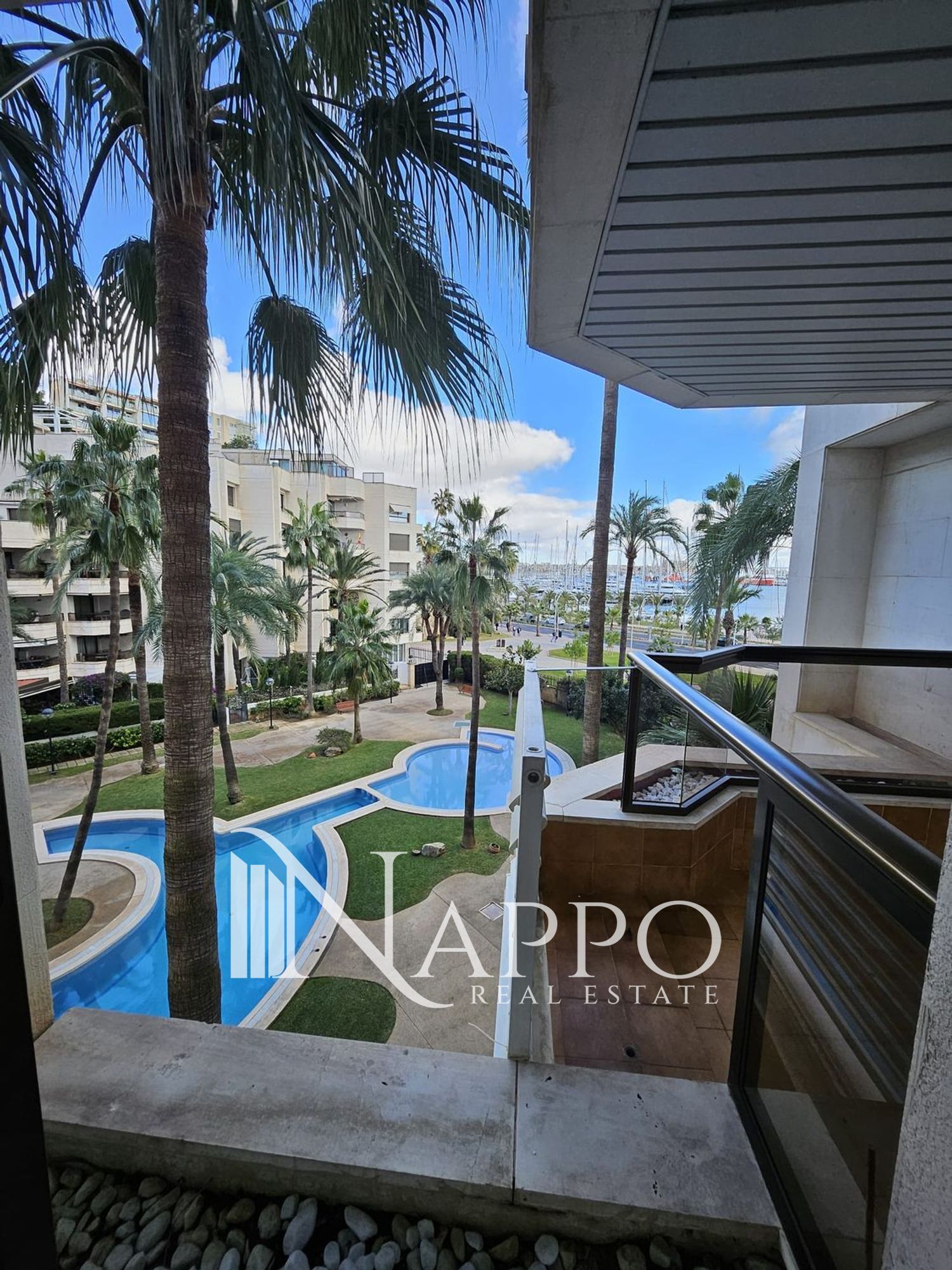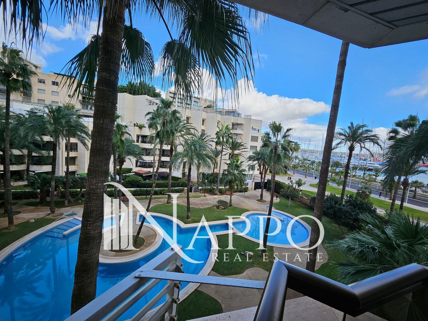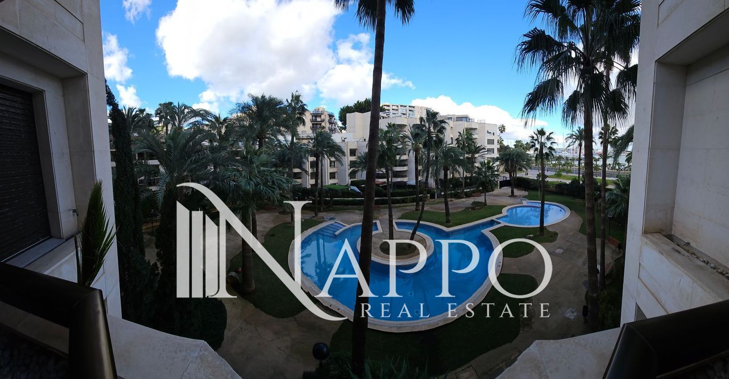 Nappo Real Estate is pleased to present this spacious and sunny apartment with terrace and views over the Paseo Marítimo and marina, located on the second floor of a building with elevator within the well-known Palma Real complex in El Terreno. The area stands out for its seaside location, vibrant atmosphere and excellent connection to Palma city center, with restaurants, supermarkets, leisure areas and public transport nearby.