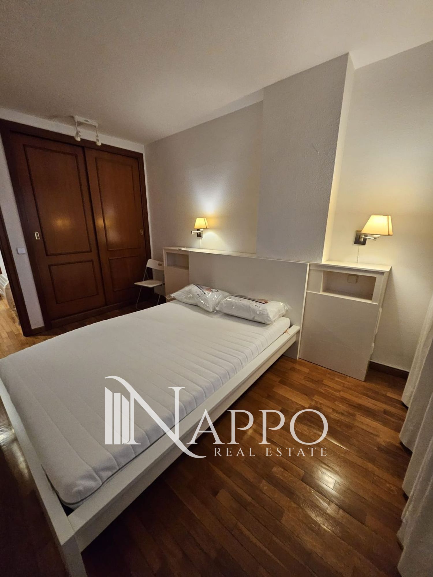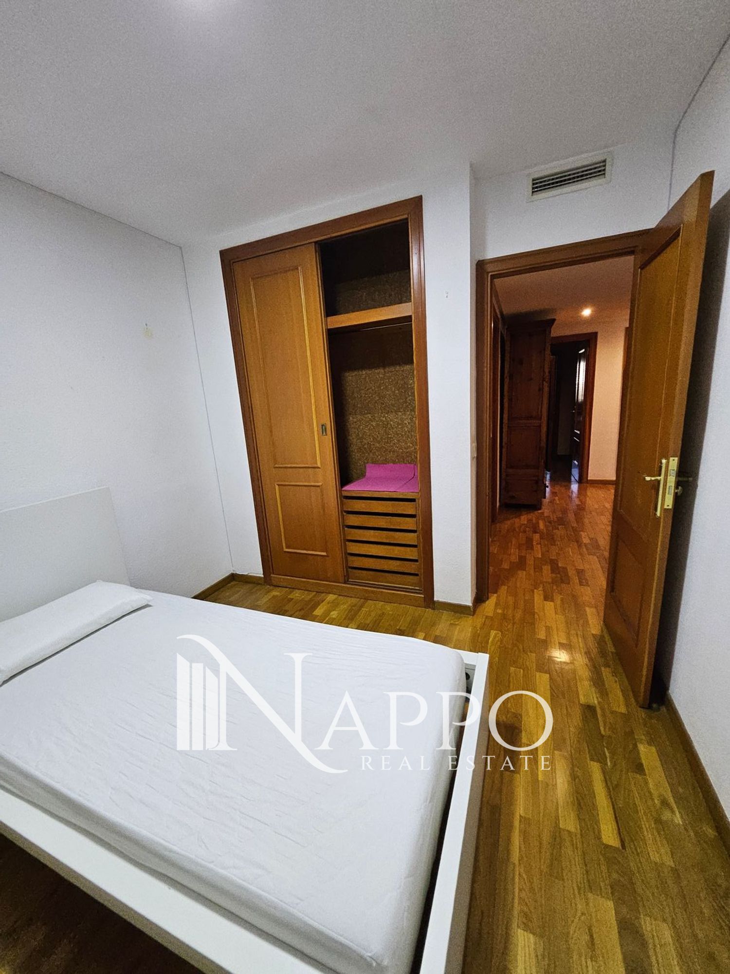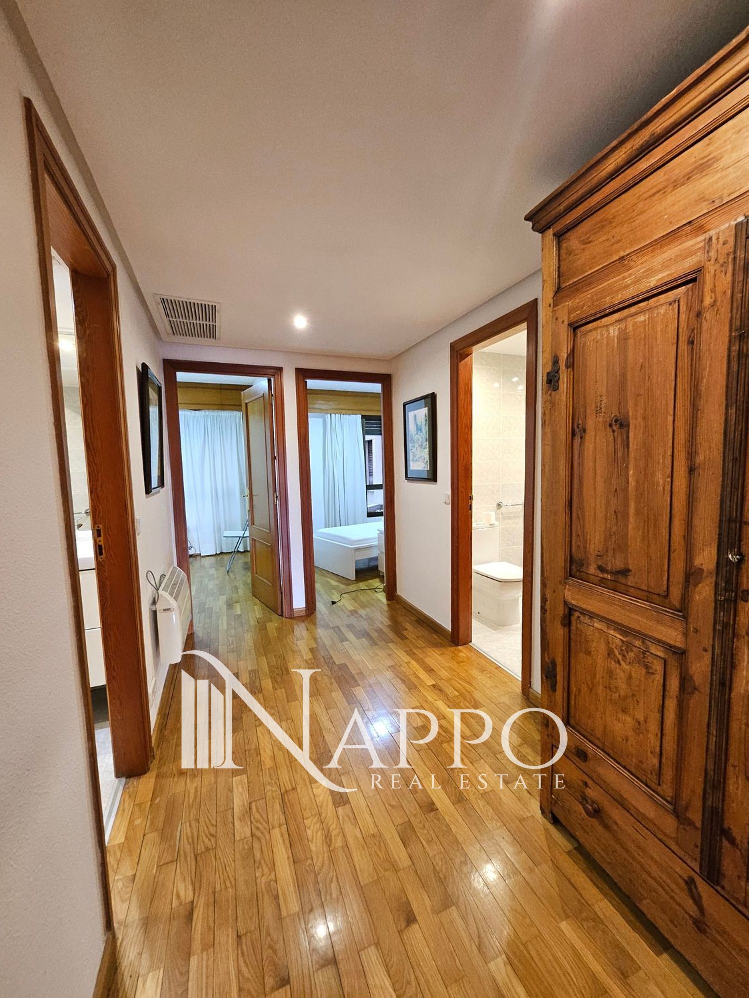 It includes parquet flooring, air conditioning in several rooms, electric heating and large built-in wardrobes in all bedrooms. The property is fully furnished and ready to move in.