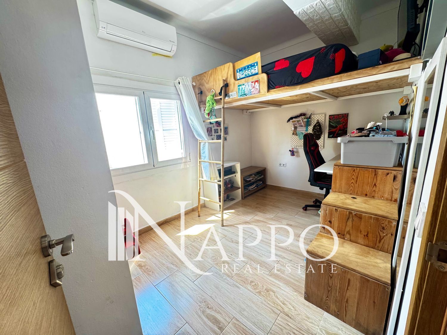 The property, recently renovated both inside and out, has 85 m² carefully distributed into three double bedrooms, two of them with fitted wardrobes, and two full bathrooms, one of them en suite. The spacious and bright living-dining room is the heart of the property, offering a comfortable and welcoming space, while the separate, fully equipped kitchen combines functionality and design. The property is completed by a terrace with unobstructed views, ideal for enjoying the Mediterranean climate all year round.