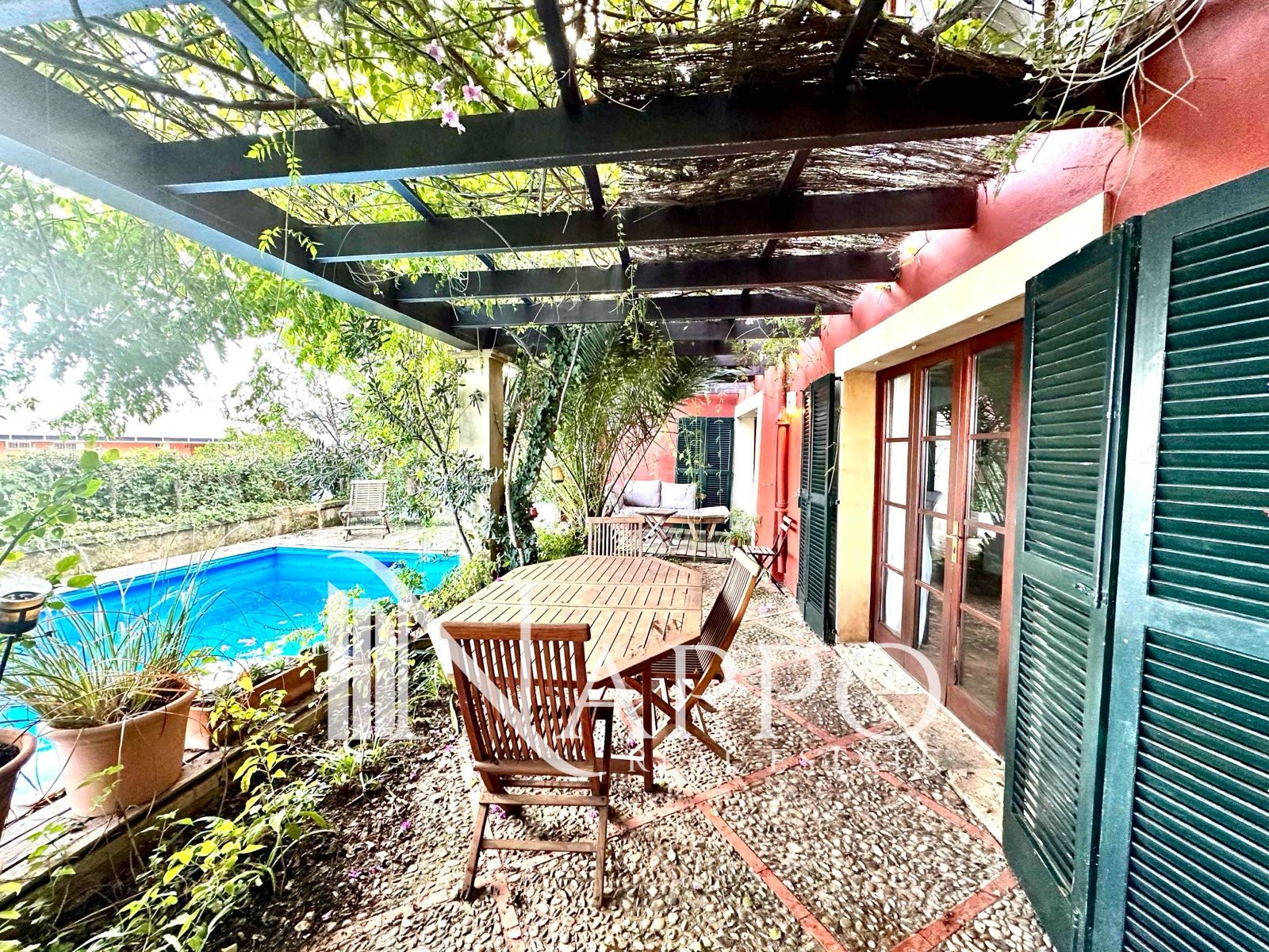 Fantasticos jardines y piscina comunitaria situado en casal mallorquína de solo 3 vecinos, rodeado de arboles y flores y con vista a la ciudad.