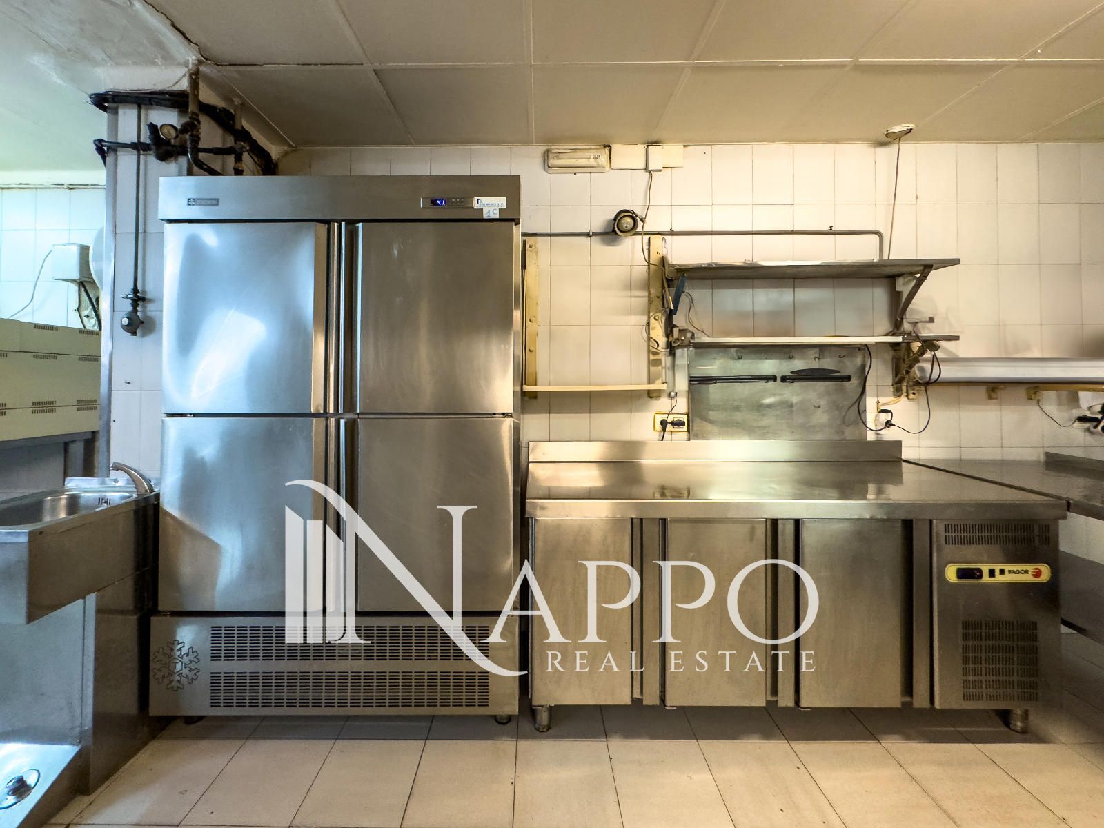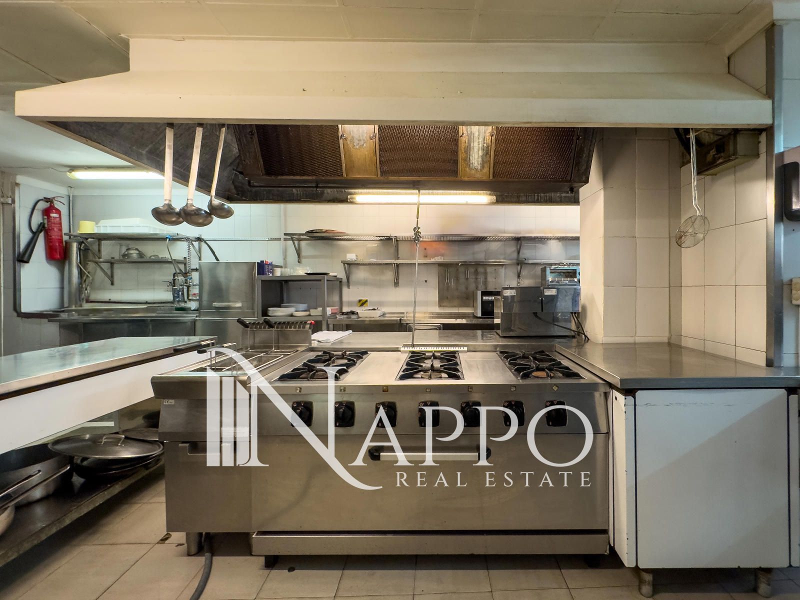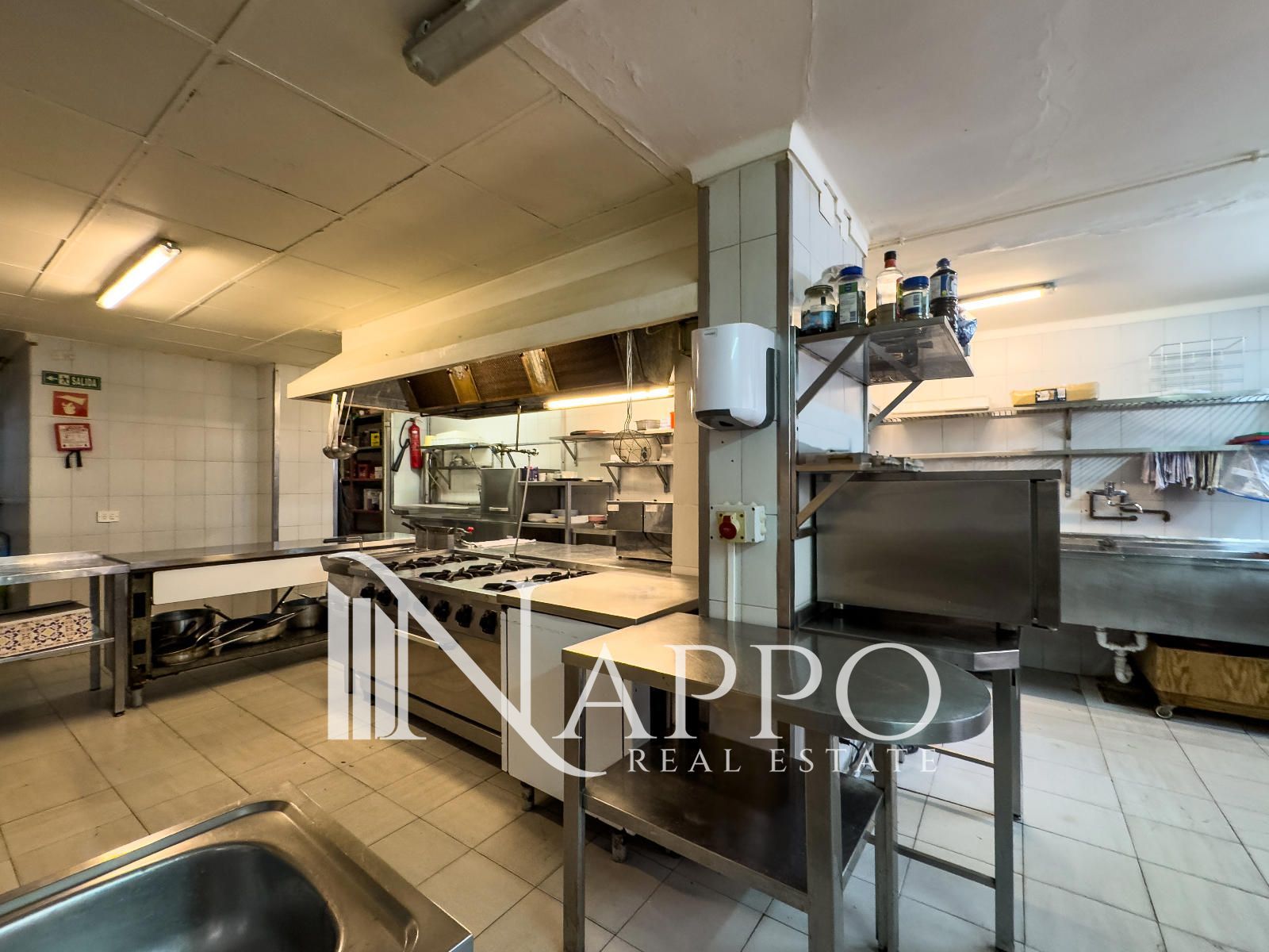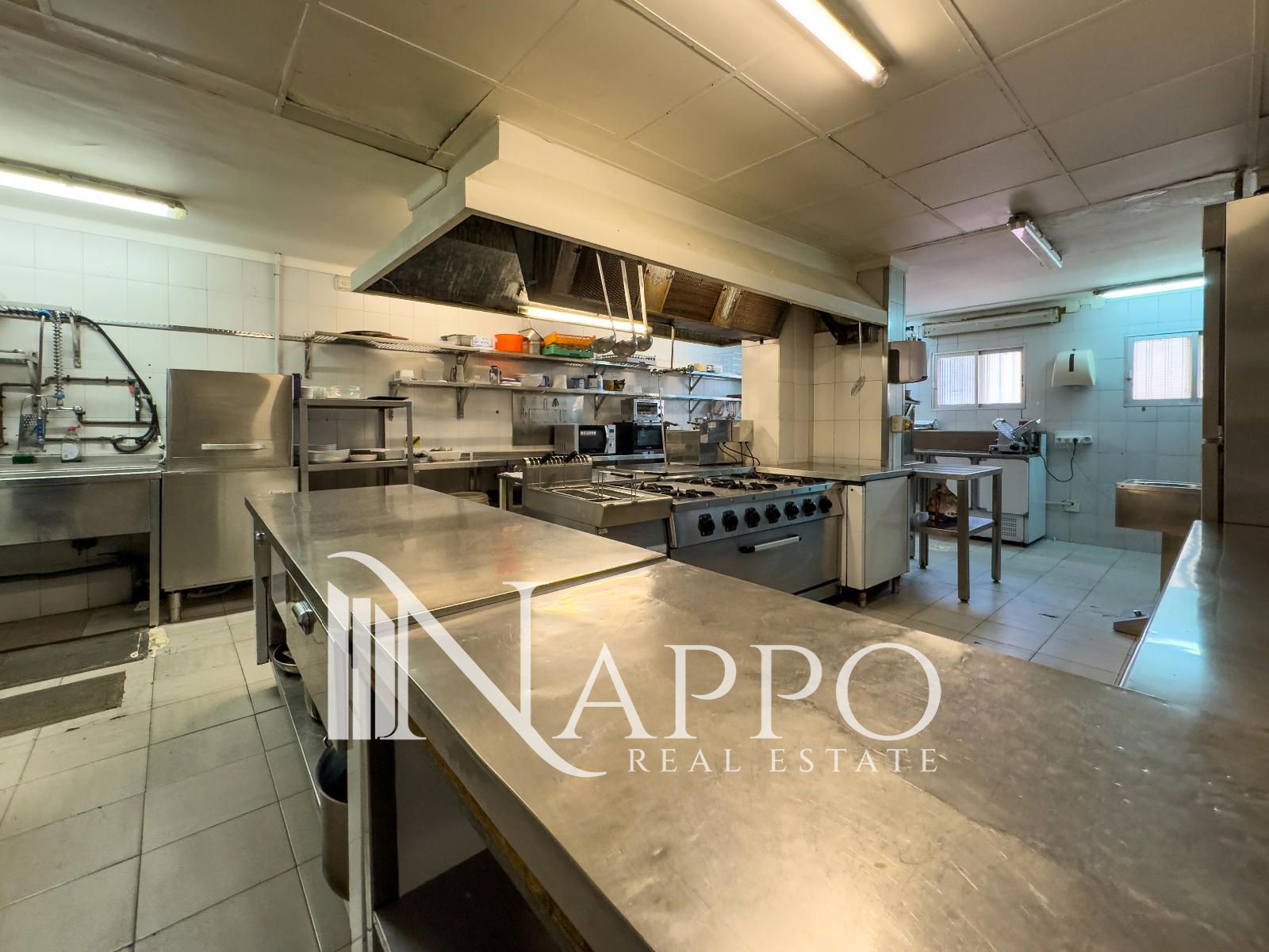 •Cocina profesional de 50 m² totalmente equipada con 2 cámaras frigoríficas y congeladores, lavavajillas, fregadero, mesas de acero inoxidable, plancha, freidora, placa de cocción con fogones, campana extractora y mucho más.