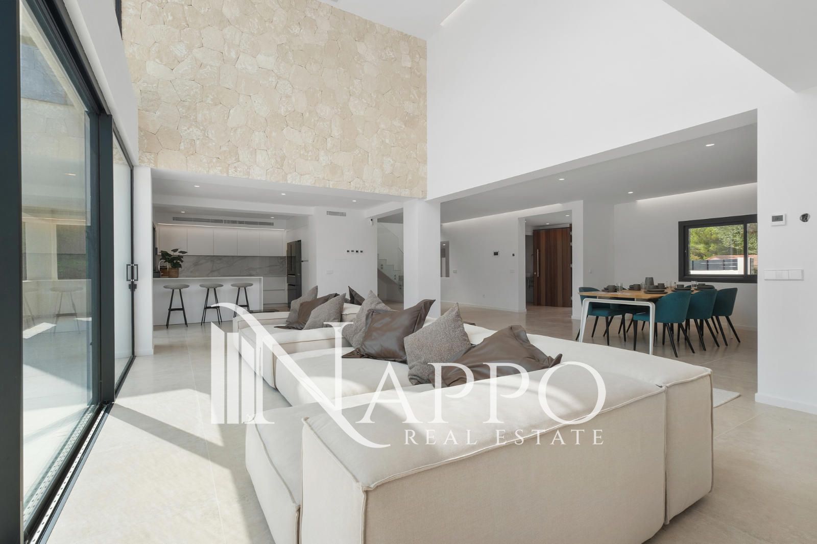 La planta principal ofrece una elegante y luminosa zona de día que integra salón, comedor y cocina abierta de diseño, creando un espacio moderno y funcional con acceso directo a las terrazas, jardines y a la espectacular zona de piscina, perfecta para disfrutar del clima mediterráneo durante todo el año.