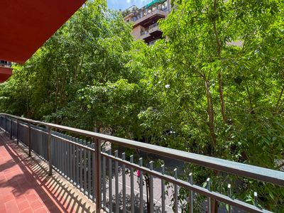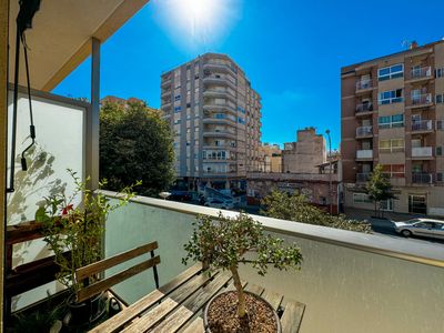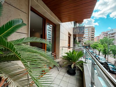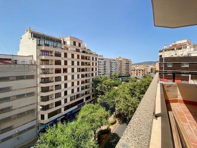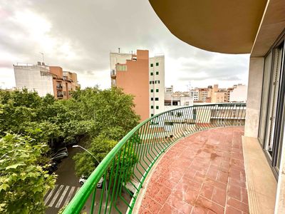 El salón-comedor es muy amplio, lleno de luz natural, y permite múltiples configuraciones de mobiliario y diseño. Además, tres de las habitaciones tienen salida directa a un espectacular balcón de 20 m², perfecto para crear un espacio de relax o disfrutar de las vistas urbanas en pleno corazón de Palma. También cuenta con un balcón trasero que aporta ventilación cruzada y conexión con la zona de coladuría, lo que da mayor funcionalidad y amplitud al conjunto.