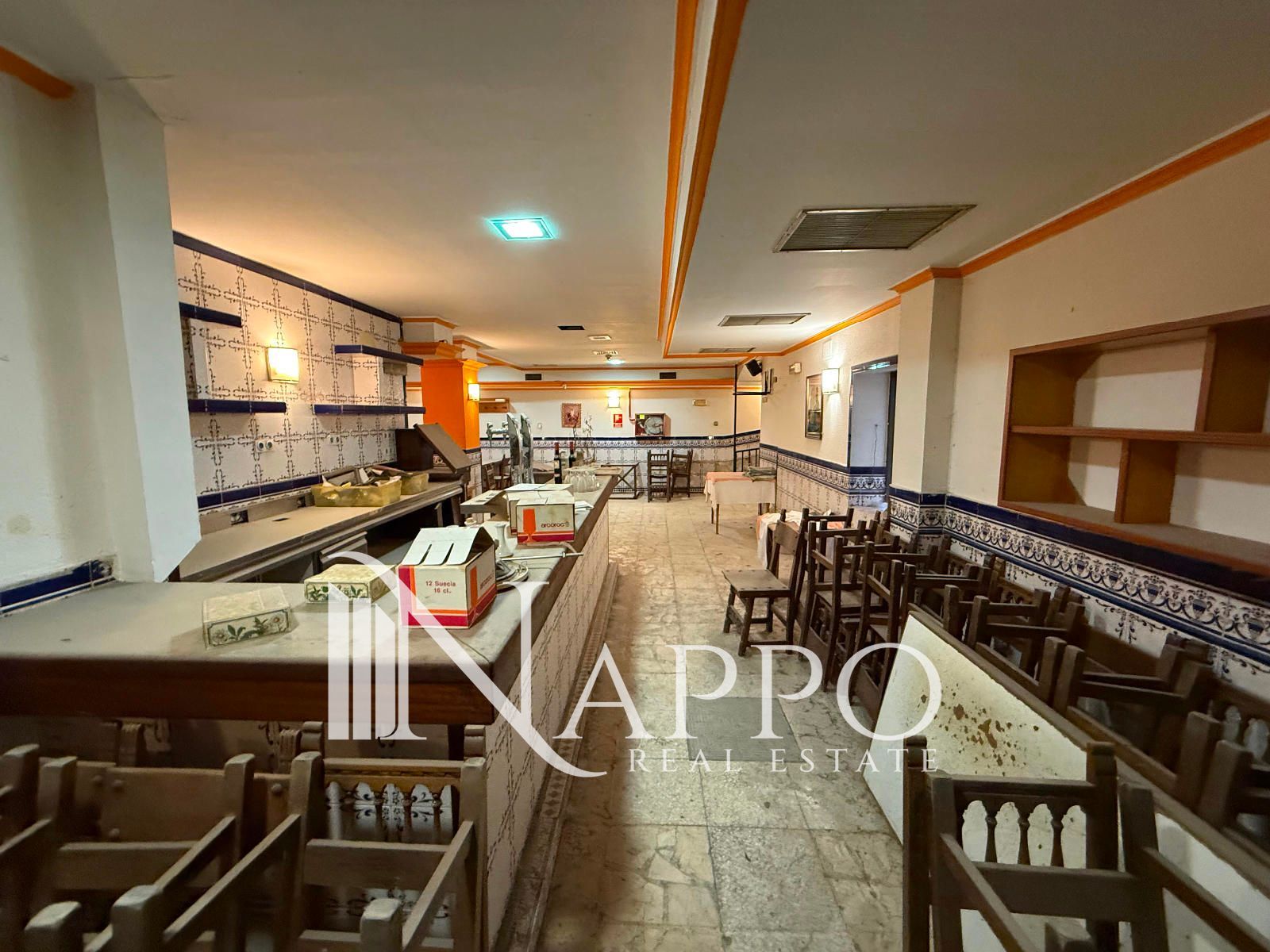 El local cuenta con más de 1.200 m² distribuidos en múltiples estancias diseñadas para un funcionamiento óptimo de restauración. En su interior destaca un amplio salón-comedor de más de 300 m² con capacidad aproximada para 300 personas, ideal para grandes servicios. Dispone de una cocina profesional de gran tamaño completamente equipada con salida de humos, una barra principal y dos barras adicionales de apoyo. Además, el inmueble incluye diversas zonas de almacenamiento, seis baños y una zona de obrador destinada a la elaboración de productos de panadería y repostería.