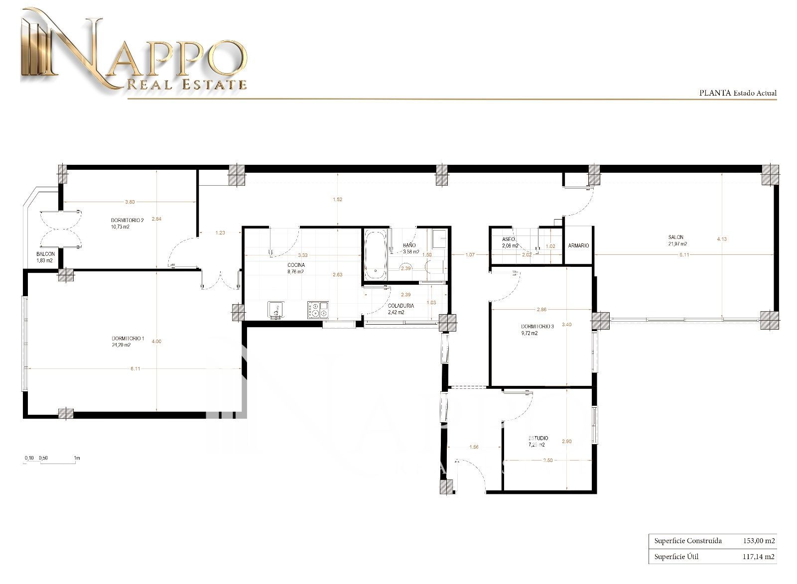 Este piso es ideal para inversión o para una gran familia. Tiene una superficie total útil de 134m2. Distribuidos en: