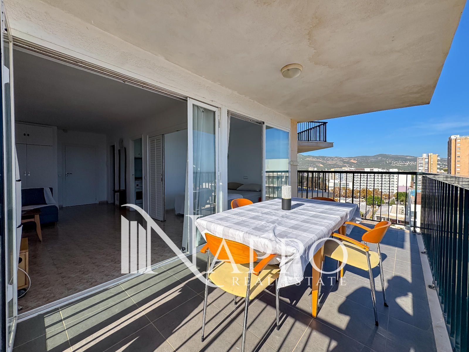 Nappo real estate presenta este luminoso apartamento con amplia terraza ofrece unas espectaculares vistas panorámicas al mar, la playa, la Bahía de Palma y el paisaje mediterráneo.