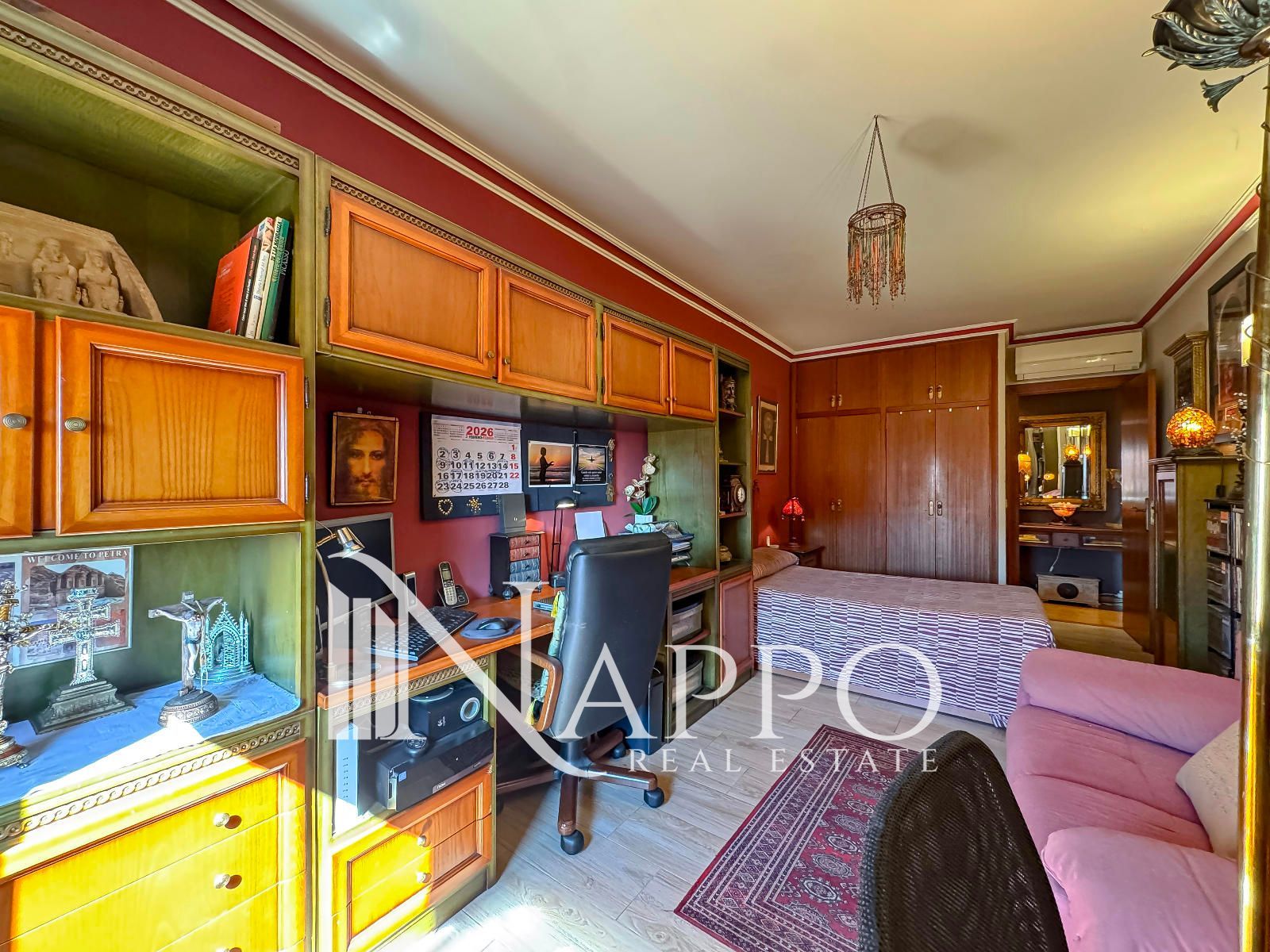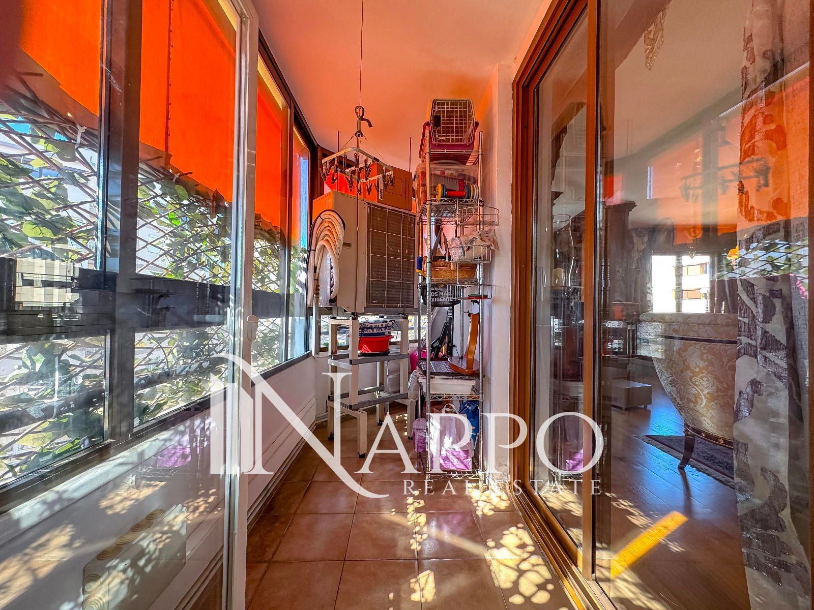 El piso distribuye sus 147 m2 ingresando por un acogedor recibidor que nos lleva al pasillo en el que encontraremos 3 habitaciones dobles, todas exteriores, por la izquierda, con armarios empotrados y baño privado con bañera en una de ellas y el segundo baño con plato de ducha por la derecha. La última puerta del lado izquierdo nos brinda el ingreso a la amplia cocina con office totalmente equipada con paso directo a la coladuría, y finalmente nos encontramos con un amplio y luminoso salón comedor con vistas al oeste que conecta con el balcón acristalado desde donde podemos disfrutar las vistas a la Tramuntana.