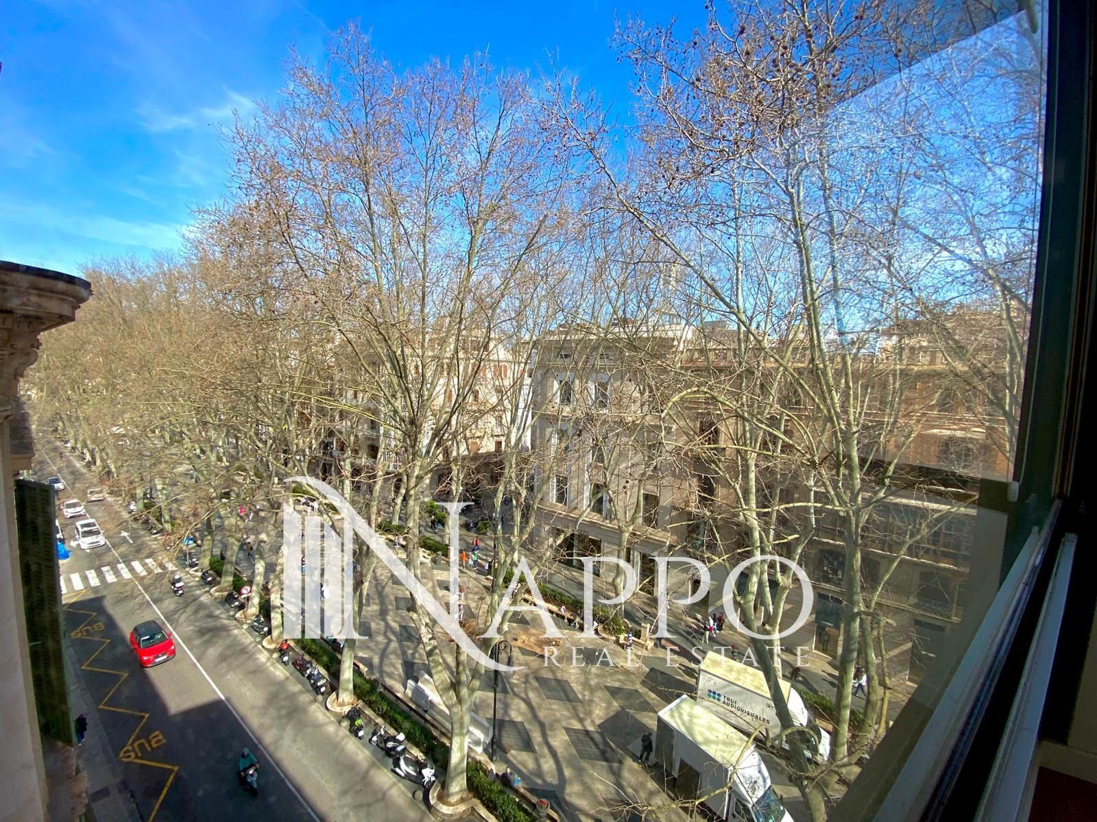 La luz natural es protagonista gracias a su orientación este y sus grandes ventanales con cerramiento Climalit, que regalan agradables vistas al Passeig del Born. El suelo de parquet aporta calidez y sofisticación, mientras que el aire acondicionado garantiza máximo confort durante todo el año.