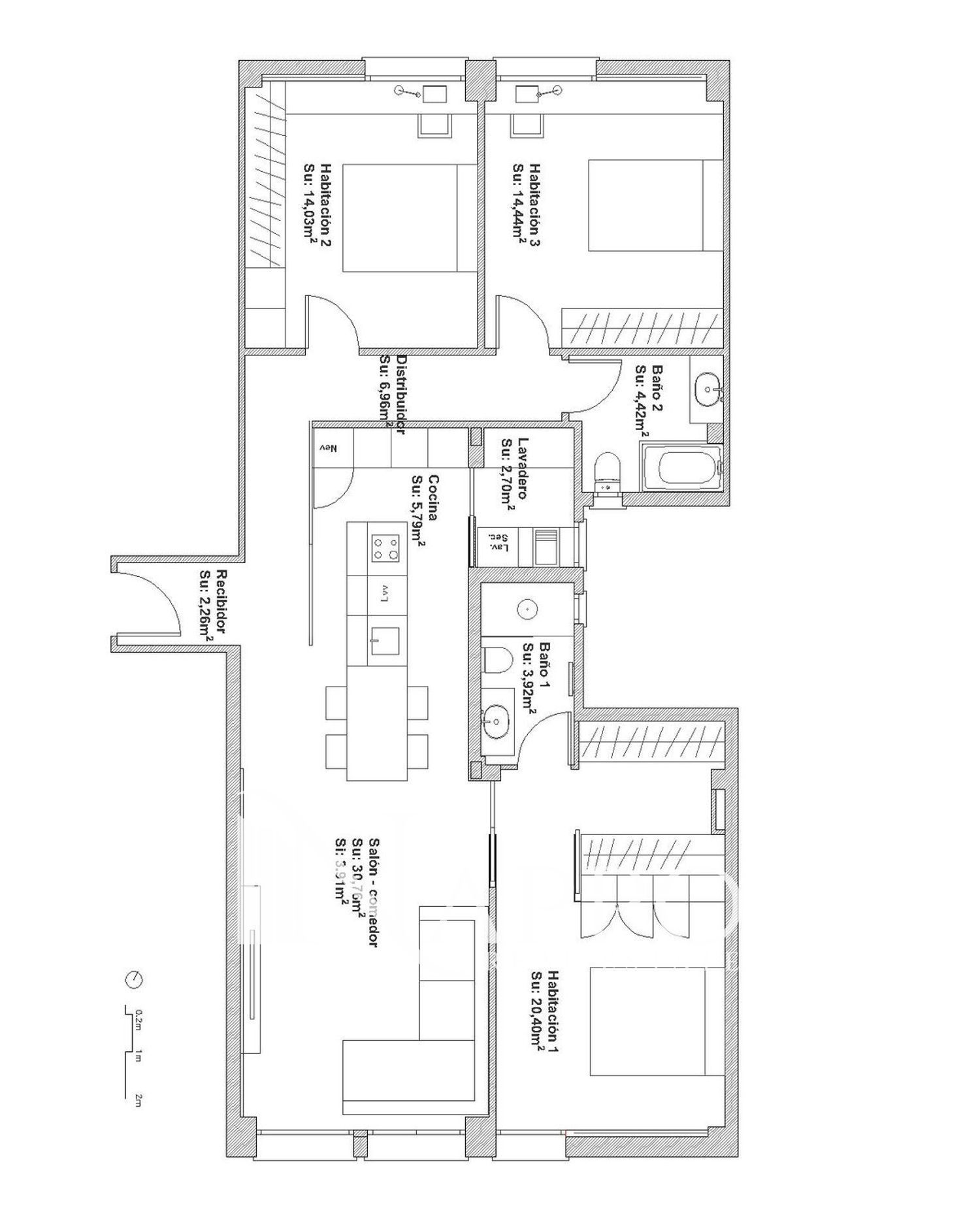 La vivienda se distribuye en un luminoso salón-comedor, cocina equipada integrada en el espacio, tres dormitorios con armarios empotrados (uno de ellos con baño en suite y vestidor) y un total de dos baños completos. La propiedad cuenta con climatización por conductos frío/calor, calefacción de gas mediante radiadores de alta gama y sistema de domótica, además de doble acristalamiento en todas las ventanas que garantiza confort térmico y acústico.