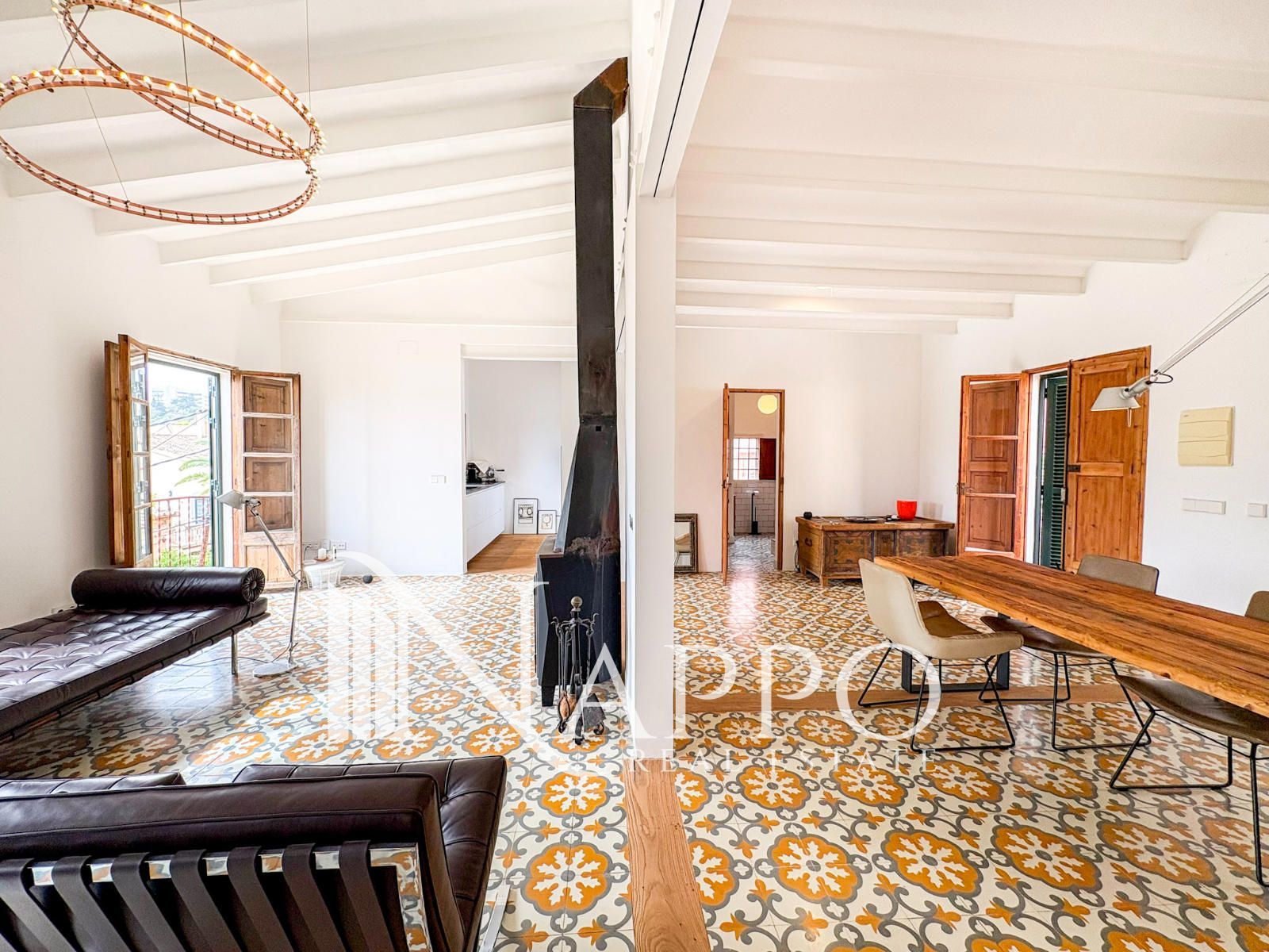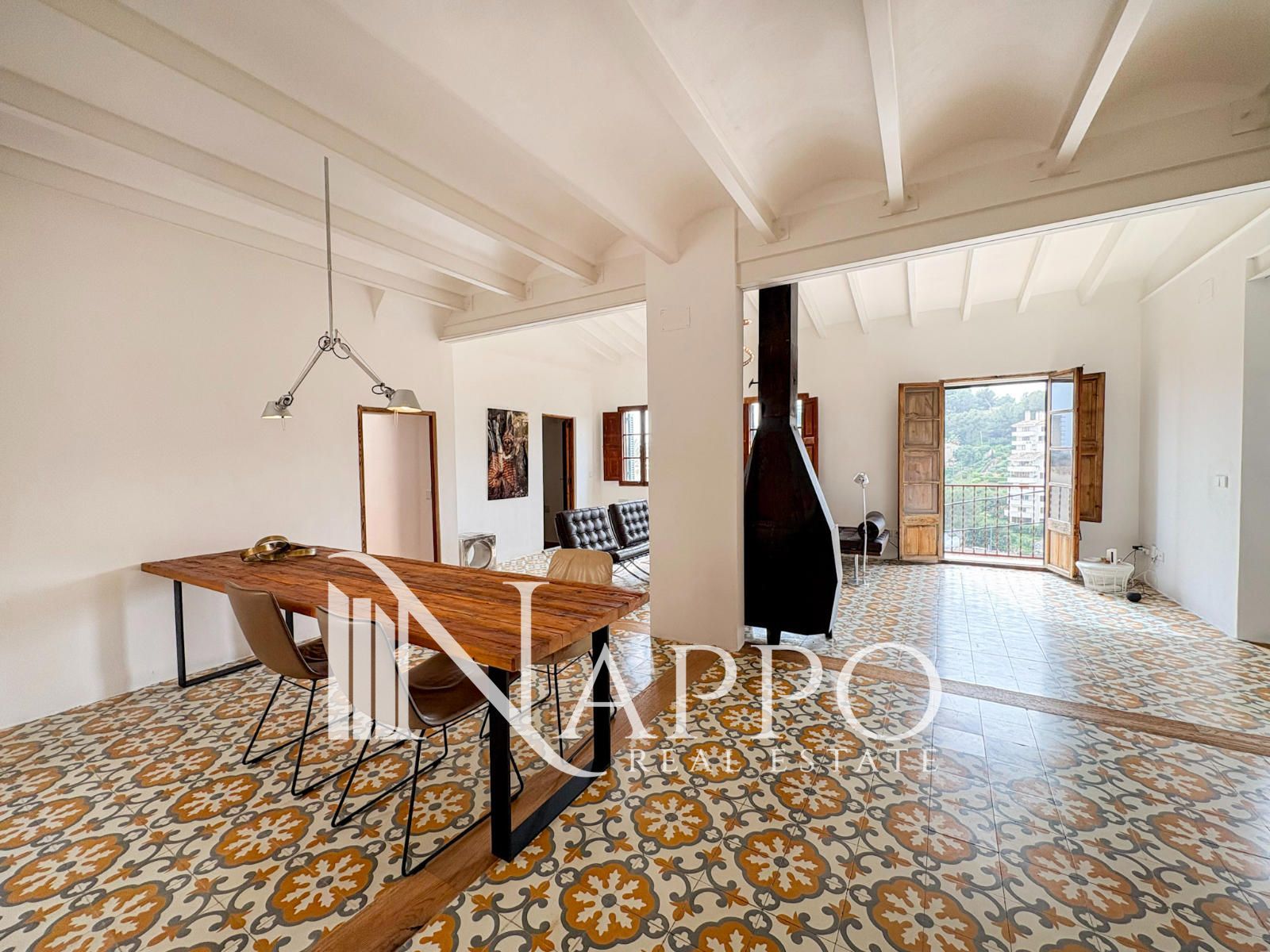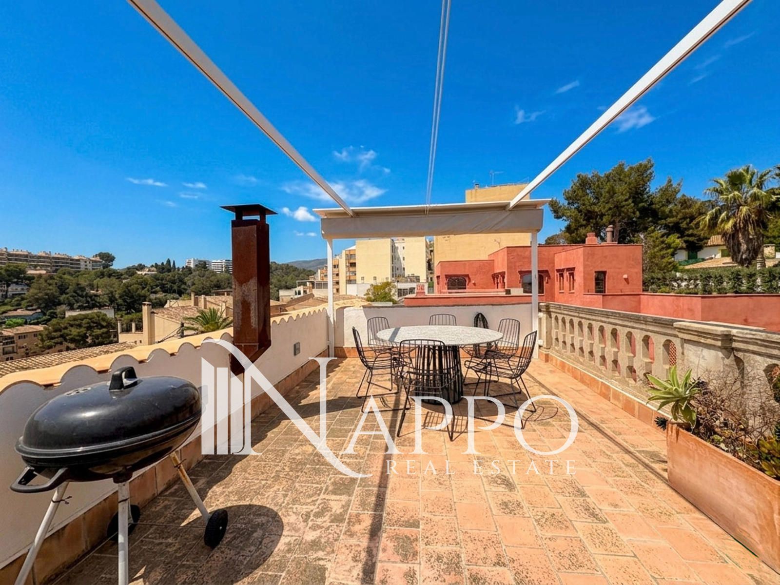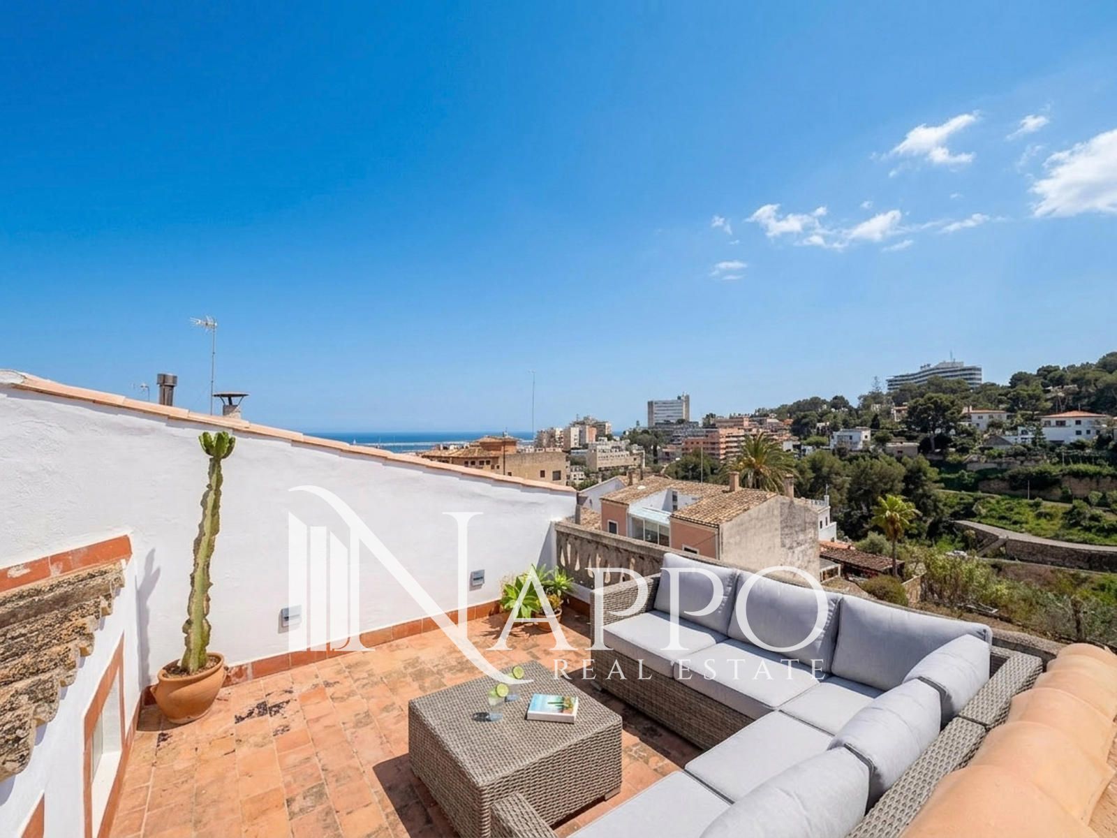 Nappo Real Estate tiene el placer de presentaros este encantador ático con vistas al mar situado en la parte alta del barrio de El Terreno, una zona residencial con carácter a pocos minutos del centro histórico de Palma. El barrio destaca por su ambiente tranquilo, su cercanía al Paseo Marítimo, supermercados, restaurantes y buenas conexiones con el centro de la ciudad. Ubicado en un edificio de pocas viviendas construido en 1929, la propiedad combina el encanto de los elementos originales con una renovación reciente que respeta su estilo auténtico.