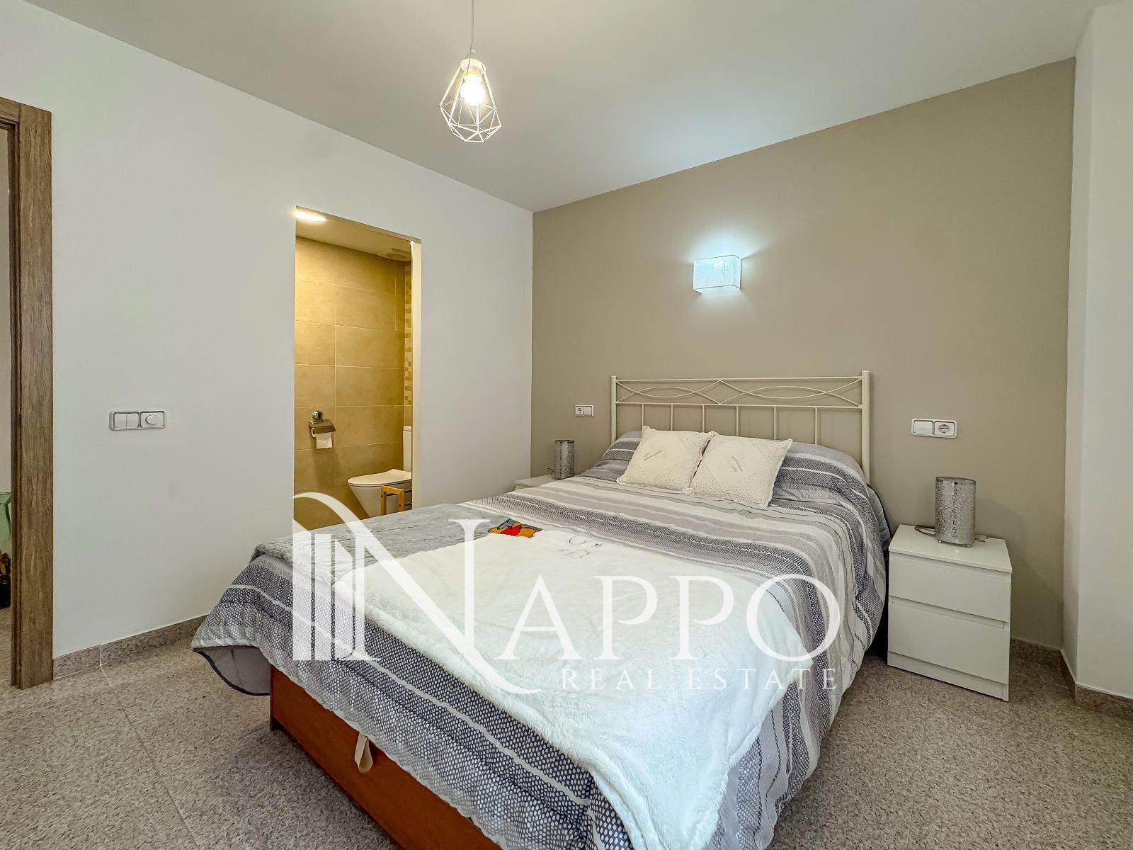 La vivienda cuenta con tres dormitorios, un baño completo y un baño de servicio en suite en la habitación principal, además de una cocina independiente totalmente equipada y un salón comedor espacioso con acceso a un balcón que aporta luz natural durante todo el día.