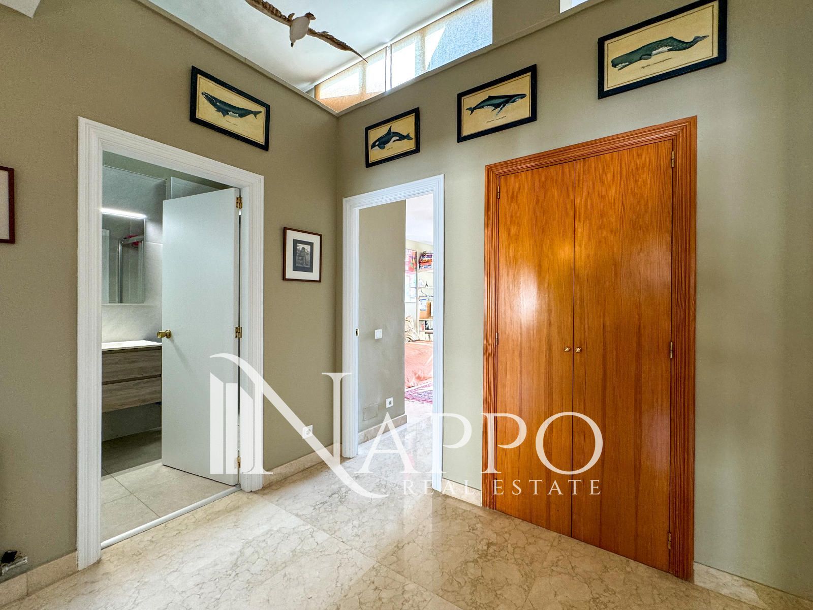 La vivienda cuenta con cinco habitaciones amplias y cuatro baños completos, ofreciendo espacio suficiente para toda la familia o para recibir invitados. La distribución de la casa está cuidadosamente pensada para maximizar la comodidad y la privacidad, con zonas de día y noche bien diferenciadas. Los dormitorios están equipados con armarios empotrados, proporcionando un amplio espacio de almacenamiento.