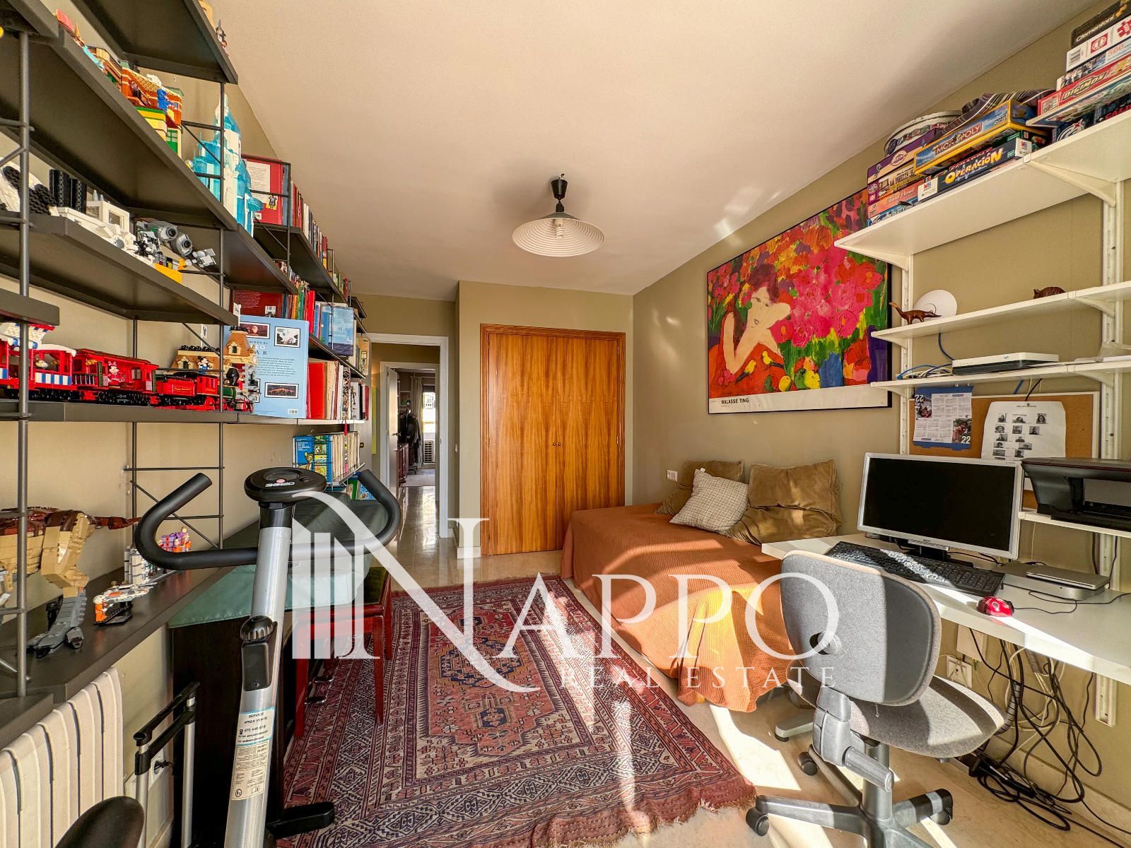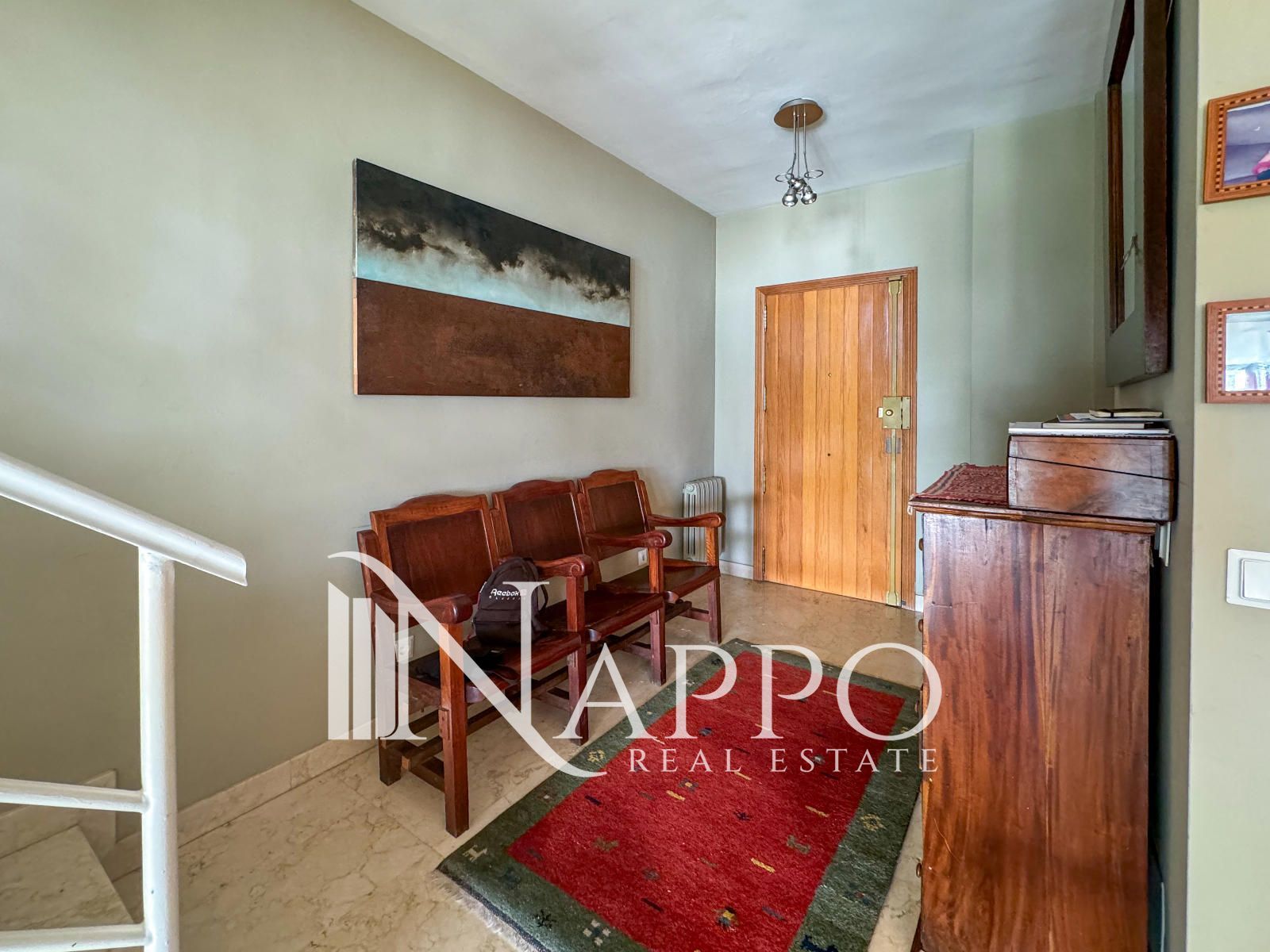 El inmueble incluye una plaza de garaje con espacio suficiente para varios vehículos, y un trastero para almacenamiento adicional. La propiedad cuenta con aire acondicionado y calefacción individual mediante gas natural, lo que garantiza el confort térmico en cualquier época del año.