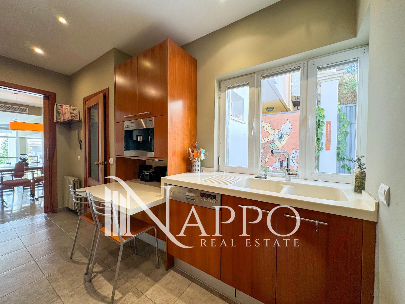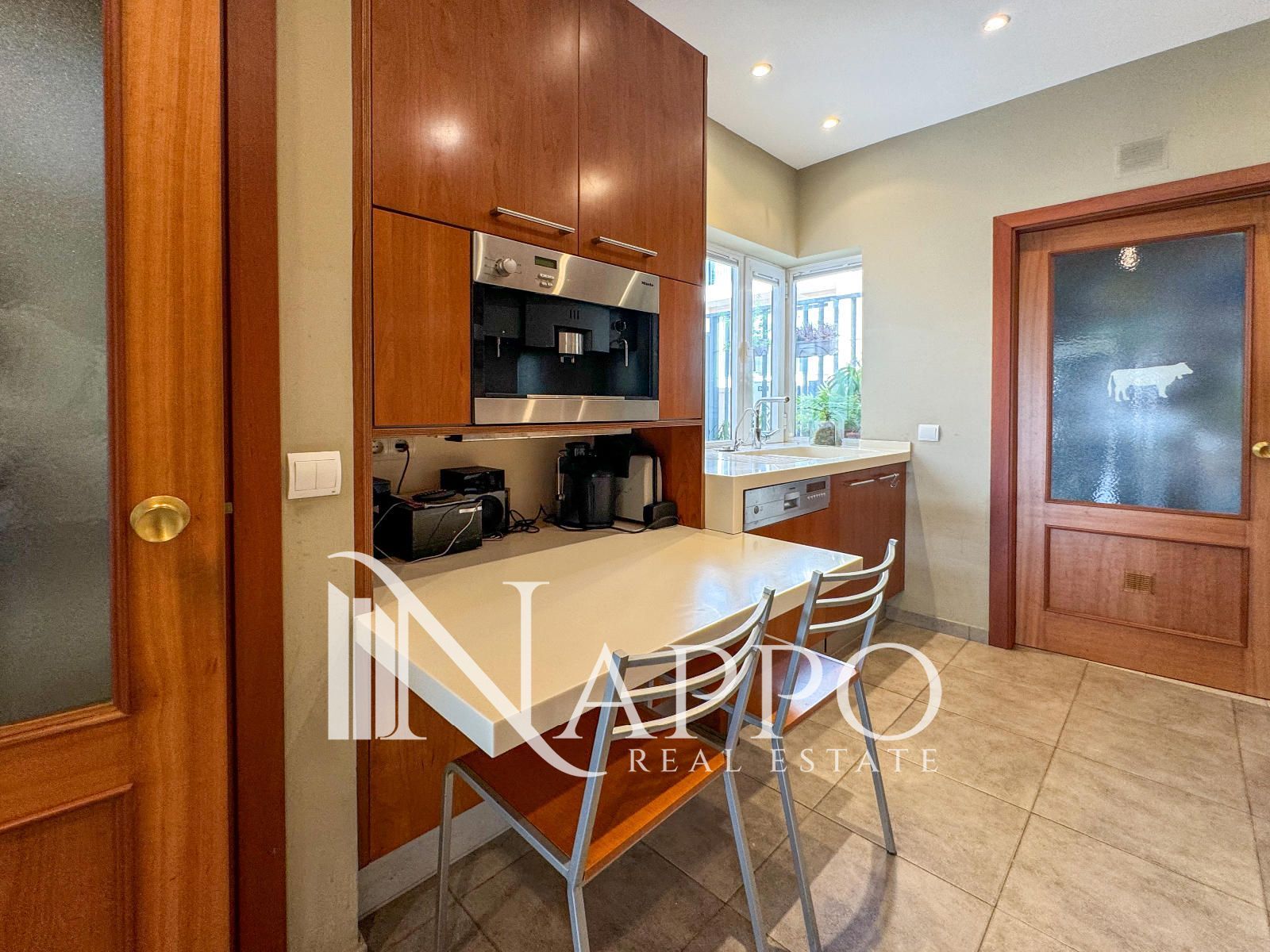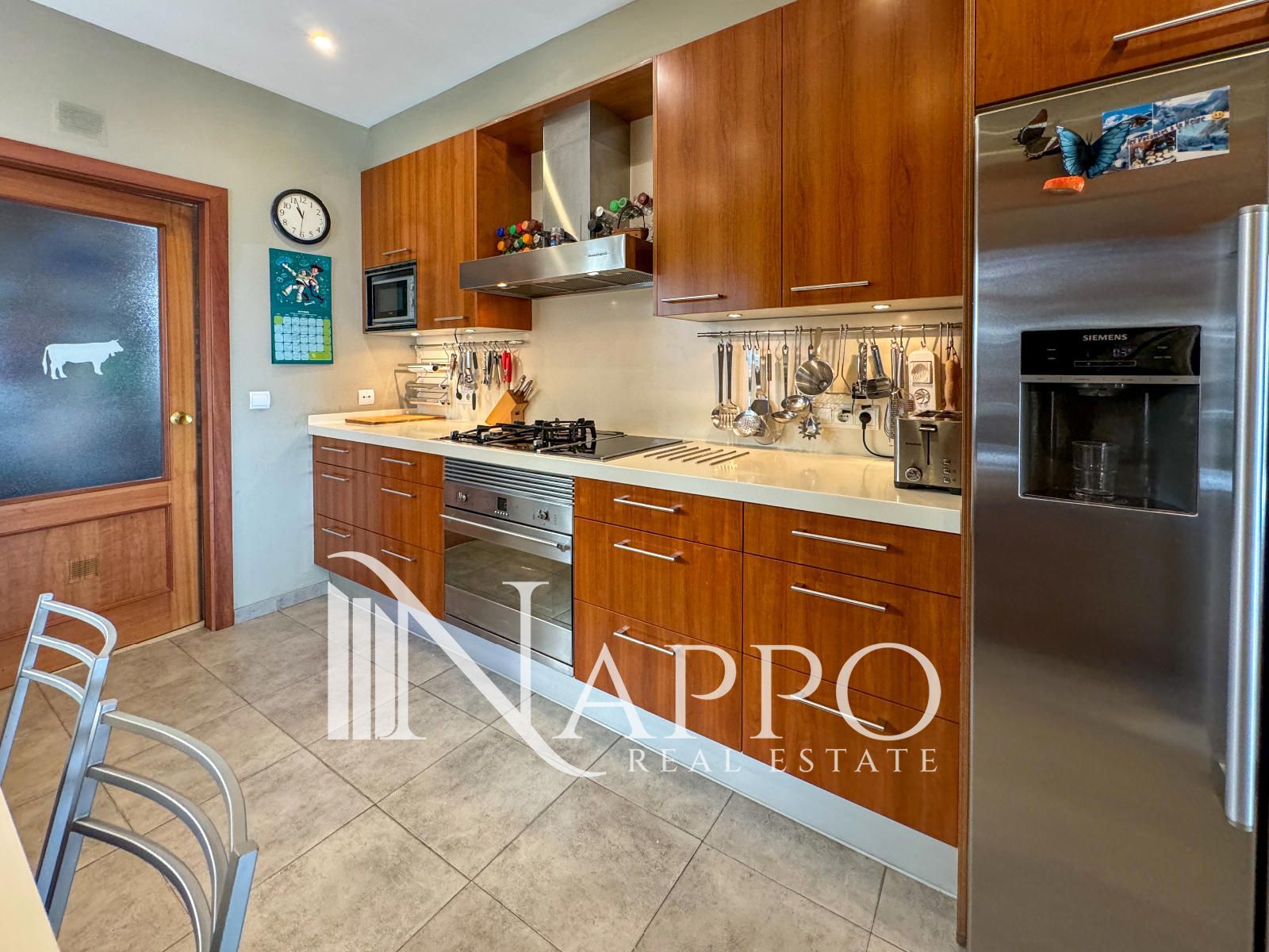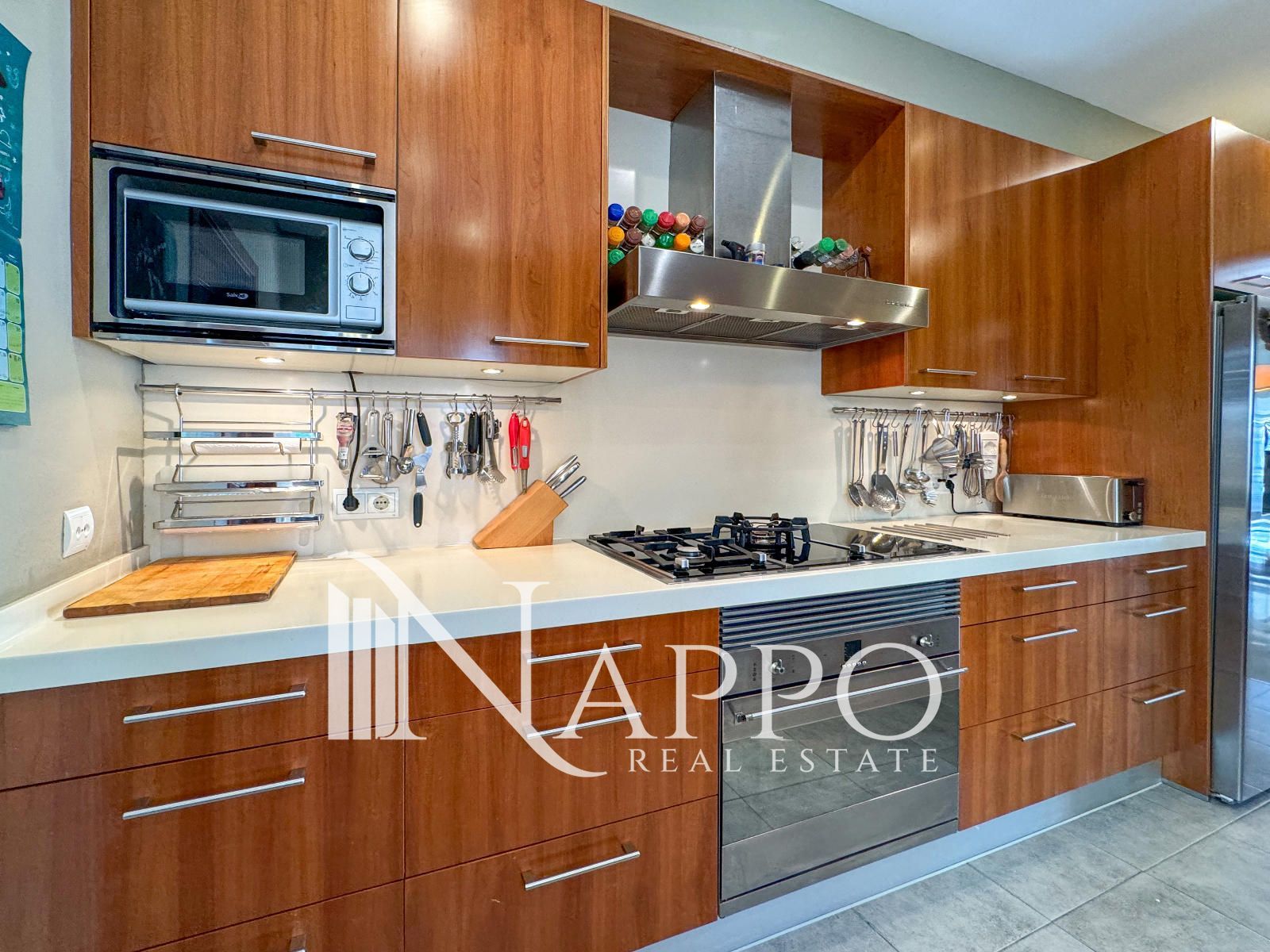 El salón principal es luminoso y acogedor, con grandes ventanales que permiten la entrada de luz natural gracias a la orientación sur y este. Este espacio se conecta con una de las cuatro terrazas, ofreciendo una extensión al aire libre perfecta para disfrutar del clima mediterráneo y de las vistas al mar. La cocina ha sido recientemente reformada y está totalmente equipada con electrodomésticos modernos. Además, cuenta con un sistema de ósmosis para el agua potable, lo que garantiza la máxima calidad del agua en el hogar. La cocina también tiene acceso directo a una de las terrazas, ideal para disfrutar de desayunos al aire libre.