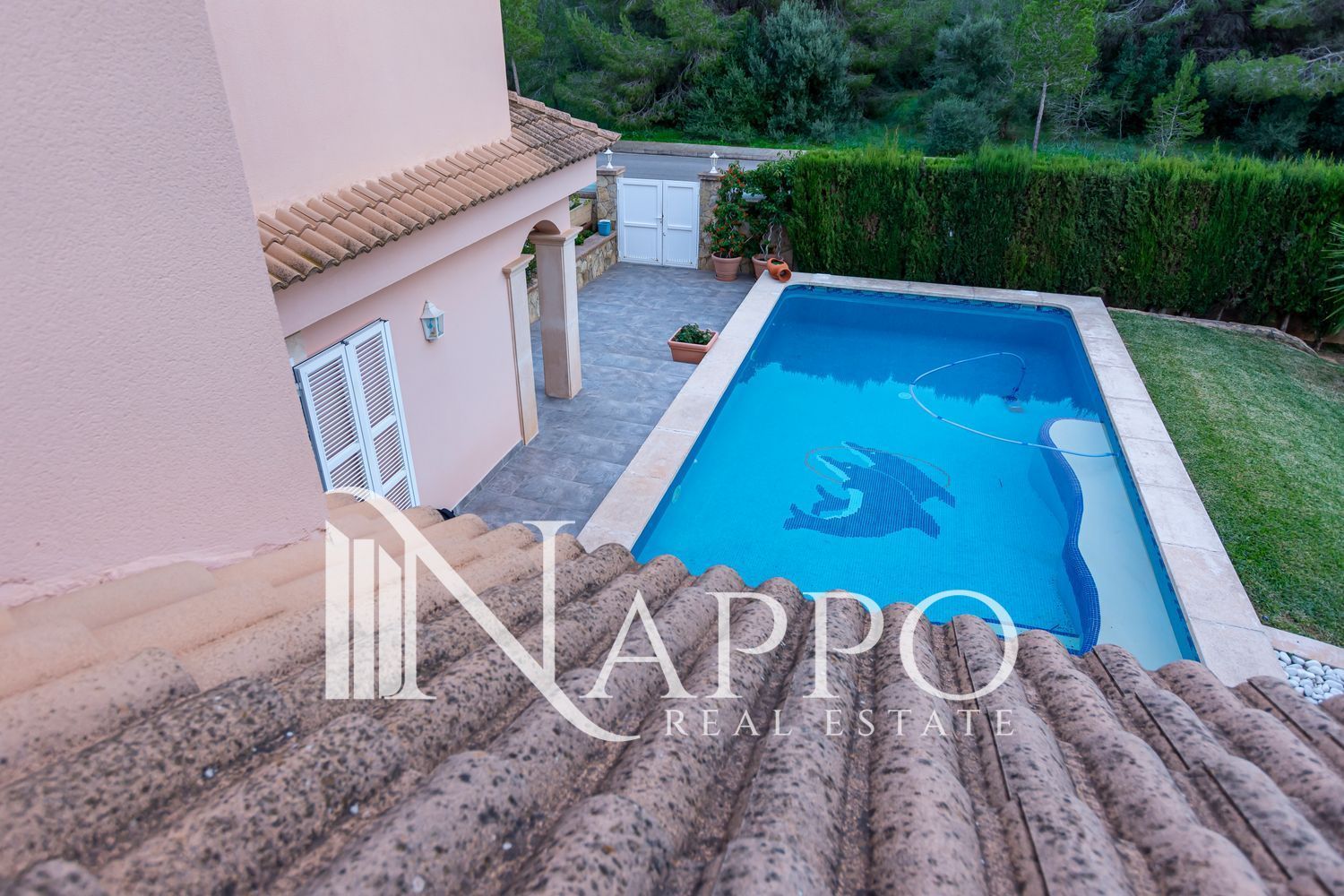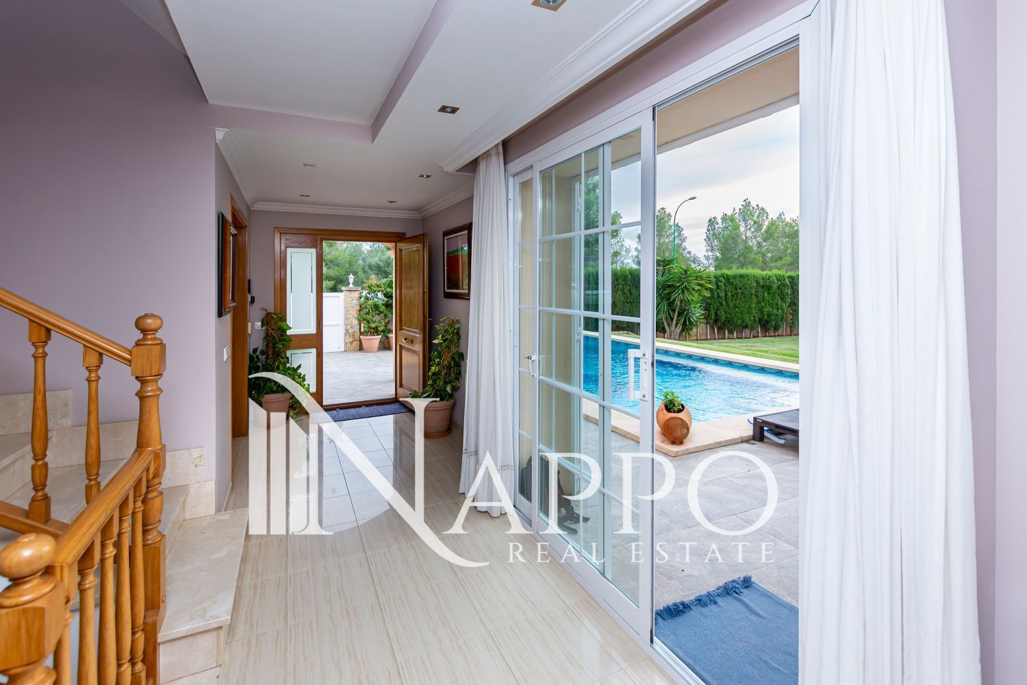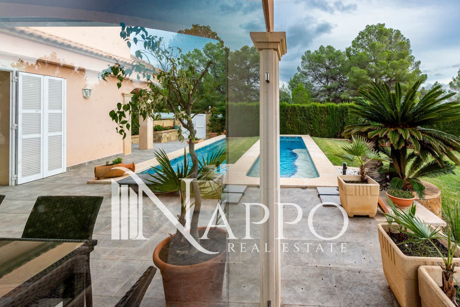 Nappo Real Estate  presenta exclusiva casa con piscina privada y jardín, ubicada en la prestigiosa urbanización de Ses Vinyes de Son Veri, Marratxí, una de las zonas más demandadas y valoradas de Mallorca por su tranquilidad, privacidad y excelente conexión con Palma.