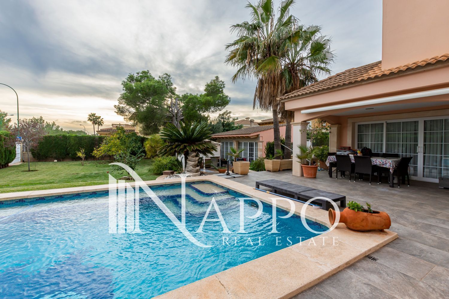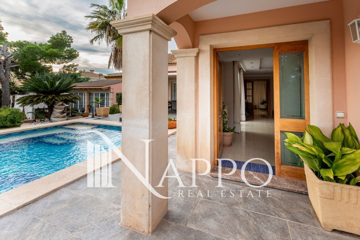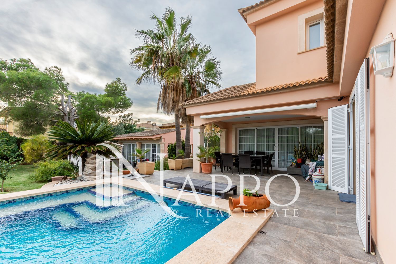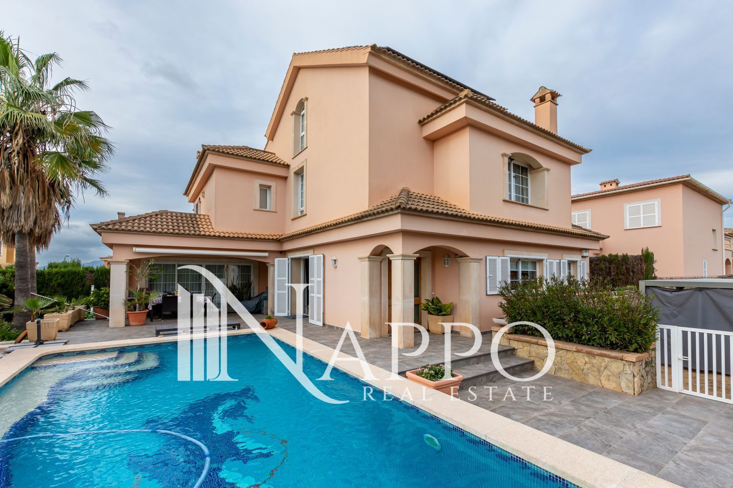 Nappo Real Estate  presenta exclusiva casa con piscina privada y jardín, ubicada en la prestigiosa urbanización de Ses Vinyes de Son Veri, Marratxí, una de las zonas más demandadas y valoradas de Mallorca por su tranquilidad, privacidad y excelente conexión con Palma.