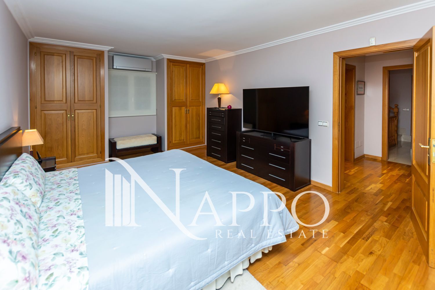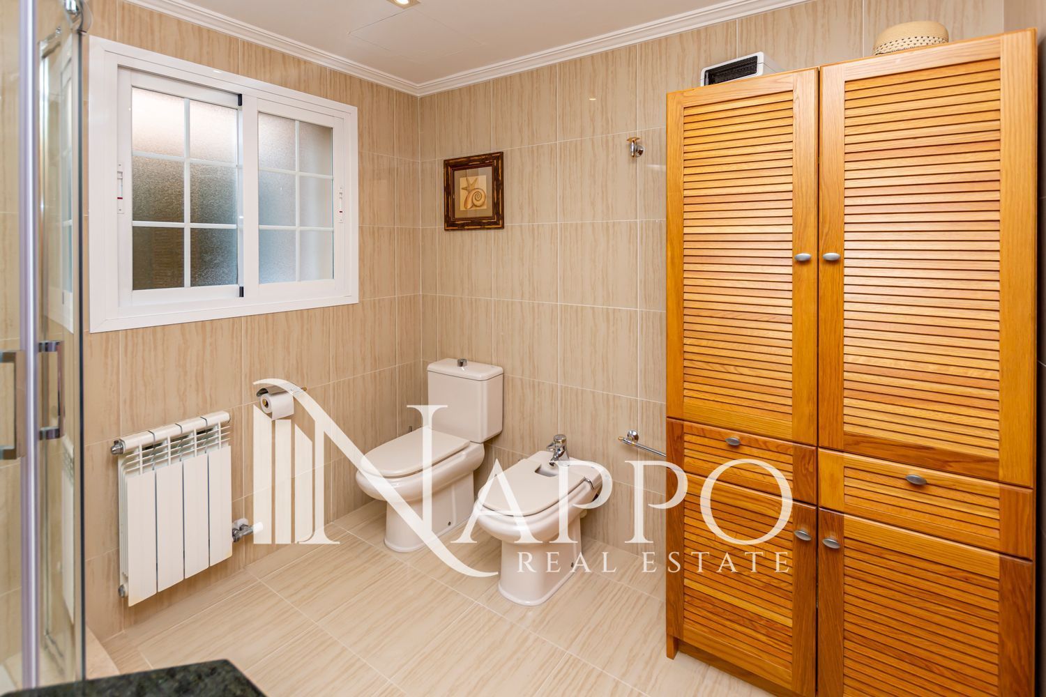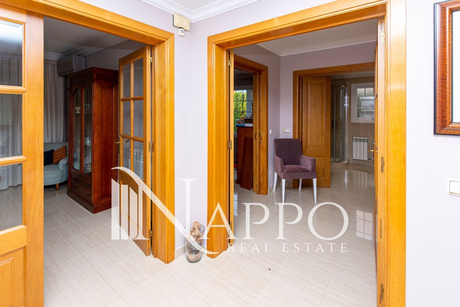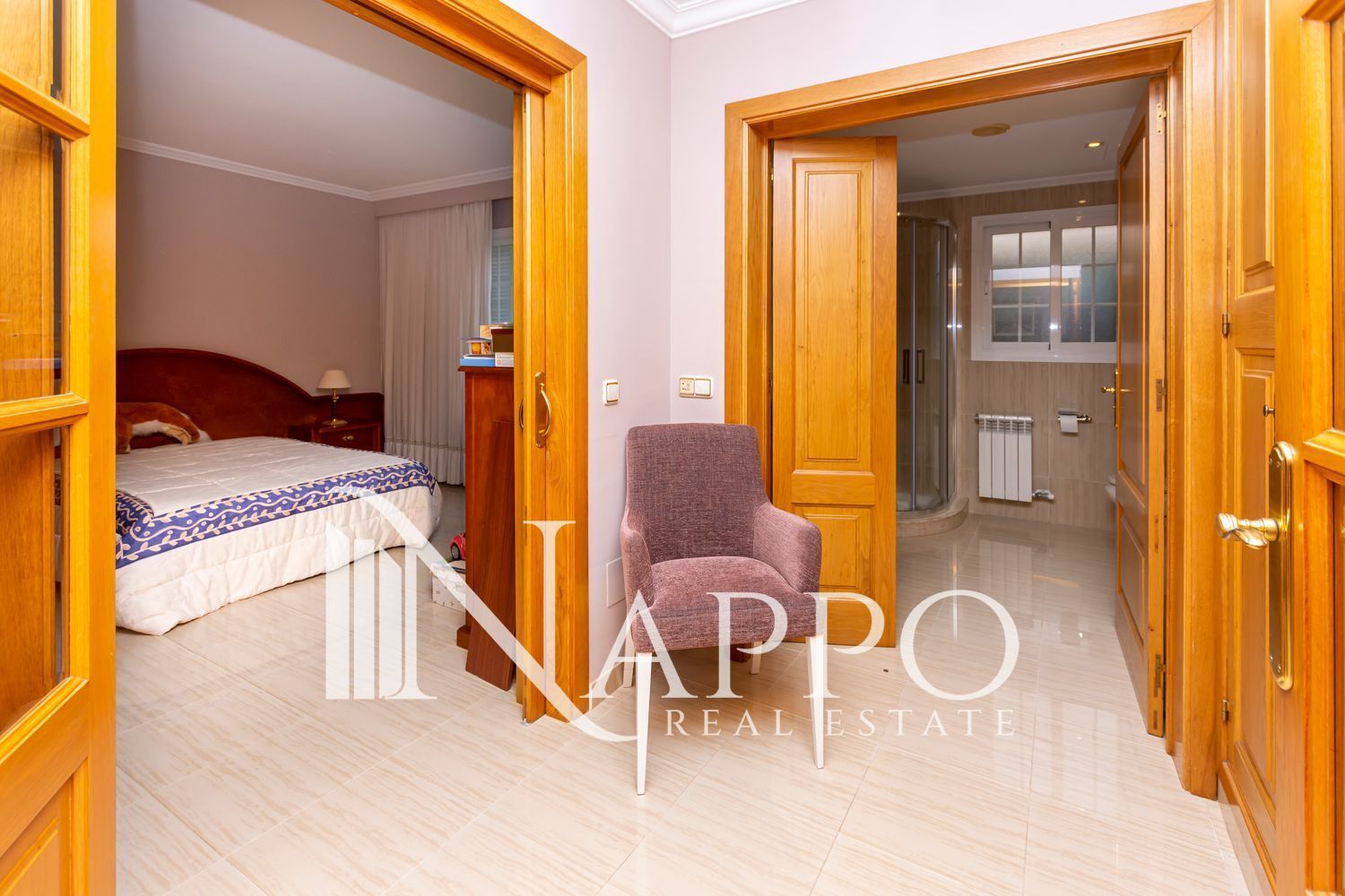 En la planta baja, el amplio salón-comedor tiene salida directa al porche, al jardín y a la piscina, creando un espacio perfecto para disfrutar del estilo de vida mediterráneo. La cocina independiente, totalmente amueblada y equipada, cuenta con despensa y salida a galería, pensada para el día a día con máxima funcionalidad. En esta misma planta se encuentra un gran dormitorio principal, con un amplio baño completo en suite y un vestidor que aporta comodidad y privacidad.