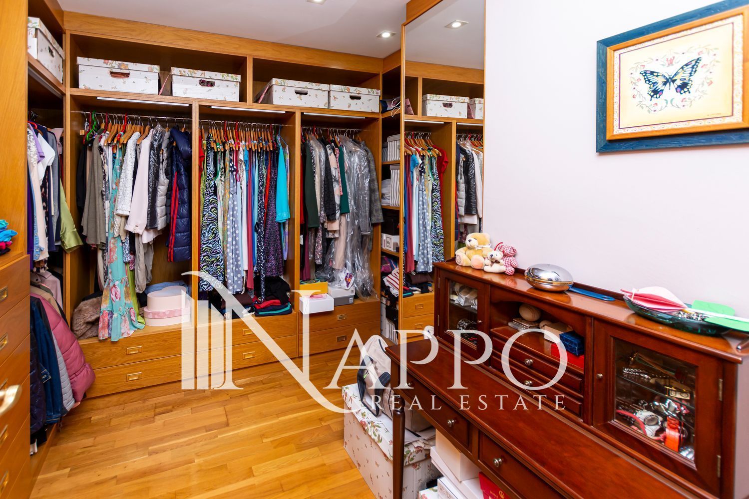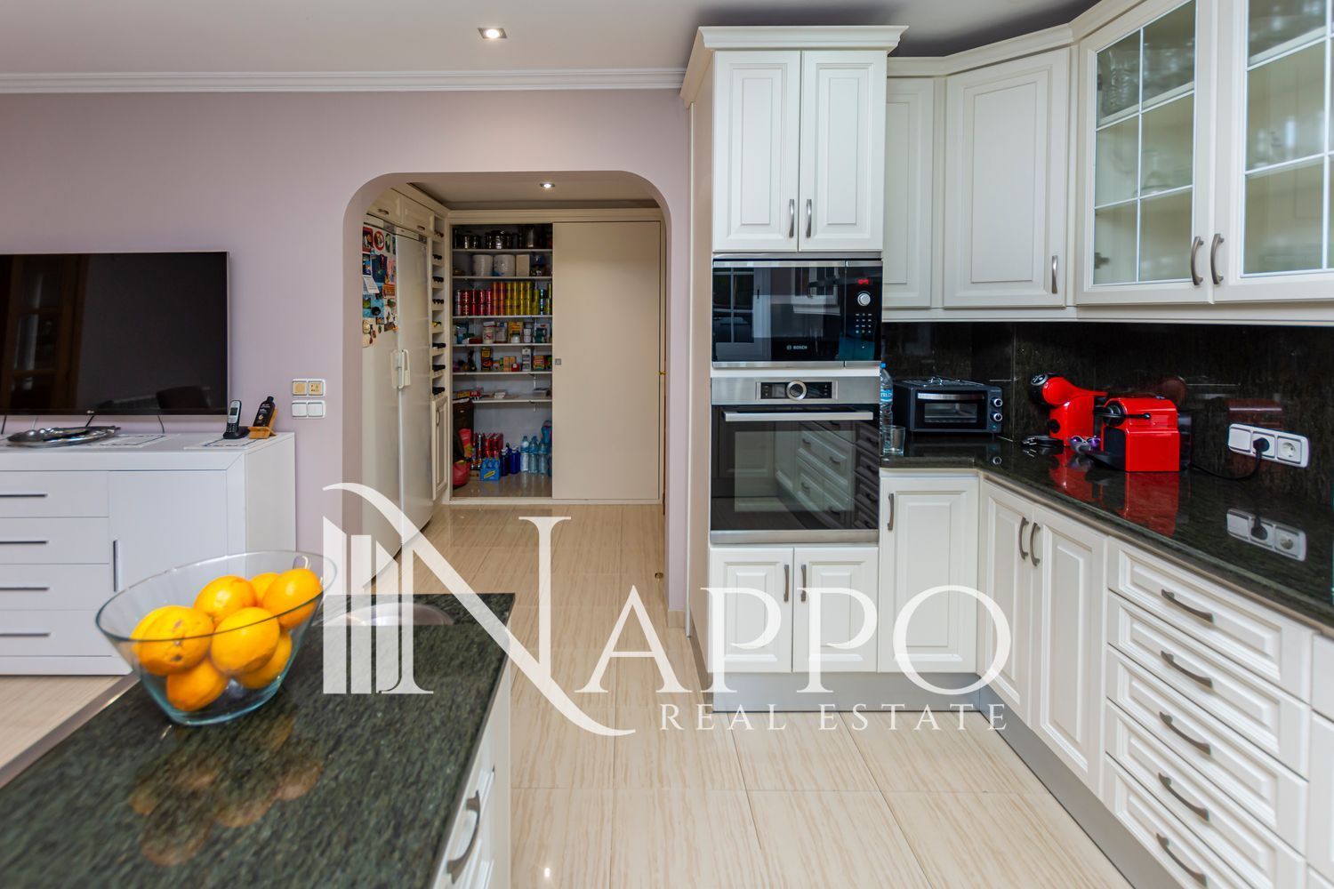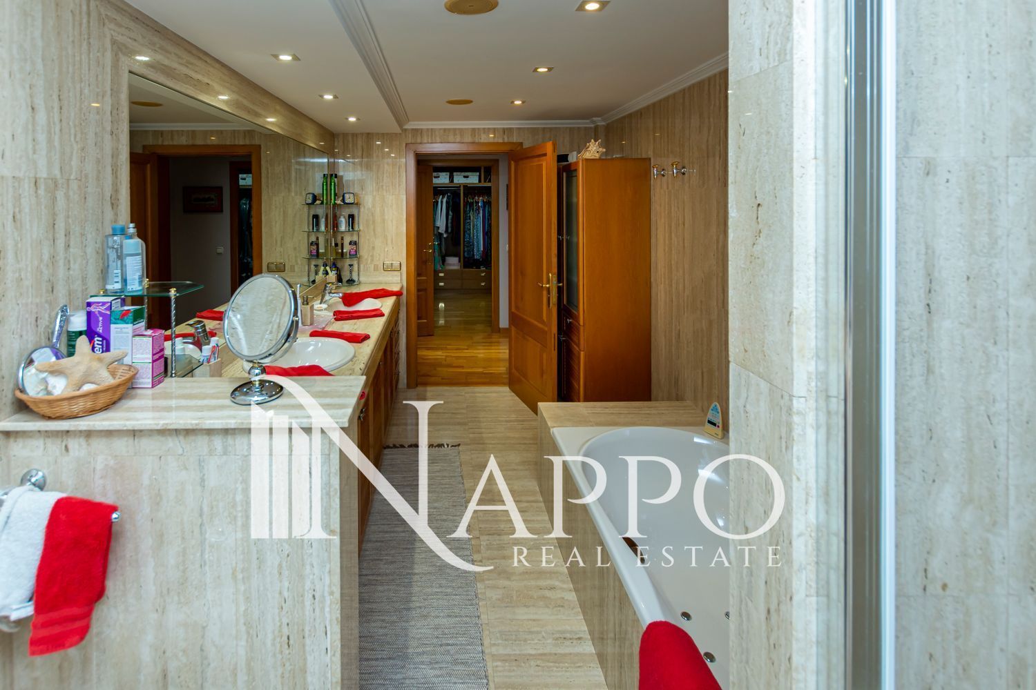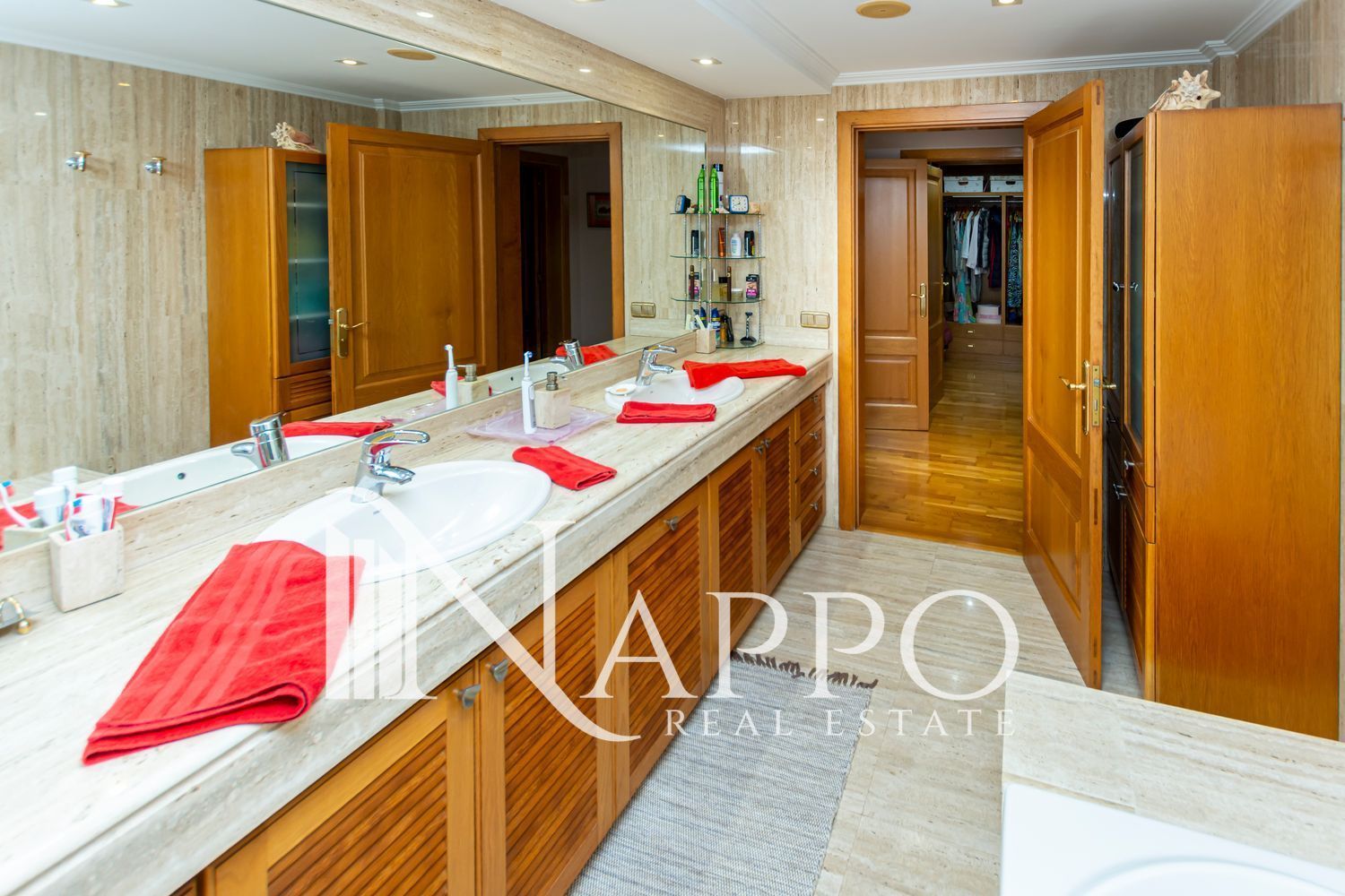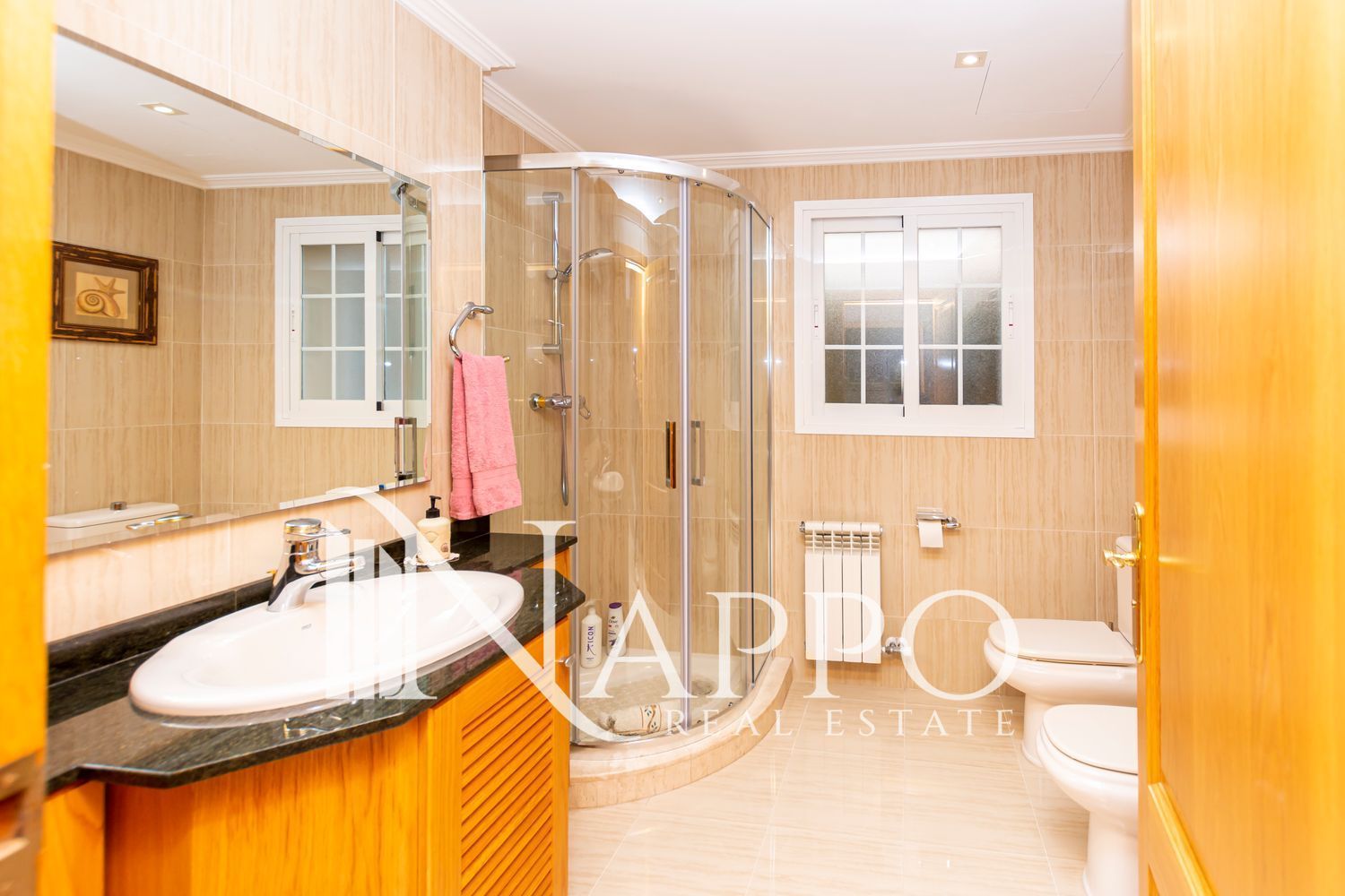En la planta baja, el amplio salón-comedor tiene salida directa al porche, al jardín y a la piscina, creando un espacio perfecto para disfrutar del estilo de vida mediterráneo. La cocina independiente, totalmente amueblada y equipada, cuenta con despensa y salida a galería, pensada para el día a día con máxima funcionalidad. En esta misma planta se encuentra un gran dormitorio principal, con un amplio baño completo en suite y un vestidor que aporta comodidad y privacidad.