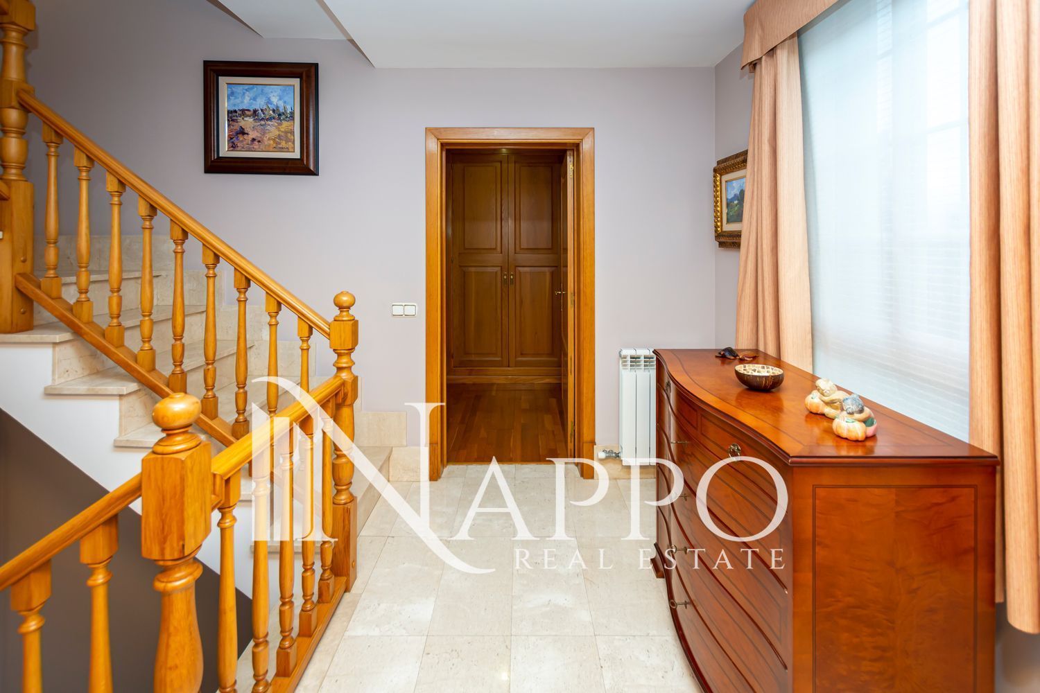 En cuanto a sus calidades, la casa dispone de carpintería exterior de aluminio con climalit y carpintería interior de madera. Los suelos combinan mármol y parquet en las zonas comunes, aportando elegancia y calidez. Cuenta con aire acondicionado frío/calor y calefacción de gasoil por radiadores en toda la vivienda, lo que garantiza el confort durante todo el año. Además, dispone de termo eléctrico, piscina privada y sótano.