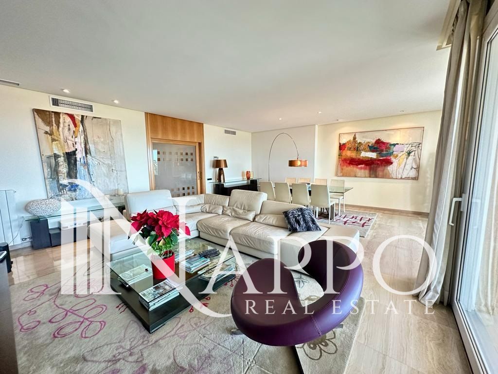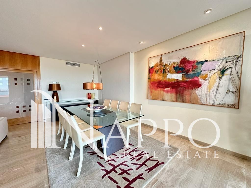 Excepcionalmente elegante, este apartamento de lujo de 320m2 es una obra maestra de la opulencia en Palma. Situado junto al centro comercial de Porto Pi y el Casino Mallorca, disfruta de vistas panorámicas al mar y al paseo marítimo. Este exclusivo hogar cuenta con un amplio salón comedor, una cocina gourmet con electrodomésticos de primera línea y habitación para el personal.