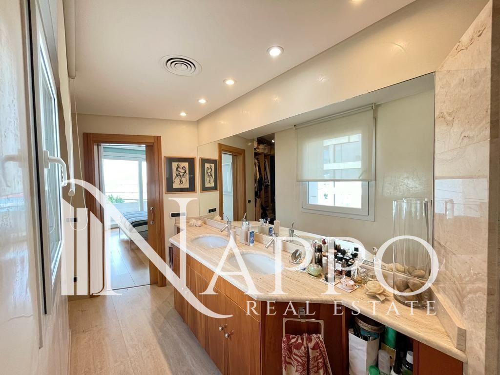 Las 4 habitaciones dobles y 3 baños, incluyendo la suite principal con jacuzzi, ducha, vestidor y vista al mar, definen la elegancia. El mármol exquisito y los acabados de calidad, junto con obras de arte de gran valor, crean una atmósfera de refinamiento. Con calefacción a gas, electrodomésticos de última generación, acceso al gimnasio y una piscina privada, la comodidad se fusiona con el lujo.