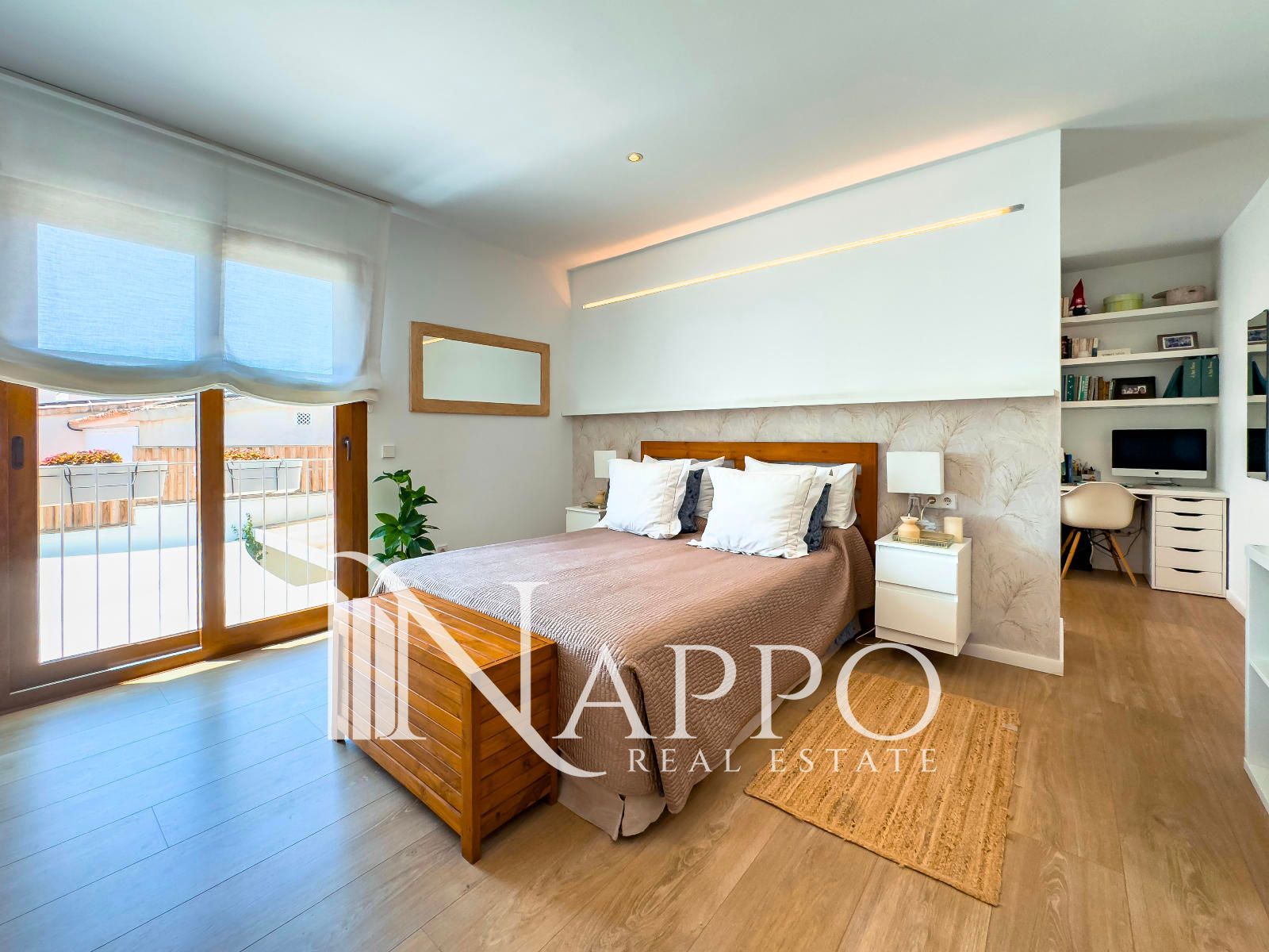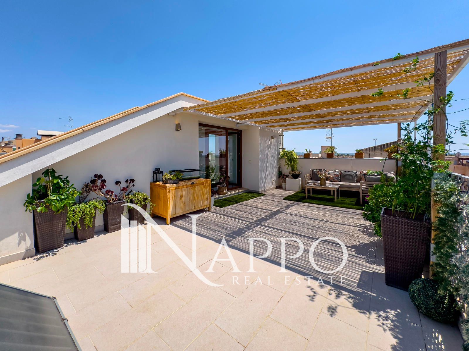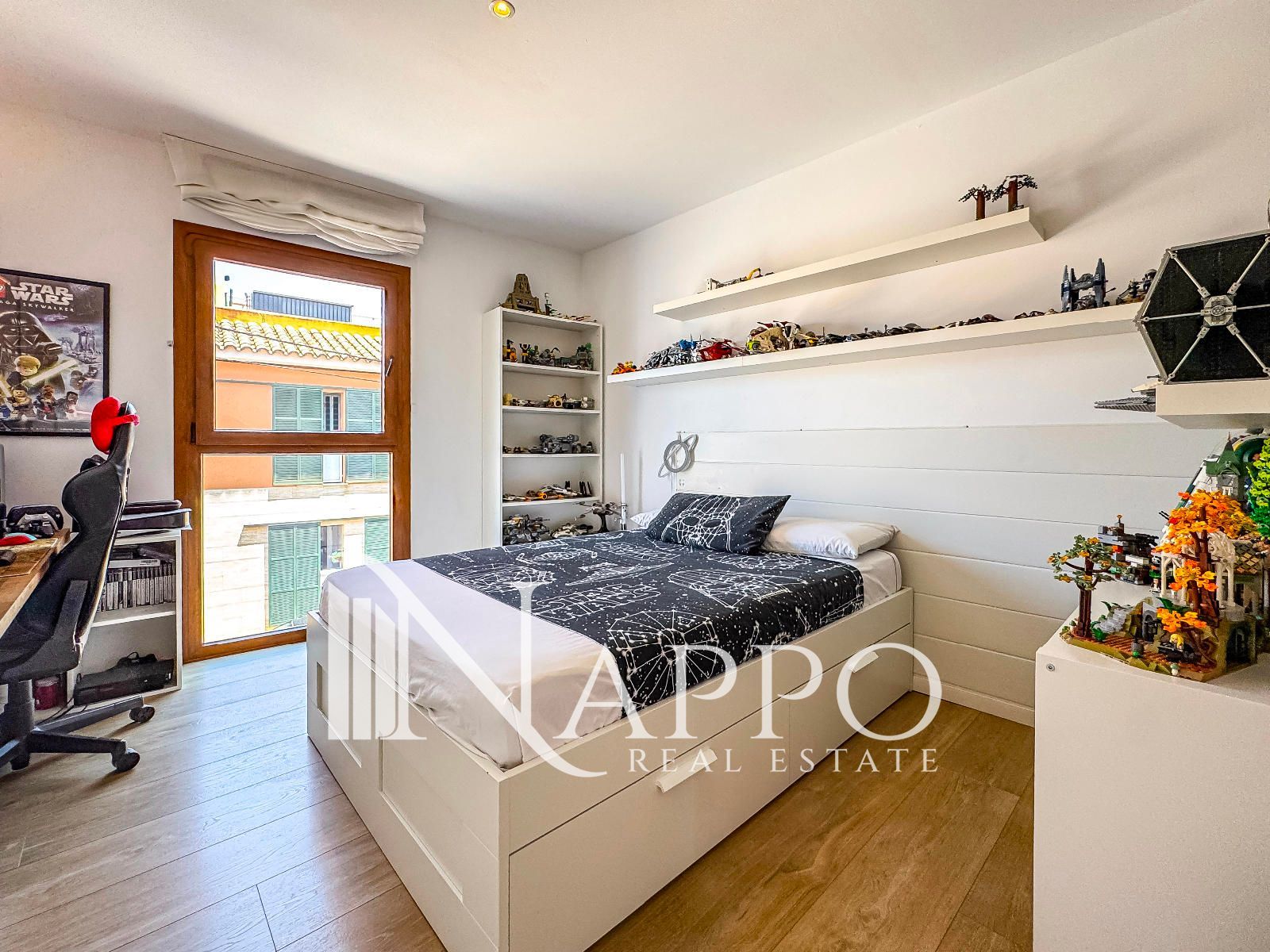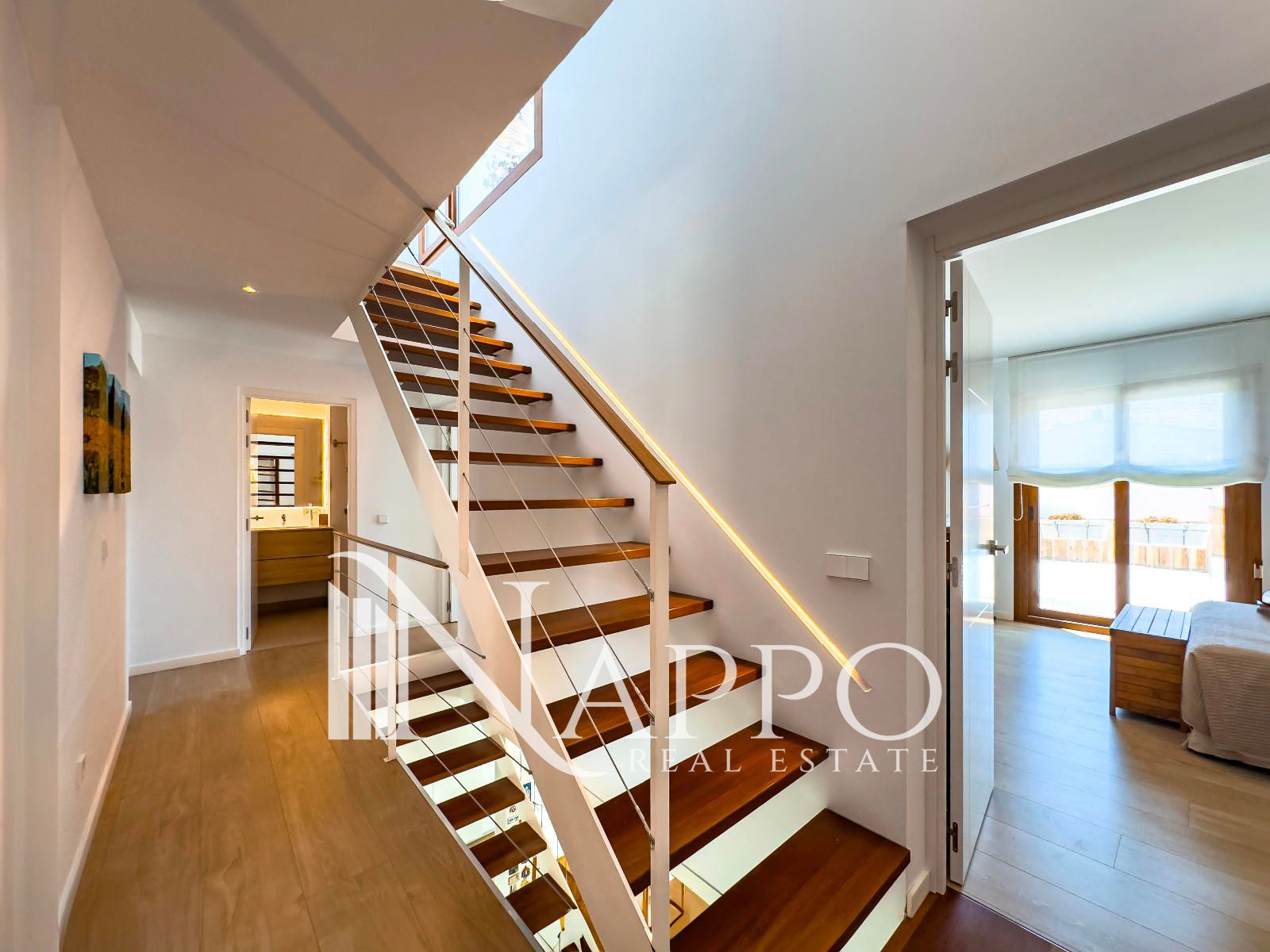 Como elemento distintivo, la propiedad cuenta con una impresionante terraza superior tipo rooftop, amplia y acogedora, que ofrece espectaculares vistas panorámicas de 360 grados, desde donde se puede contemplar la bahía de Palma, el castillo de Bellver y la majestuosa Sierra de Tramuntana. El lugar perfecto para atardeceres inolvidables, cenas al aire libre o simplemente relajarse contemplando el paisaje mallorquín.