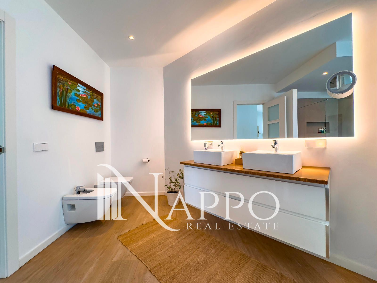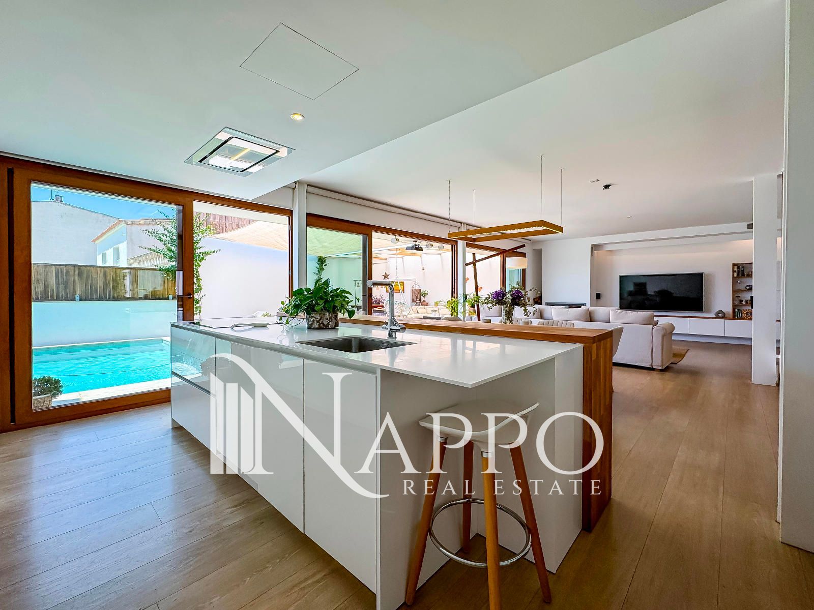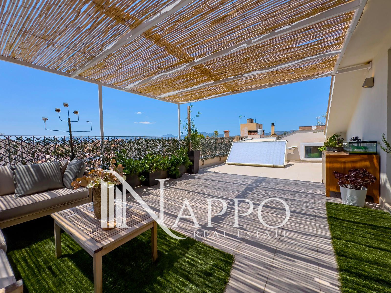Como elemento distintivo, la propiedad cuenta con una impresionante terraza superior tipo rooftop, amplia y acogedora, que ofrece espectaculares vistas panorámicas de 360 grados, desde donde se puede contemplar la bahía de Palma, el castillo de Bellver y la majestuosa Sierra de Tramuntana. El lugar perfecto para atardeceres inolvidables, cenas al aire libre o simplemente relajarse contemplando el paisaje mallorquín.