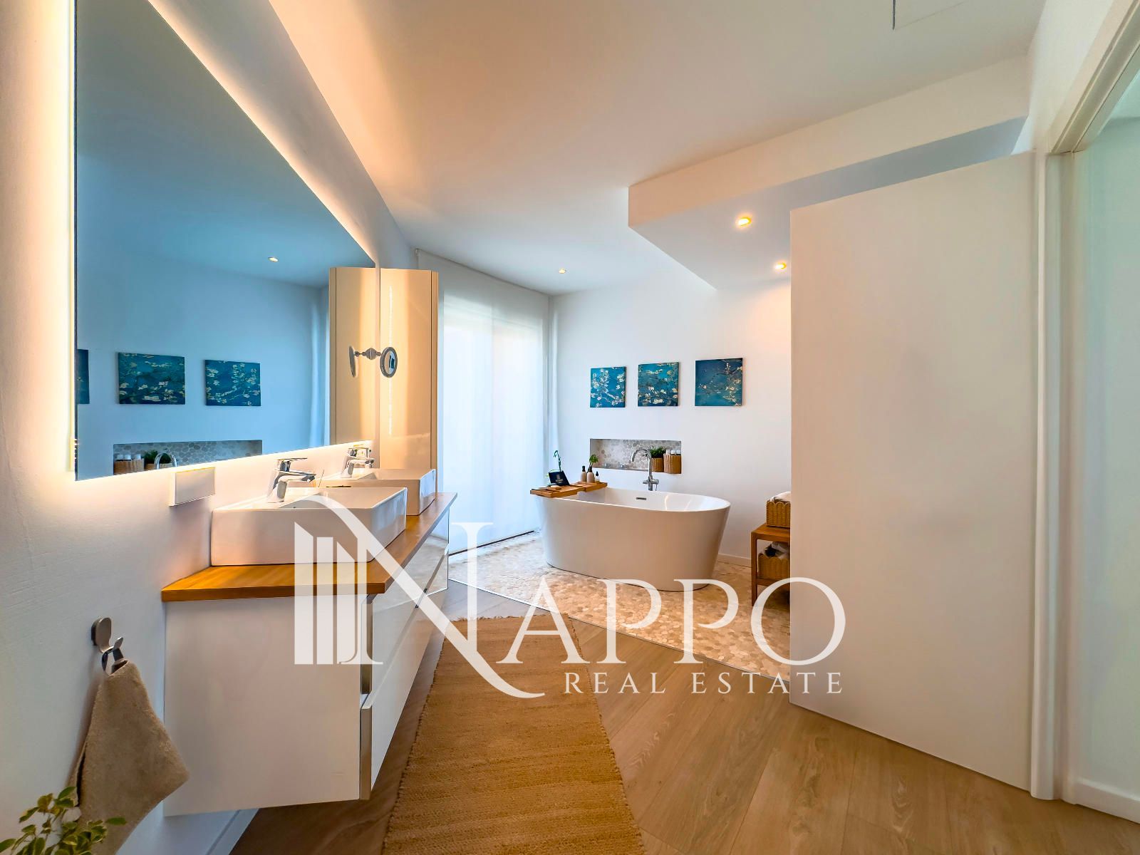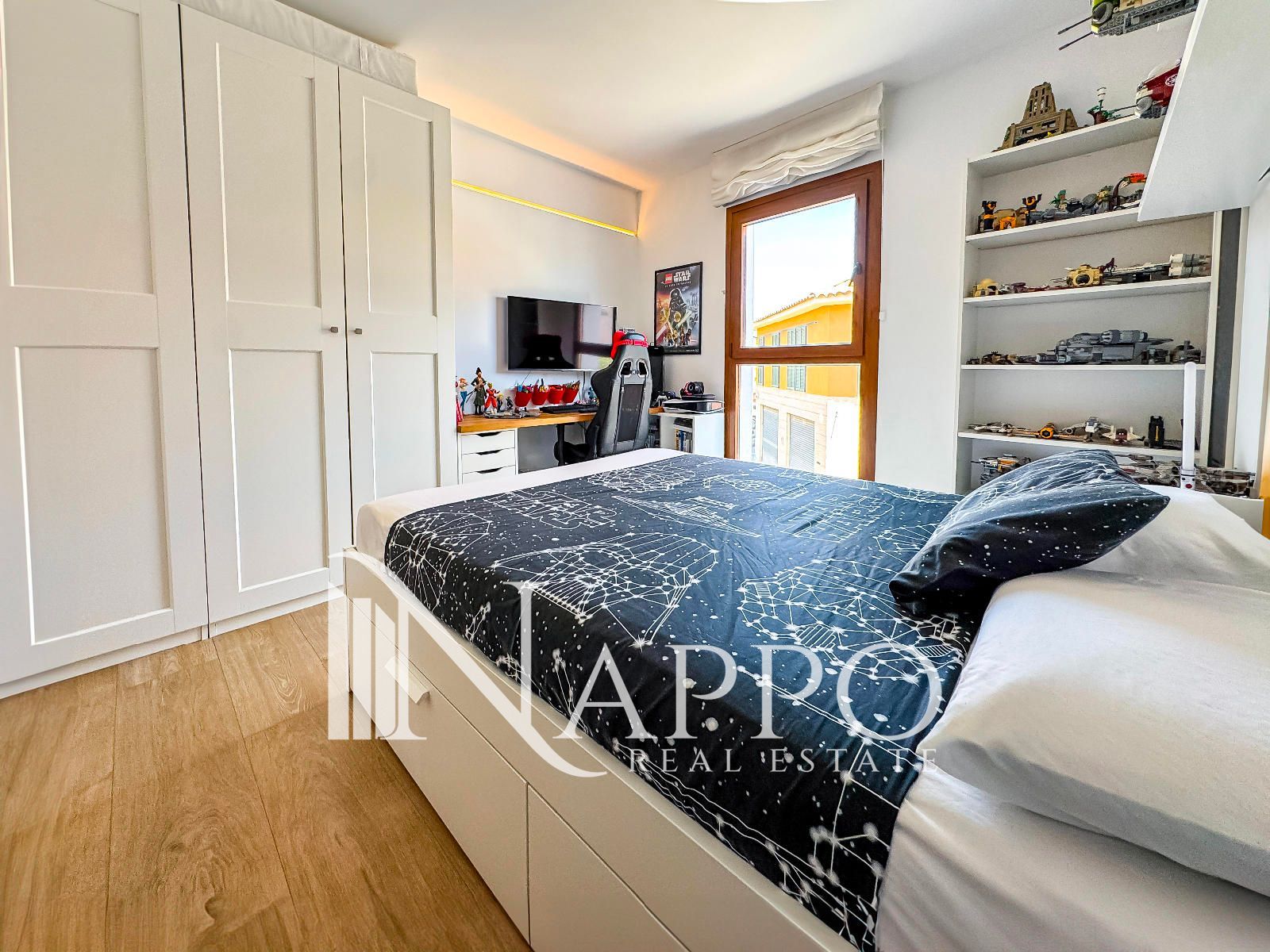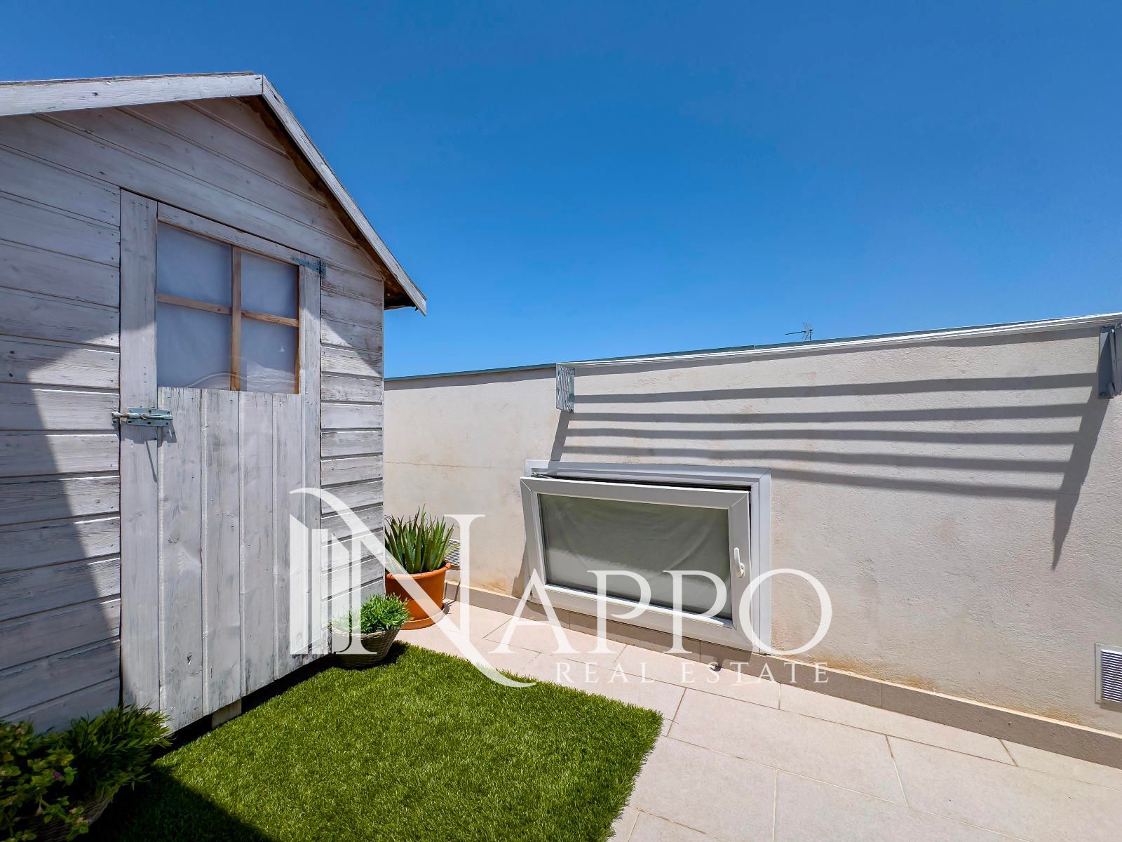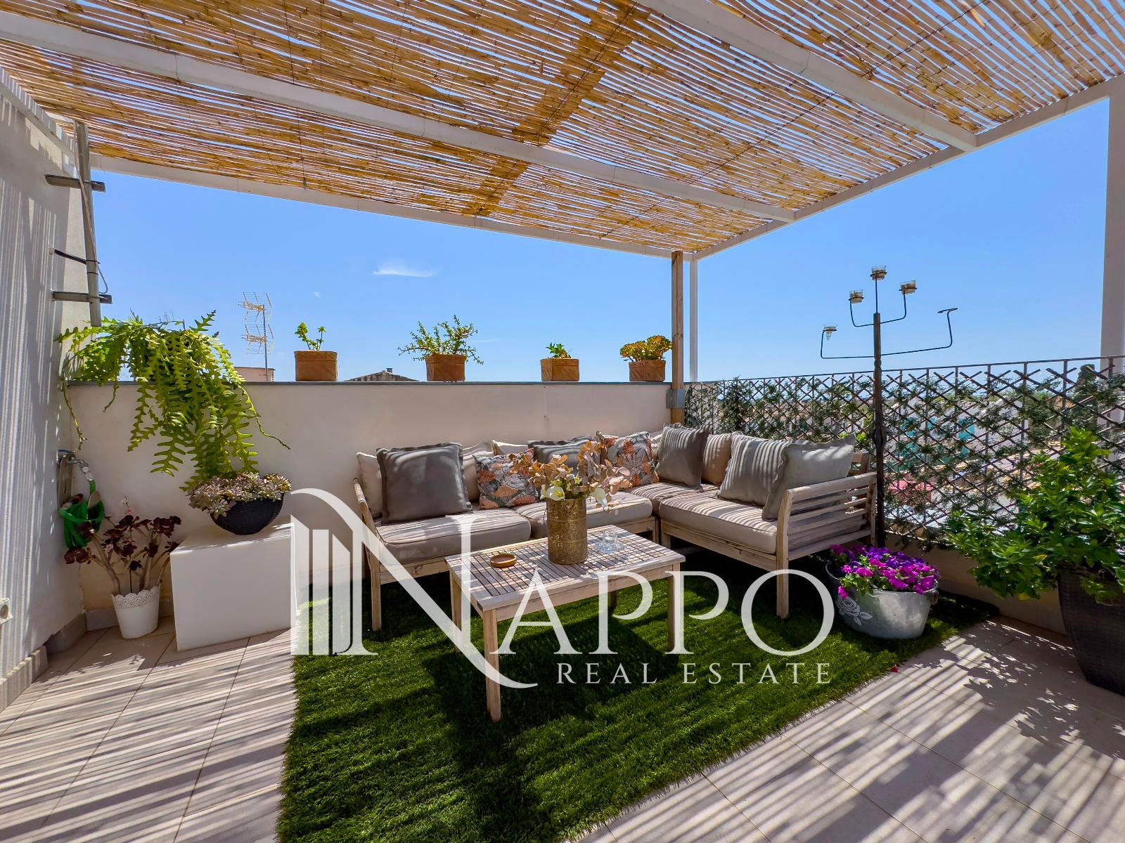 Como elemento distintivo, la propiedad cuenta con una impresionante terraza superior tipo rooftop, amplia y acogedora, que ofrece espectaculares vistas panorámicas de 360 grados, desde donde se puede contemplar la bahía de Palma, el castillo de Bellver y la majestuosa Sierra de Tramuntana. El lugar perfecto para atardeceres inolvidables, cenas al aire libre o simplemente relajarse contemplando el paisaje mallorquín.