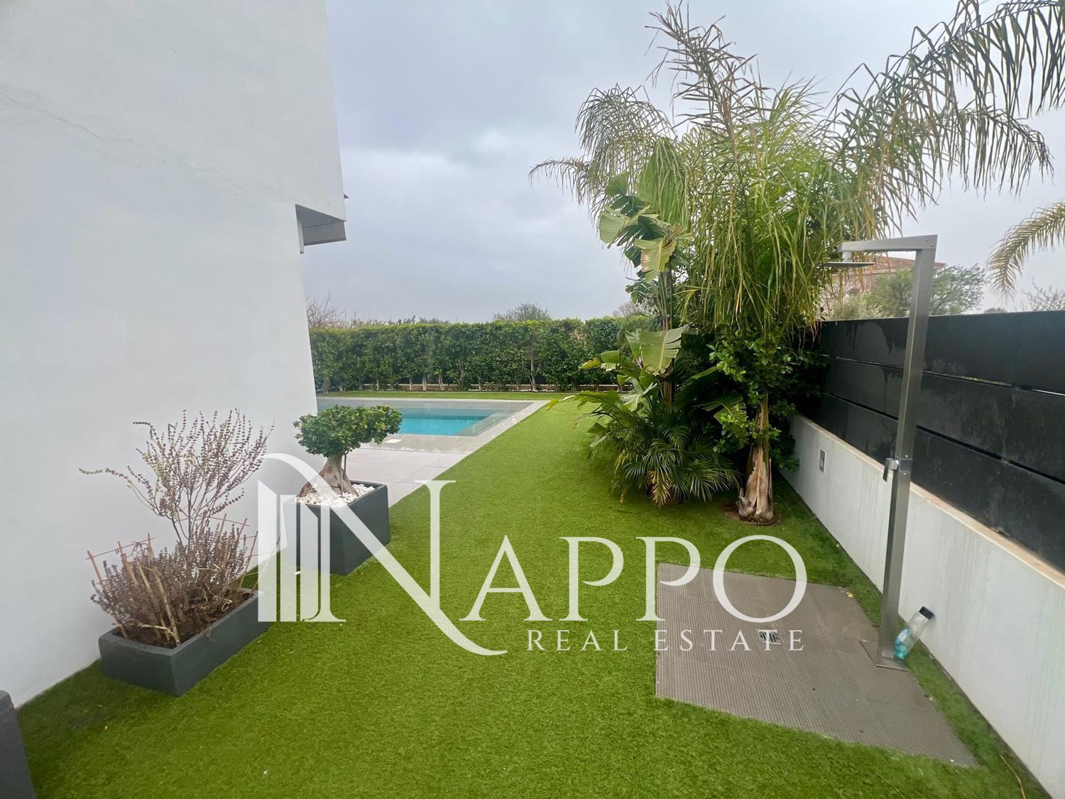 Edificada sobre una parcela de 486 m², esta vivienda de alto nivel ha sido diseñada para disfrutar plenamente del estilo de vida mediterráneo. En el exterior encontramos una elegante piscina de agua salada, zona de solárium con ducha exterior de agua fría y caliente, un precioso jardín consolidado y una zona de barbacoa equipada con horno de pizza, perfecta para reuniones y momentos inolvidables al aire libre.