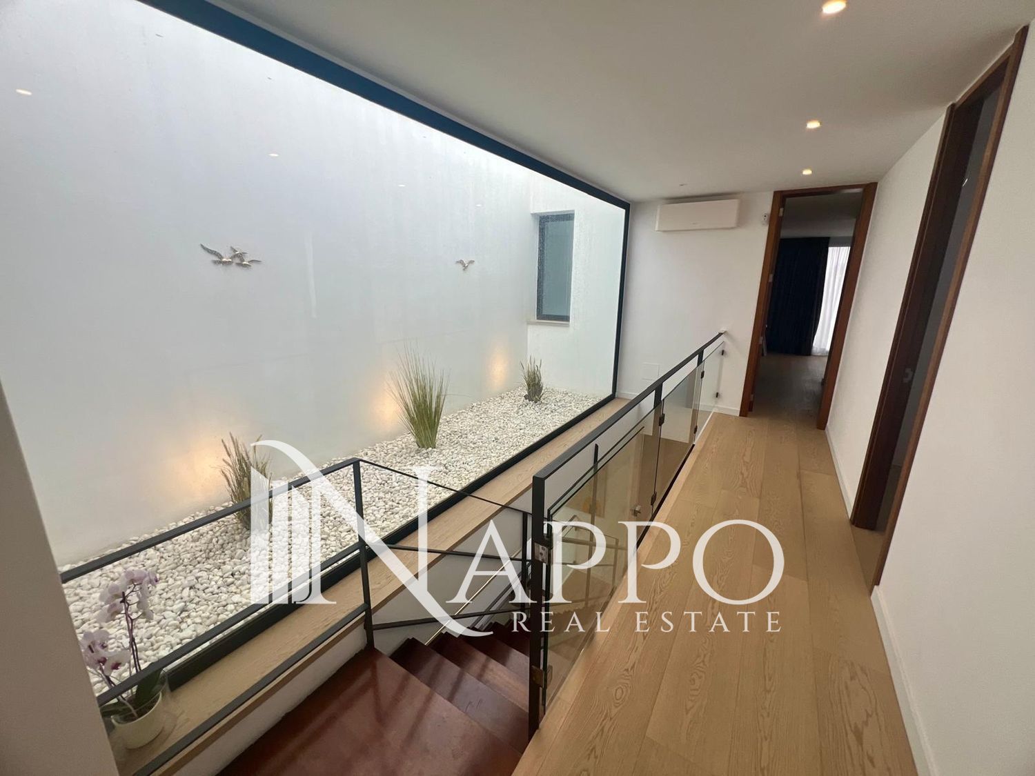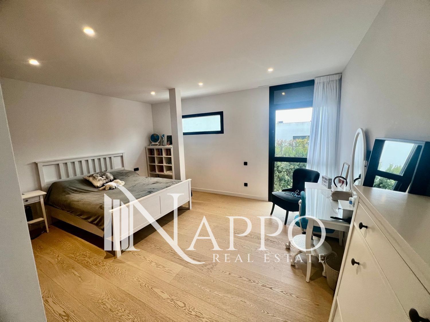 Con 480 m² distribuidos en tres niveles, la casa combina amplitud, diseño contemporáneo y confort. La planta principal alberga la zona de día en un amplio espacio abierto que integra salón, comedor y cocina de estilo moderno, con grandes ventanales que conectan directamente con el jardín y permiten que la luz natural inunde cada rincón. En este mismo nivel se encuentra uno de los dormitorios y un baño completo, proporcionando gran comodidad en el uso diario.