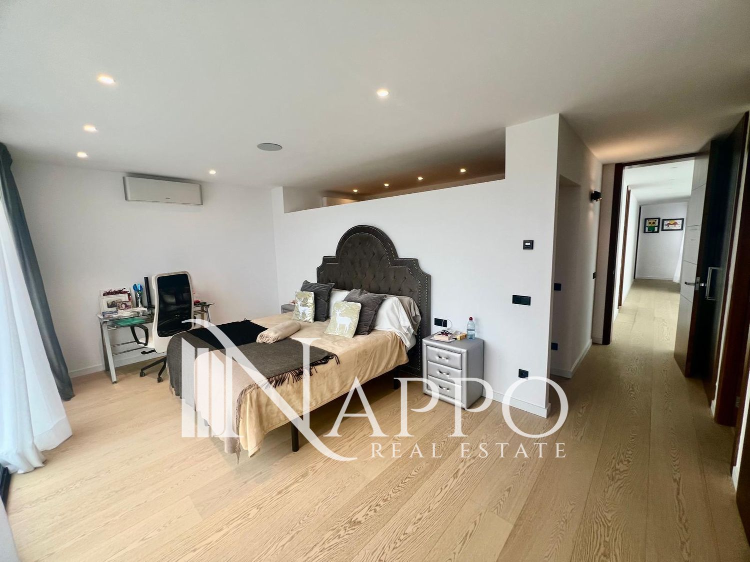 La planta superior está destinada a la zona de descanso, con tres dormitorios luminosos que ofrecen vistas despejadas y una atmósfera de bienestar y serenidad. En la planta inferior, con acceso independiente, se encuentra una estancia actualmente habilitada como despacho (con potencial de convertirse en un dormitorio doble adicional), un baño completo, una amplia sala polivalente ideal como gimnasio, sala de cine, espacio recreativo o lounge privado, además de trastero, lavandería y acceso directo al garaje con capacidad para varios vehículos.