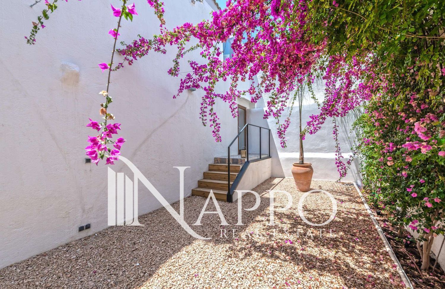 Un recibidor amplio da paso a un aseo y a la cocina americana firmada por VARENA, totalmente equipada. Se integra con el comedor, donde destaca una pared de piedra de mares. El mobiliario es de diseño, con piezas icónicas como Polspotten. Desde aquí se accede al jardín privado, con vegetación vertical, una palmera que asciende hasta la planta superior y espacio para reuniones. Además, existe la posibilidad de levantar una casa de invitados de unos 52 m².