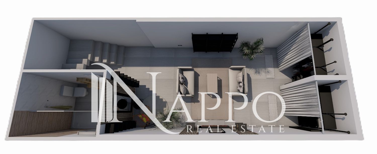 La propiedad cuenta con una planta baja de 45 m² con acceso directo desde una calle residencial privada, cocina completamente equipada, coladuría y dos baños de alta gama. En el nivel inferior se encuentra un sótano de casi 50 m², un espacio excepcional con techos de tres metros, luz natural, circulación de aire, climatización y chimenea ecológica, ideal para utilizar como zona de descanso, coworking, área profesional o espacio de ocio.