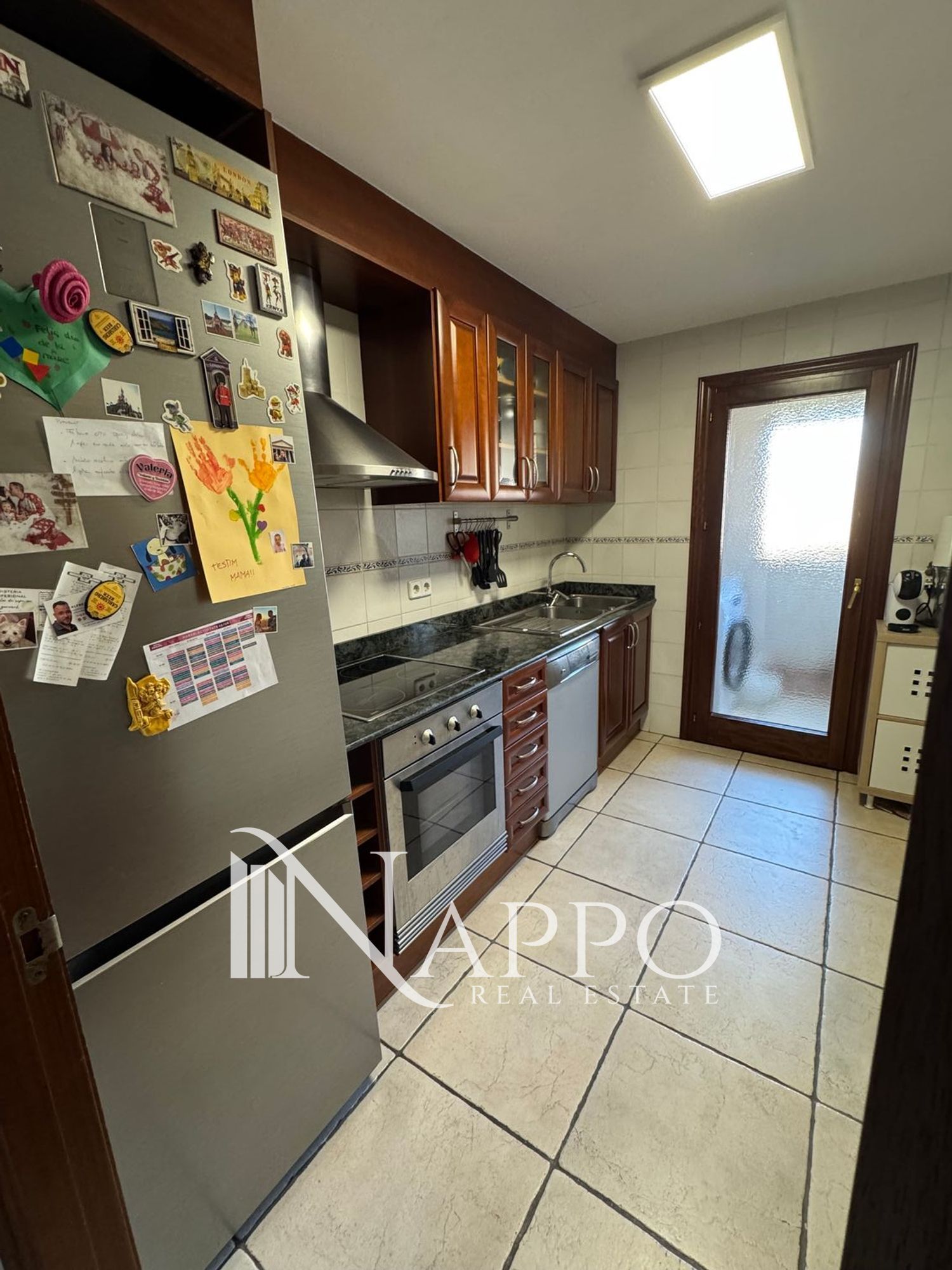 El piso cuenta con una distribución cómoda y funcional, ofreciendo tres dormitorios, uno de ellos con baño en suite, además de un segundo baño completo que da servicio al resto de la vivienda. El salón-comedor es amplio y luminoso, ideal para disfrutar en familia, mientras que la cocina independiente se complementa con un práctico lavadero. Desde uno de los dormitorios se accede a un balcón con vistas despejadas al exterior, aportando luz natural y ventilación.