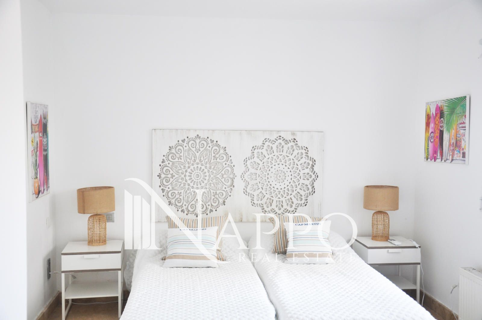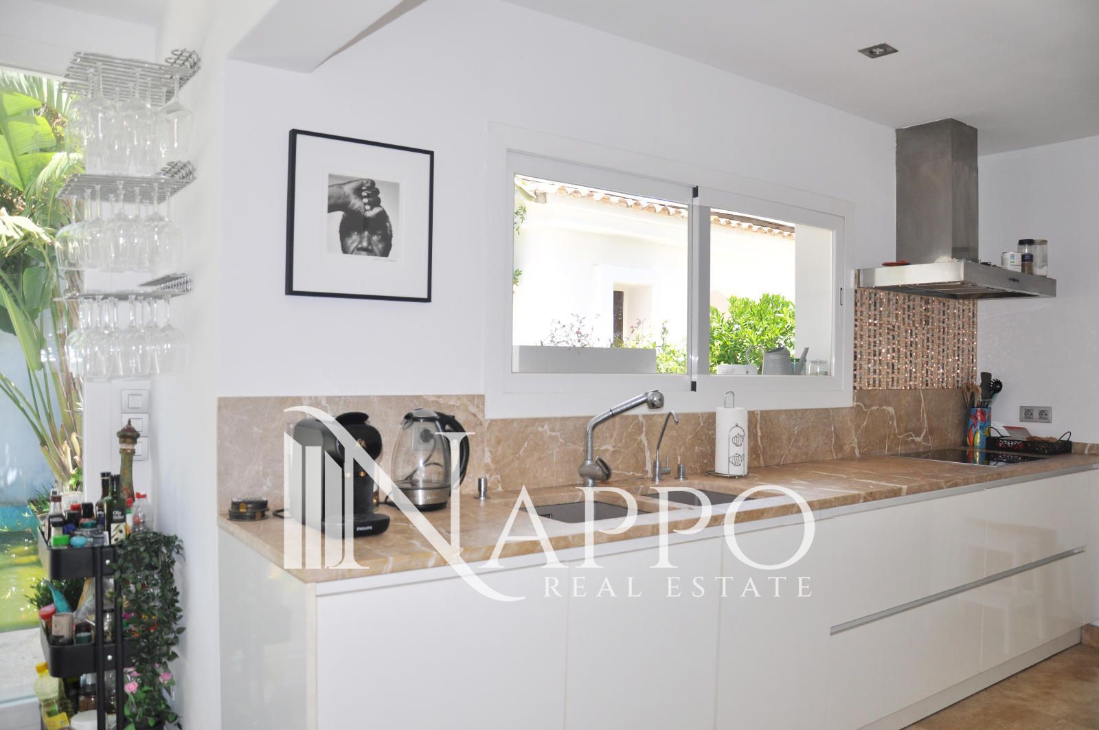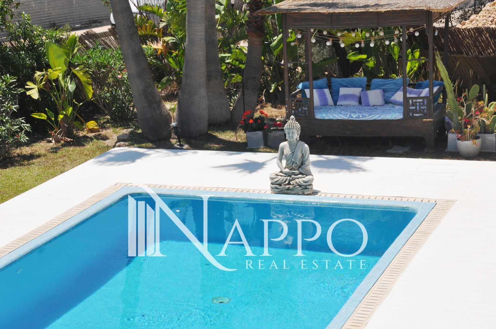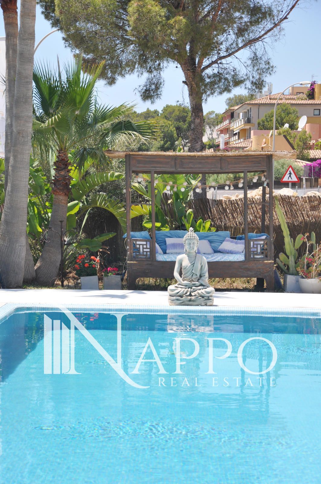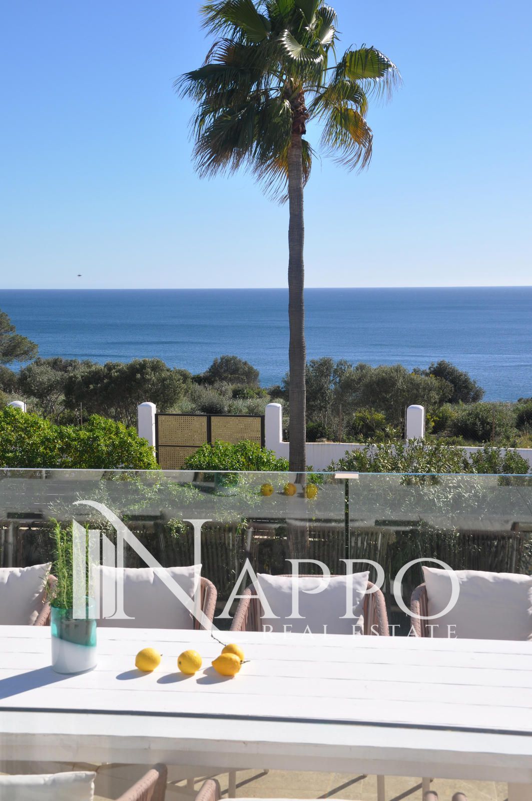 Nappo Real Estate tiene el placer de presentaros esta espectacular villa de lujo de estilo ibicenco con vistas al mar y piscina privada, situada en la exclusiva zona de Sol de Mallorca, distribuida en dos plantas y ubicada en una amplia parcela de 1.470 m². La zona destaca por su tranquilidad, privacidad y cercanía a calas de aguas cristalinas, además de contar con buenas conexiones, acceso a servicios, campos de golf, zonas de ocio y a pocos minutos de Puerto Portals y del centro de Palma.