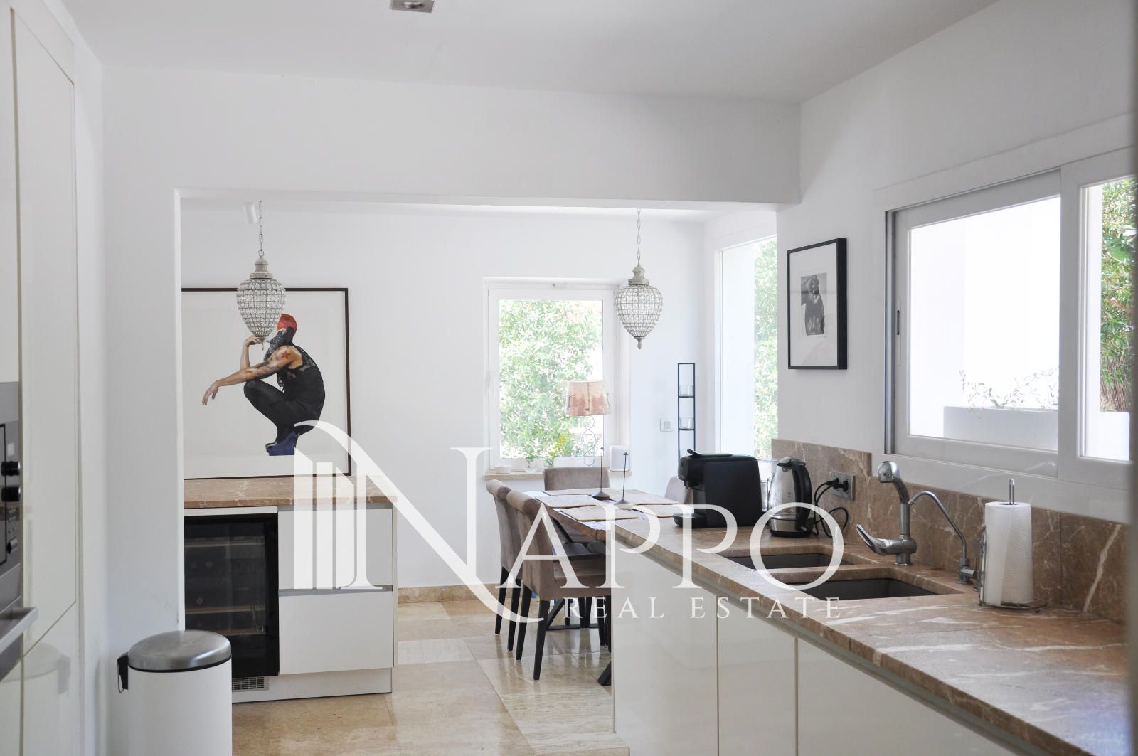 En el exterior, la villa ofrece una impresionante piscina de 14 metros, jardines consolidados, zona chill-out cubierta y área de barbacoa con comedor al aire libre, creando un entorno ideal para disfrutar del estilo de vida mediterráneo. La terraza en la azotea ofrece vistas panorámicas al mar, mientras que el inmueble cuenta con aire acondicionado en todas las estancias y garaje, garantizando confort durante todo el año.