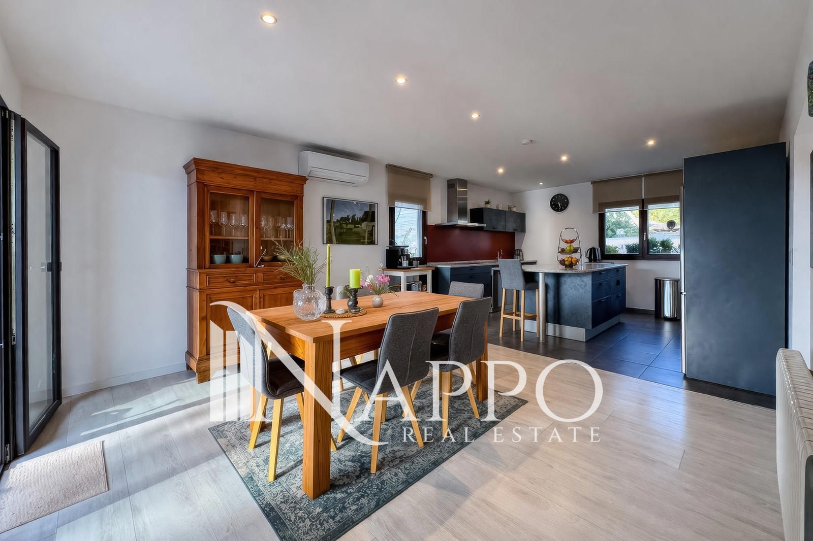 La vivienda cuenta con aproximadamente 350 m2 construidos distribuidos en dos plantas. La planta principal ofrece un amplio y luminoso salón, una moderna cocina con isla completamente equipada con electrodomésticos de primeras marcas y un gran comedor, todo ello conectado a una espectacular terraza perfecta para disfrutar con familia y amigos. En esta misma planta se encuentra la suite principal con baño privado, un dormitorio adicional y un baño completo. La planta de acceso dispone de tres dormitorios adicionales, un baño completo, zona de lavandería y garaje.