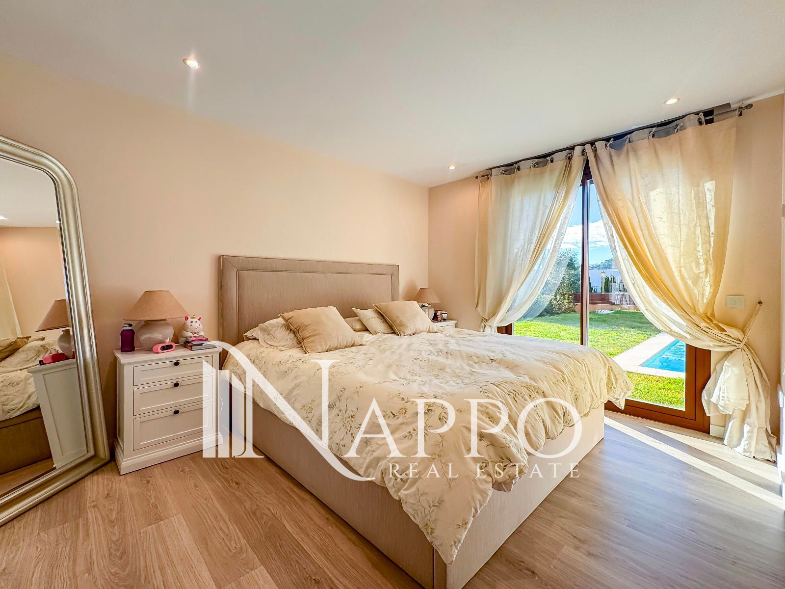 El exterior cuenta con un amplio jardín y una elegante piscina de 10 x 4 metros, perfecta para disfrutar del entorno tranquilo y privado.