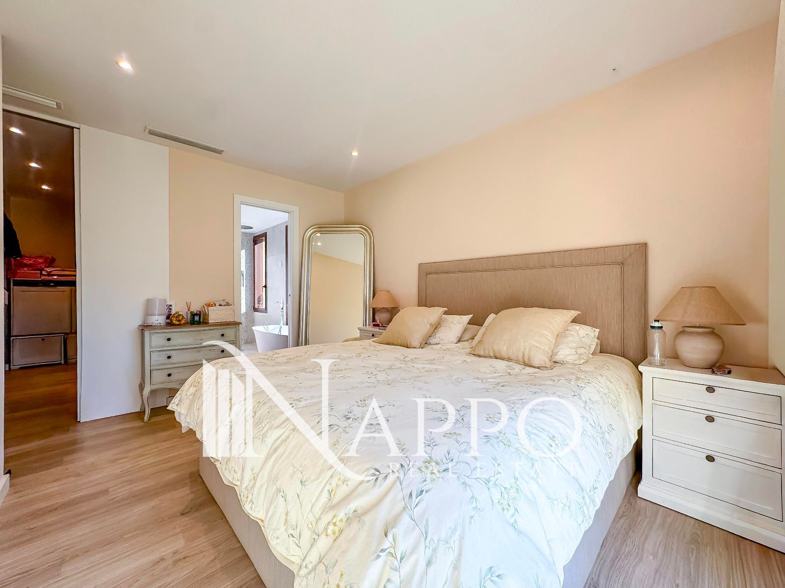 La planta baja se organiza en un amplio espacio diáfano donde salón, comedor y una espectacular cocina abierta —de diseño cuidado y materiales de alta calidad— crean el verdadero corazón de la casa. Desde todas las estancias se accede directamente a la piscina y al jardín, reforzando la sensación de amplitud y vida exterior.