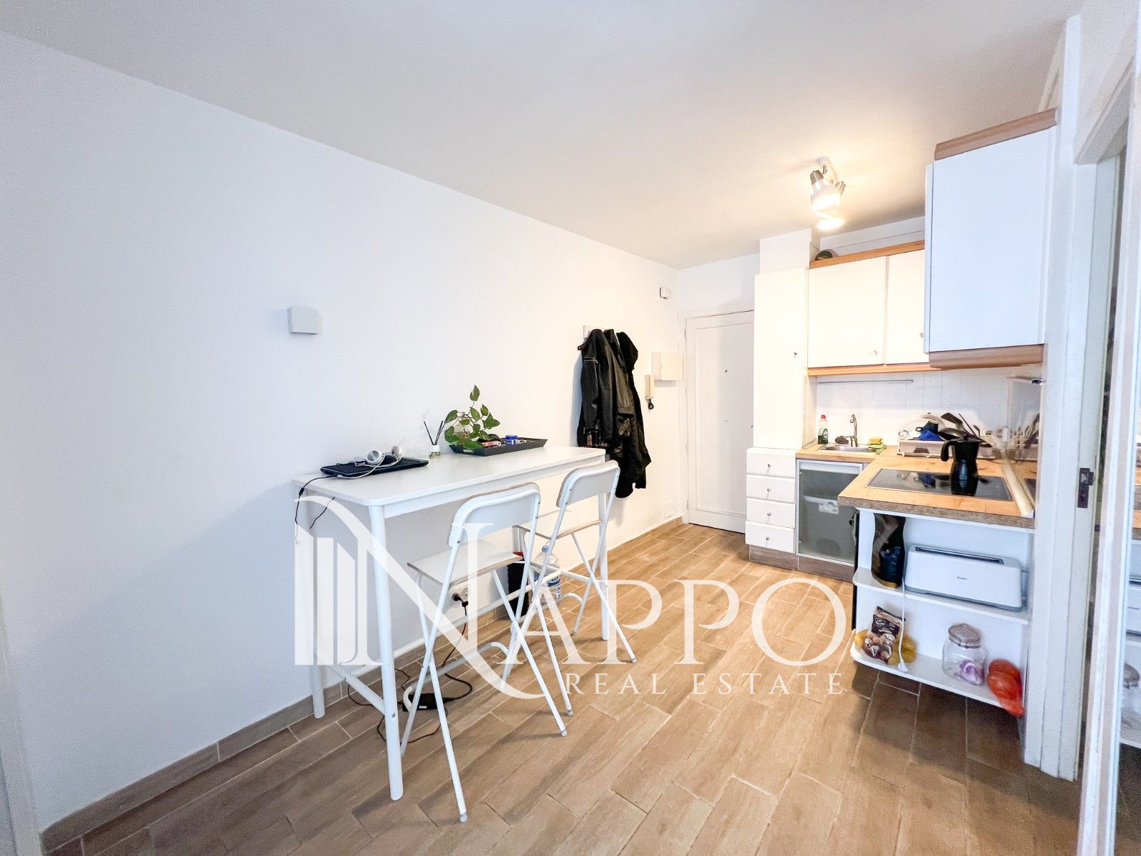 La propiedad se vende totalmente amueblada y nos brinda la bienvenida gracias a un espacio abierto con cocina y salon con salida directa a un pequeño balcón, una habitación doble exterior y un baño completo con bañera.