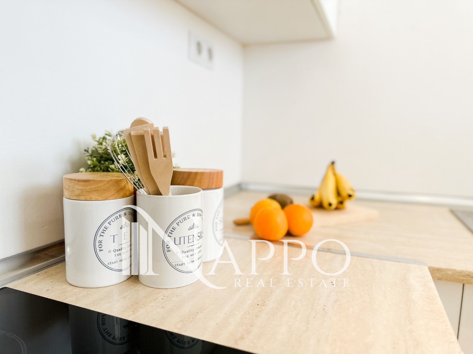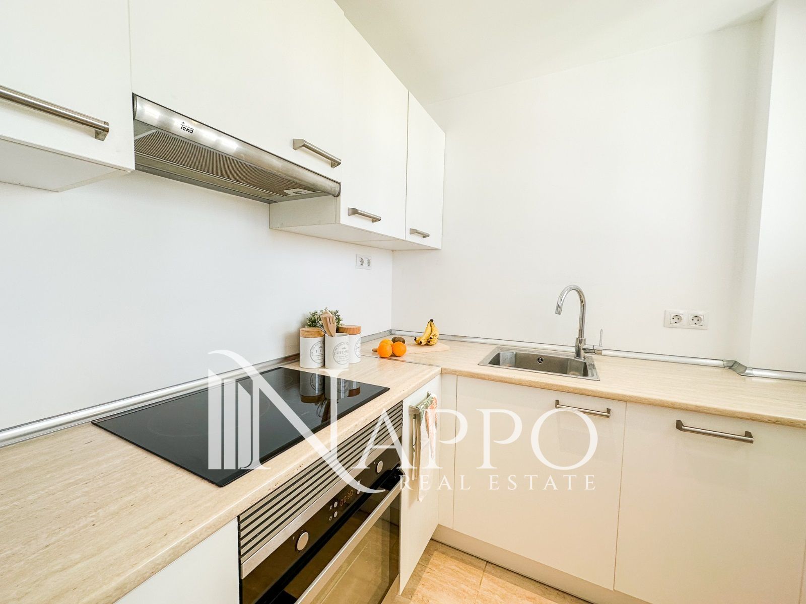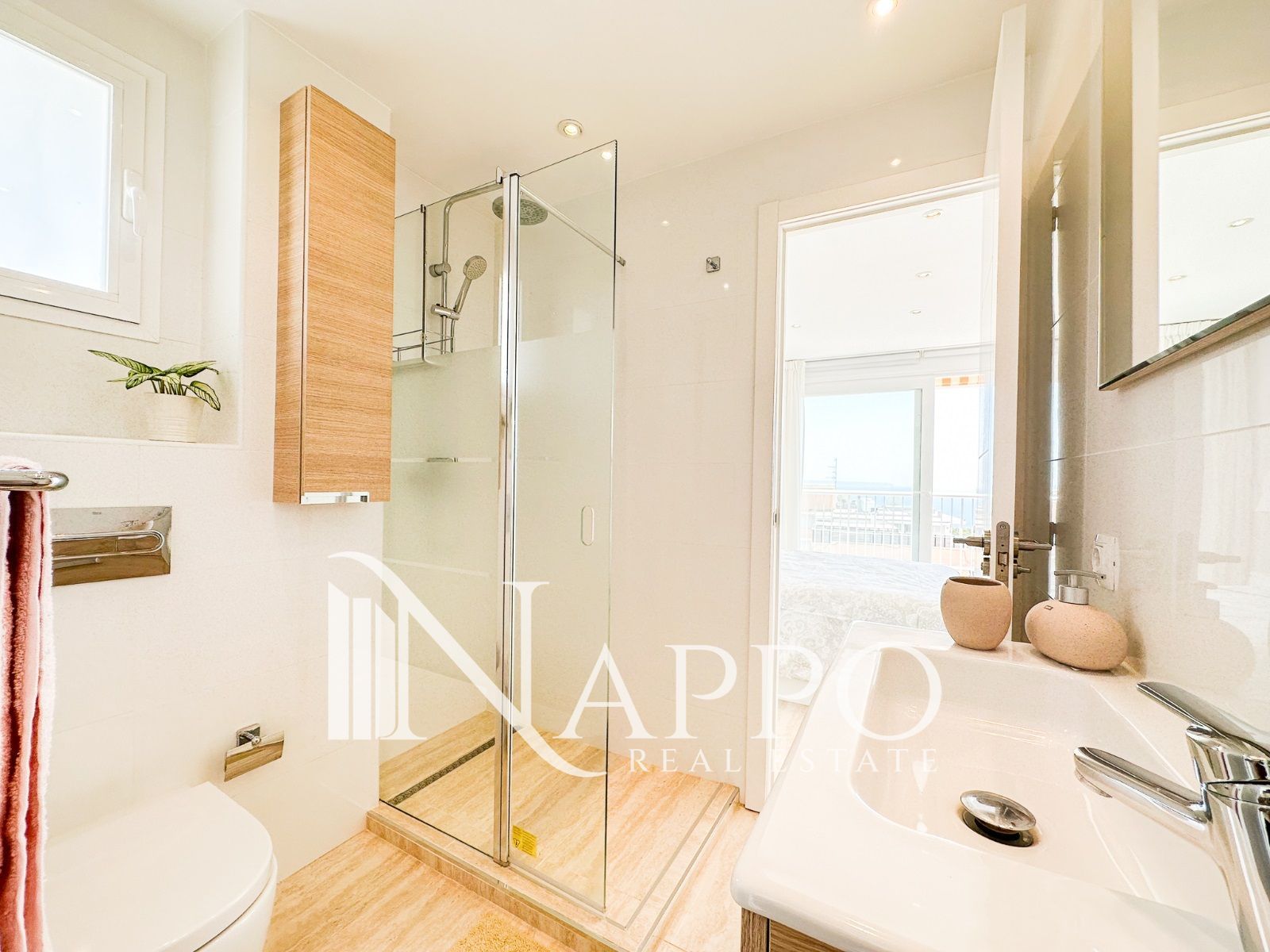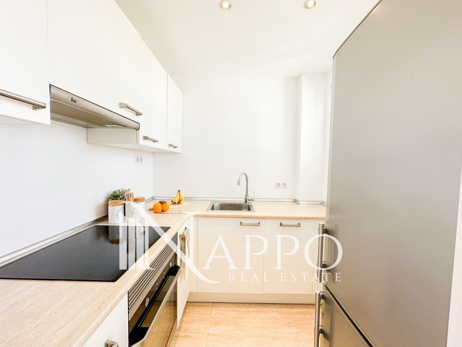El apartamento nos brinda la bienvenida al entrar gracias a un acogedor recibidor que por un lado nos proporciona un practico aseo de invitados y por el otro lado nos deja acceso a un pasillo donde encontramos a mano derecha una cocina independiente totalmente equipada con todos los electrodomesticos necesarios, una amplia y luminosa zona social con comedor y salón, dos dormitorios dobles (uno de ellos con vistas directas al mar) de un tamaño muy parecido que conectan ambos a un elegante baño en suite central con plato ducha. Tanto la zona social como las dos habitaciones, llevan a un increible balcón con vistas increibles al mar y despejadas. El balcón que rodea en "L" toda la propiedad pone a disposición una zona de lavandaria cerrada.