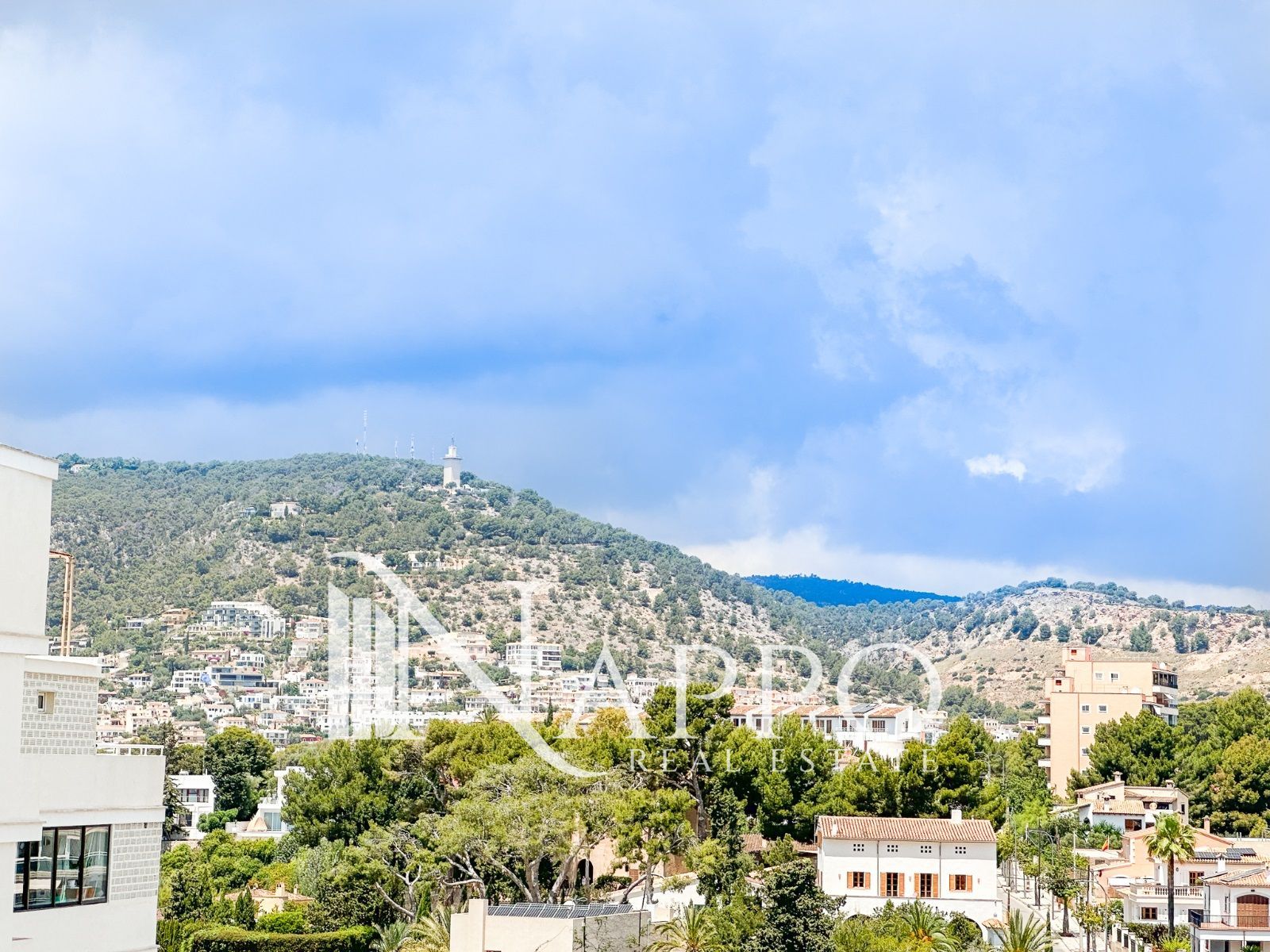 Oportunidad de comprar este maravilloso atico con vistas impresionantes al mar y a toda la bahía de Palma, situado en la planta 13 de un tranquilo de edificio con ascensor, parkings comunitarios y acceso a una piscina de uso comunitario, situado en la tan demandada y servida zona de Cala Major, todo un lujo para estar muy cerca del mar, conexion con el transporte publico, acceso a la autopista, supermercados, farmacia, a 5 minutos del centro comercial Porto Pi y con una gran oferta gastronomica a pocos pasos.