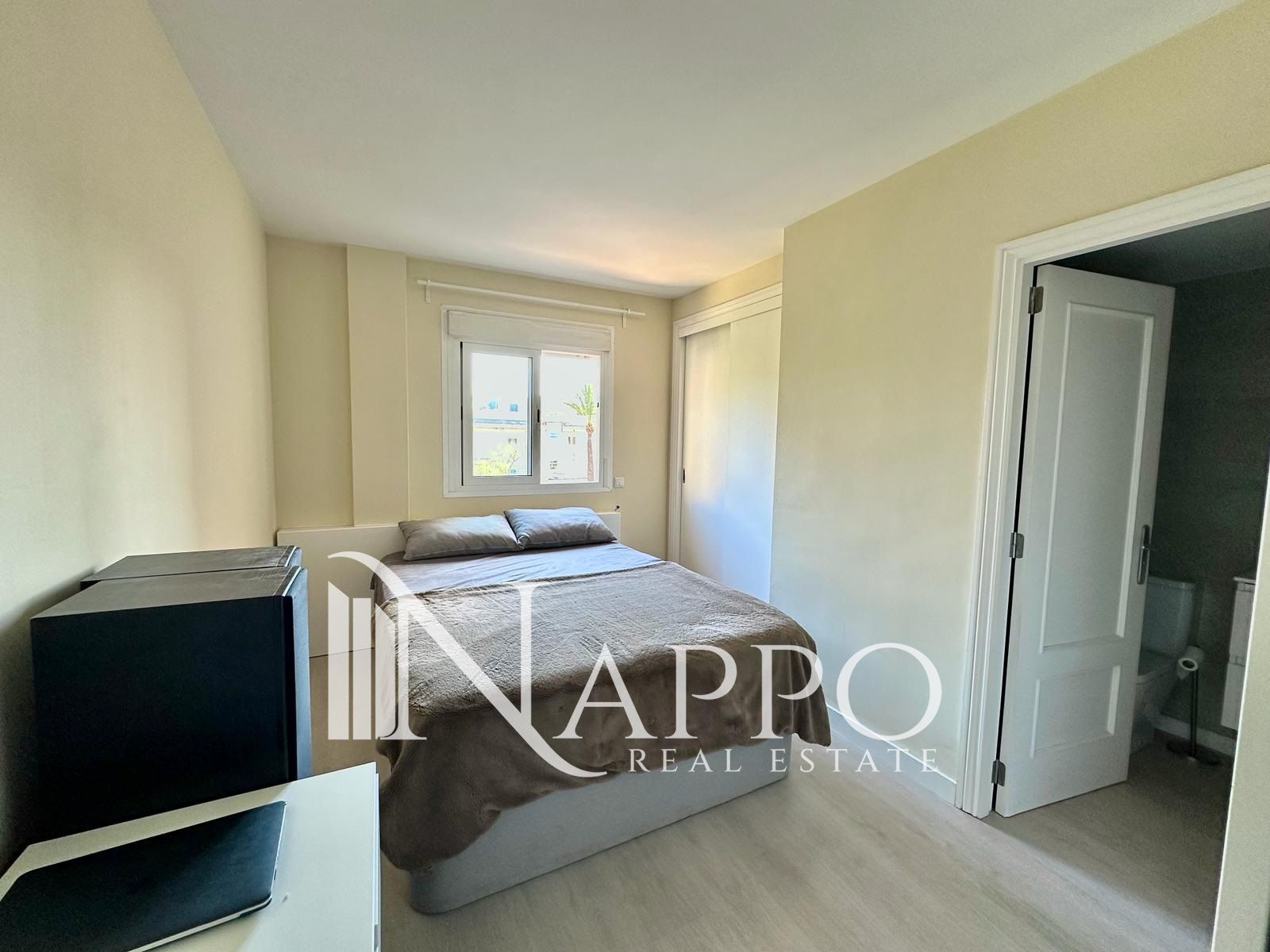 La cocina, completamente equipada con electrodomésticos modernos es perfecta para aquellos que disfrutan de la cocina, amplio salón comedor equipado con una mesa para 4 personas y un gran sofá, además cuenta con una habitación doble con armario empotrado y un baño en suite en perfecto estado.
