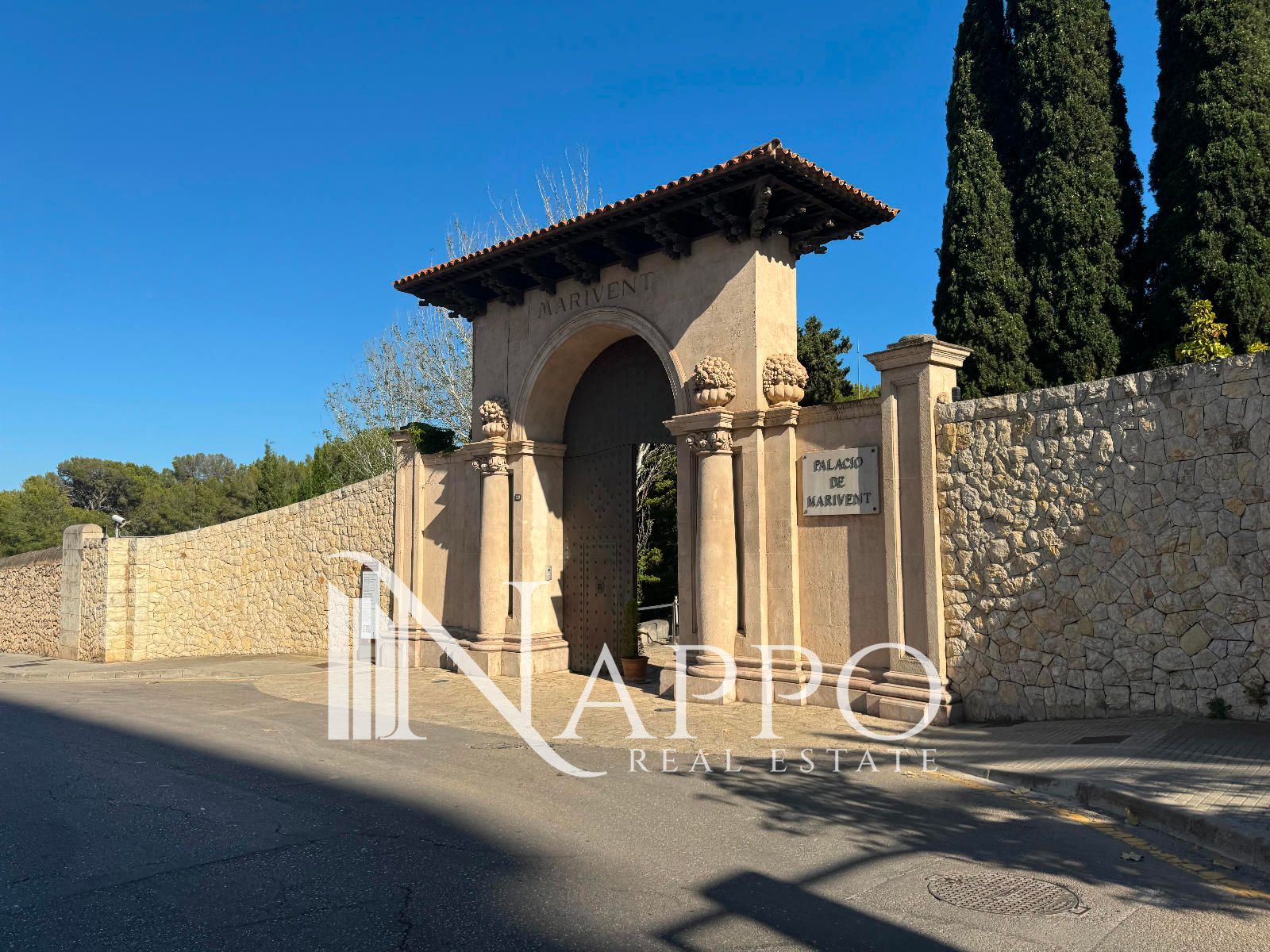 El apartamento nos brinda la bienvenida al entrar gracias a un acogedor recibidor que por un lado nos lleva a una cocina independiente totalmente equipada con todos los electrodomésticos integrados con acceso a una practica zona de coladuria, por el frente accedemos a un amplio y luminoso salón comedor con ingreso a un ancha terraza en forma de curva de 20 m2 con vistas al mar y al palacio de Marivent. A la izquierda del pasillo pasamos a la zona de noche distribuida en tres amplios dormitorios dobles y dos baños completos con bañera (uno en suite).